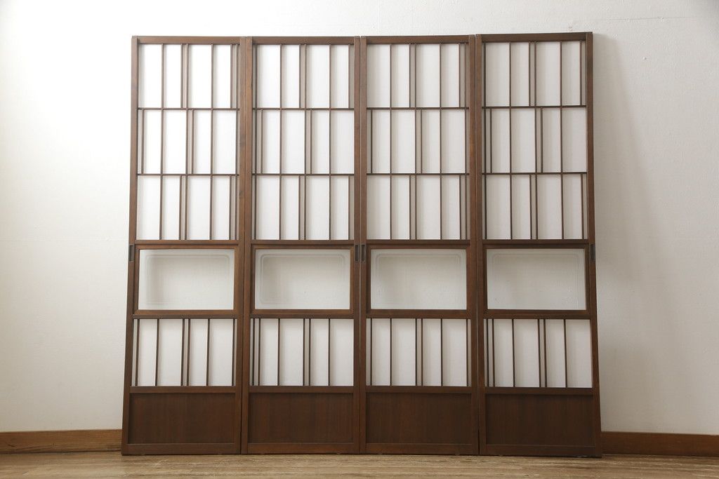 ドア・建具> 4枚〜セット > 障子戸4枚をリペア&カスタム!リサイズし、戸車・引手金具を取り付け。障子はプラスチック障子に張り替え。現状に近い色味に着色仕上げ。(引き戸、建具)