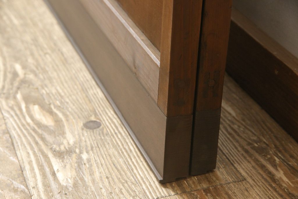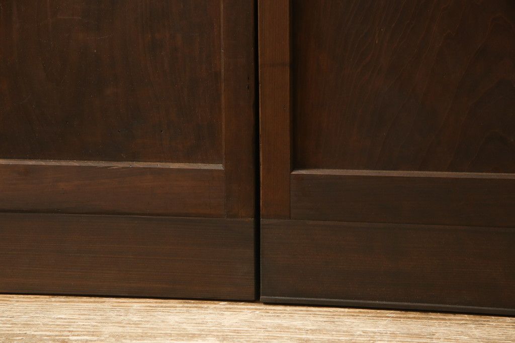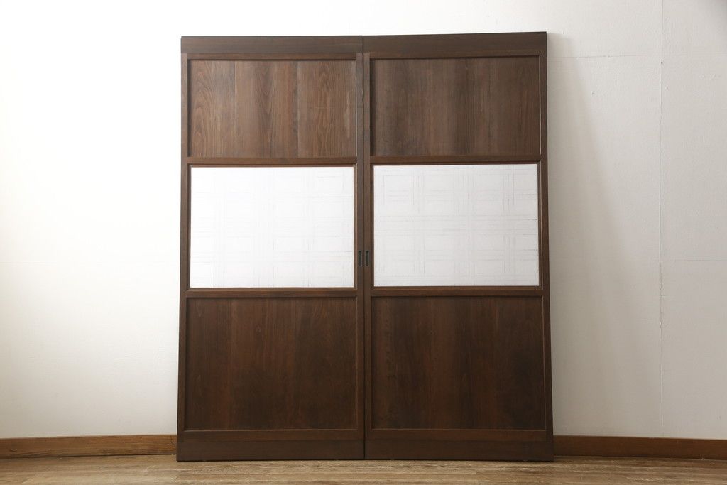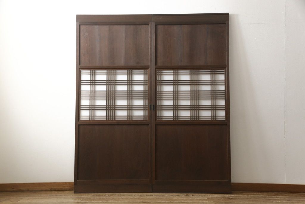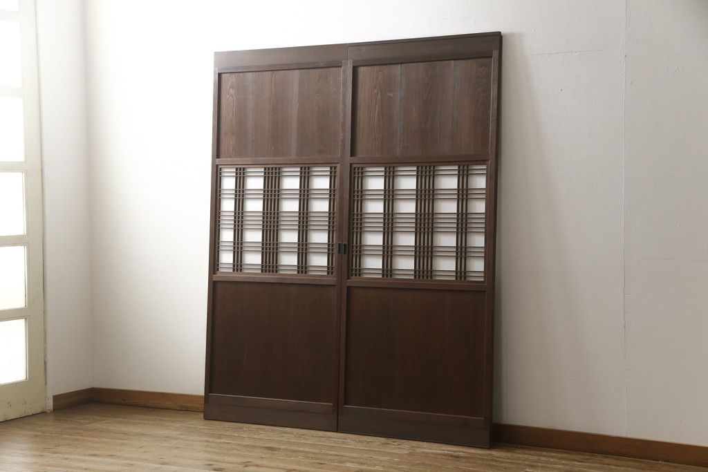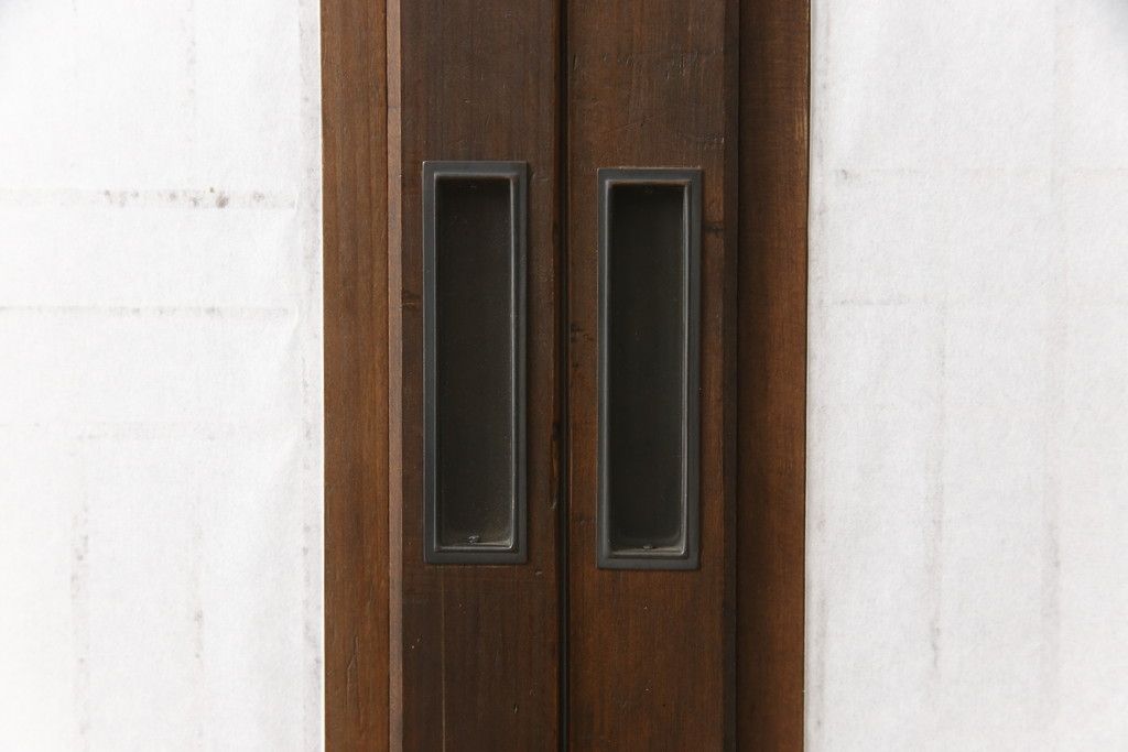ドア・建具> 引き戸 > 障子帯戸2枚セットをリペア&カスタム!リサイズし、戸車・引手金具を取り付け。障子はプラスチック障子に張り替え。現状に近い色味に着色仕上げ。(引き戸)
