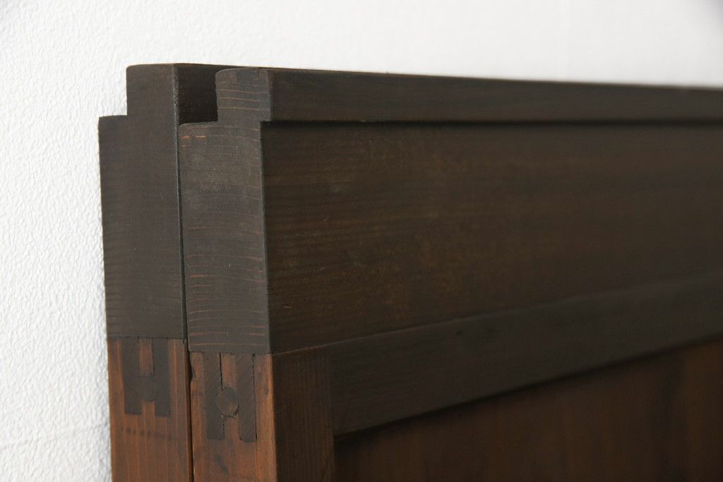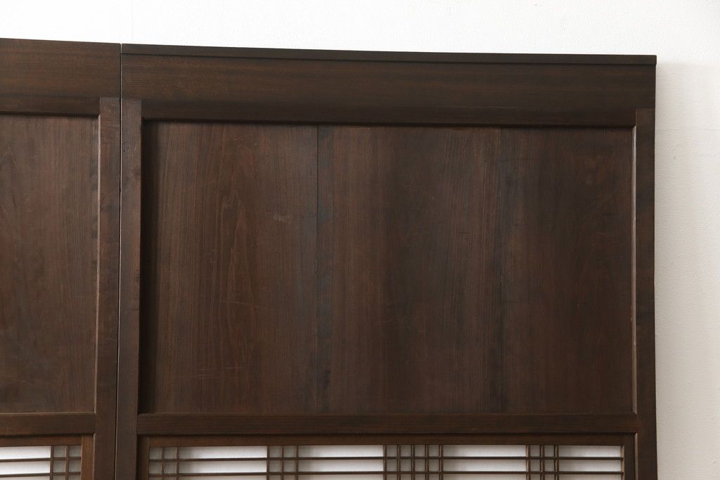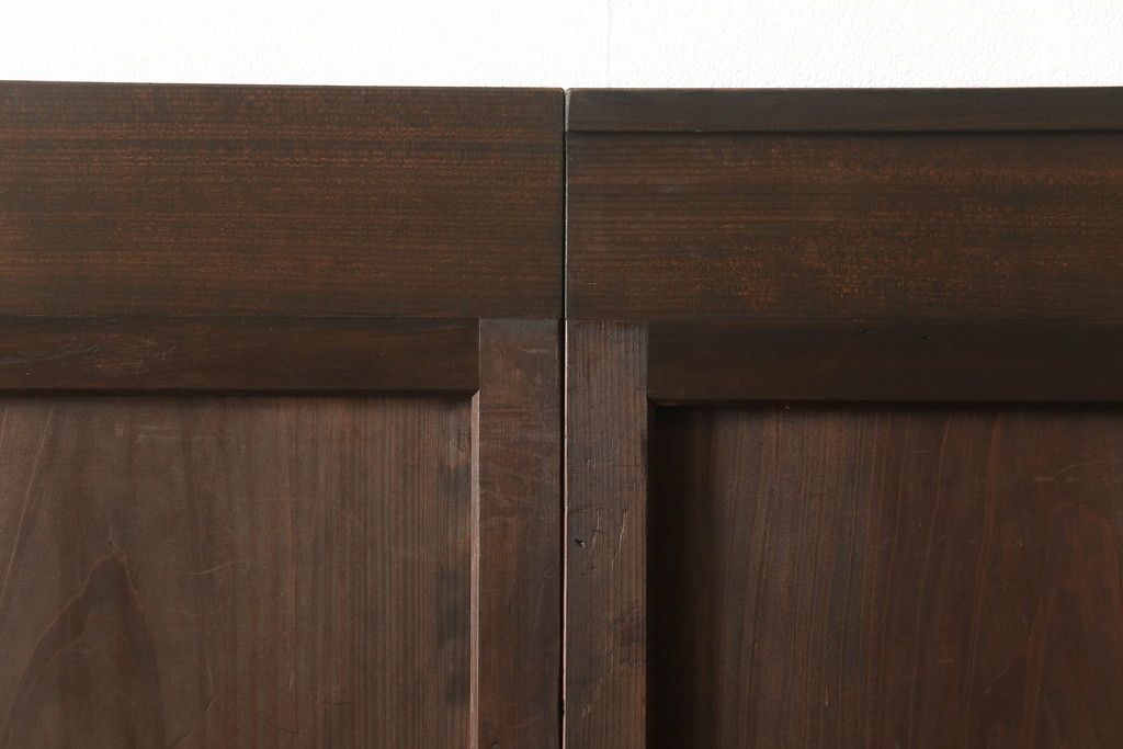 ドア・建具> 板戸・帯戸 > 障子帯戸2枚セットをリペア&カスタム!リサイズし、戸車・引手金具を取り付け。障子はプラスチック障子に張り替え。現状に近い色味に着色仕上げ。(引き戸)