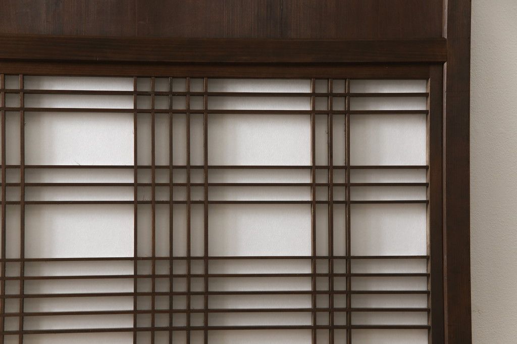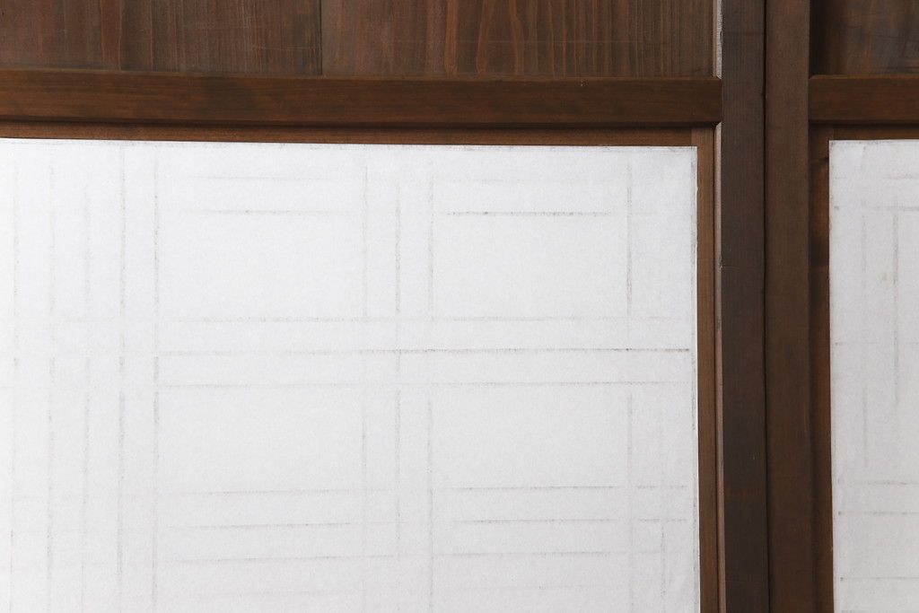 セミオーダー家具実績 > 障子帯戸2枚セットをリペア&カスタム!リサイズし、戸車・引手金具を取り付け。障子はプラスチック障子に張り替え。現状に近い色味に着色仕上げ。(引き戸)