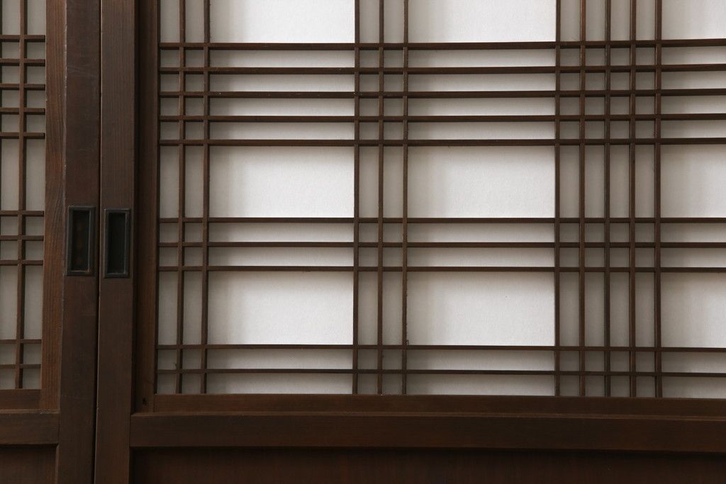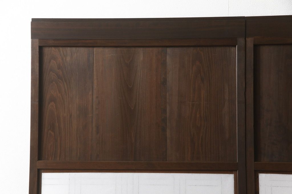 障子帯戸2枚セットをリペア&カスタム!リサイズし、戸車・引手金具を取り付け。障子はプラスチック障子に張り替え。現状に近い色味に着色仕上げ。(引き戸)