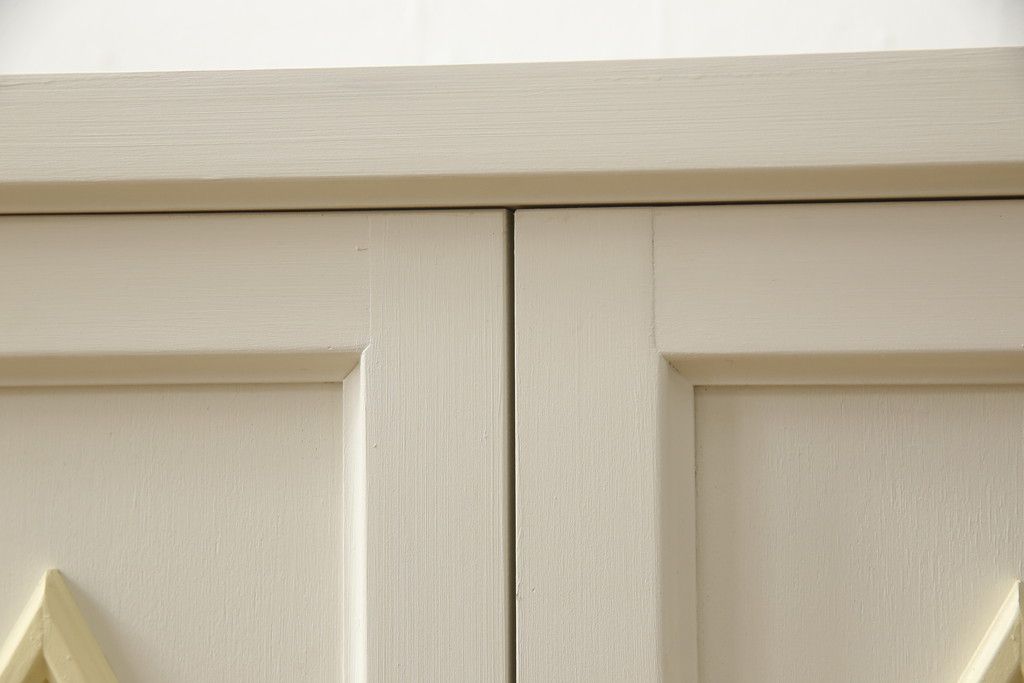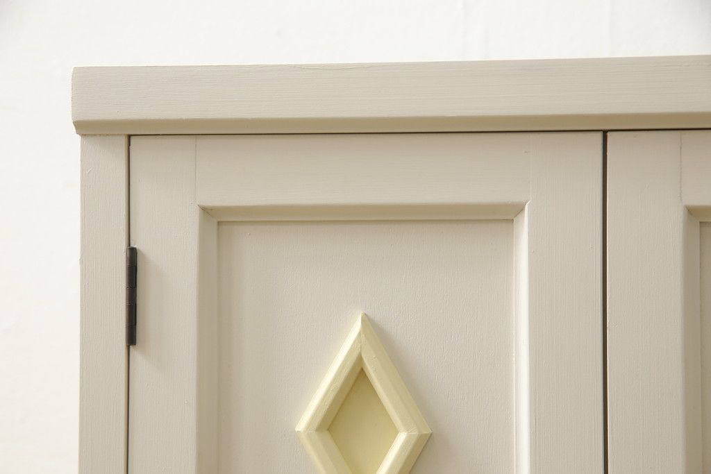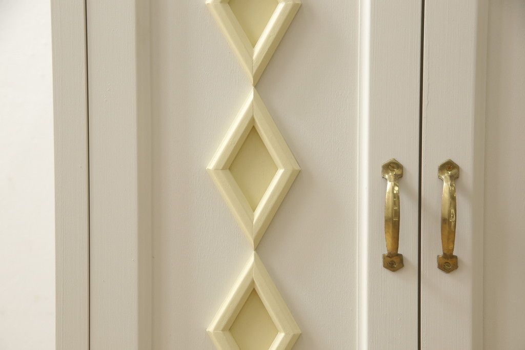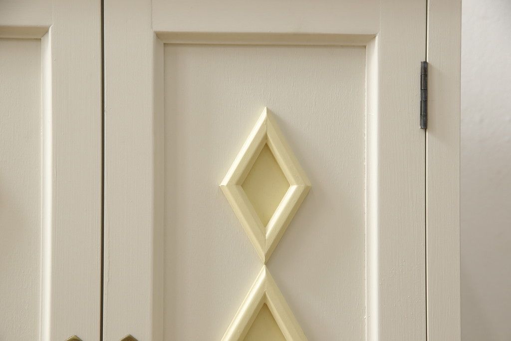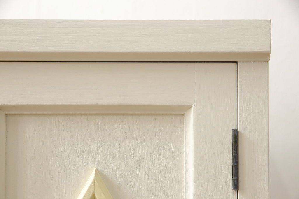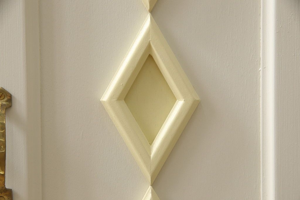 お手持ちの家具・建具リメイク実績> 仏壇リメイク実績 > お仏壇をコンパクトにリメイク!指定サイズにリサイズし、本体扉は洋風の開き戸仕様に。内部の装飾はそのまま活用。扉のひし形飾りはアイボリー、それ以外は白でペイント。