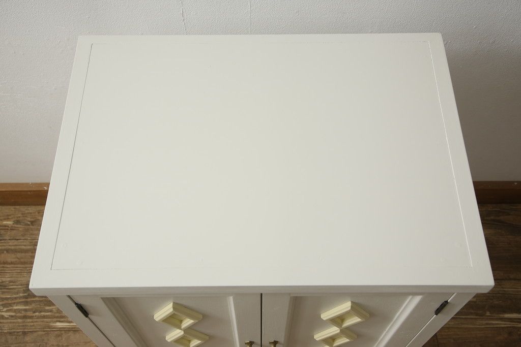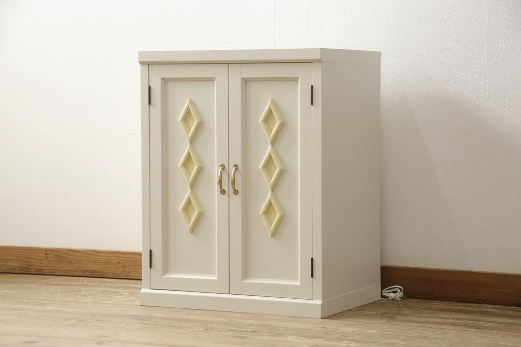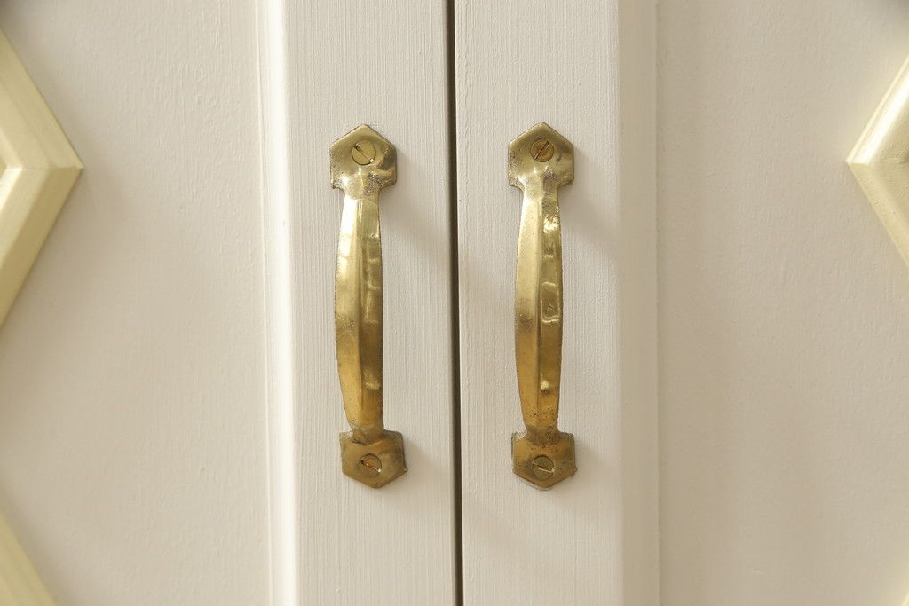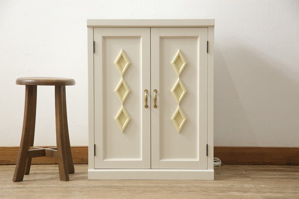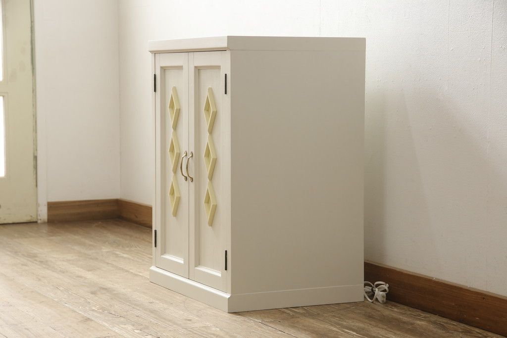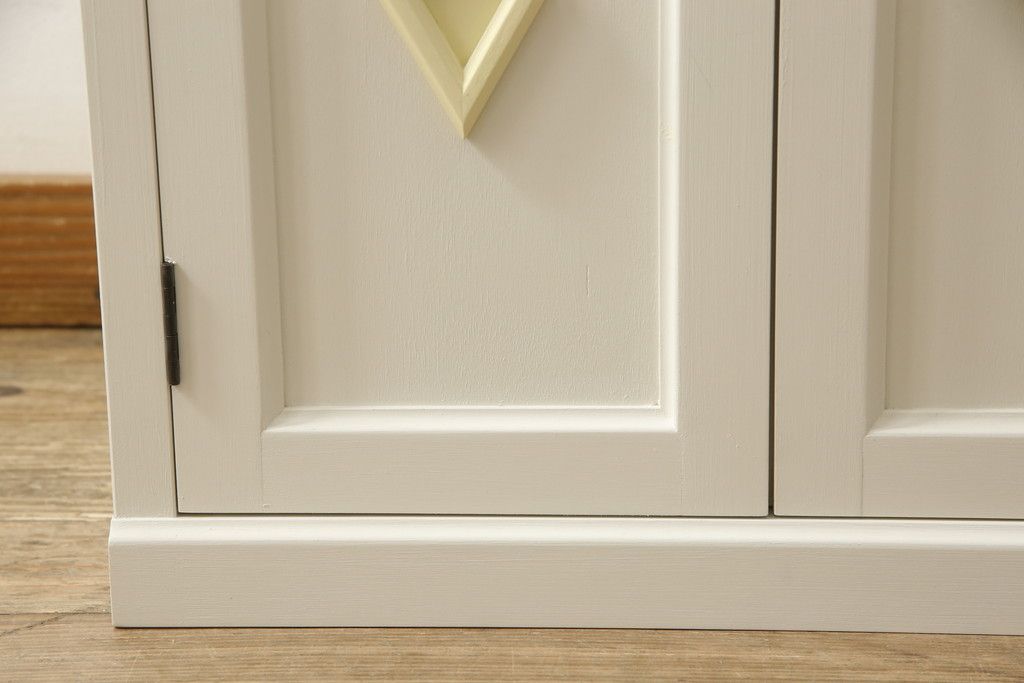 お手持ちの家具・建具リメイク実績> 仏壇リメイク実績 > お仏壇をコンパクトにリメイク!指定サイズにリサイズし、本体扉は洋風の開き戸仕様に。内部の装飾はそのまま活用。扉のひし形飾りはアイボリー、それ以外は白でペイント。