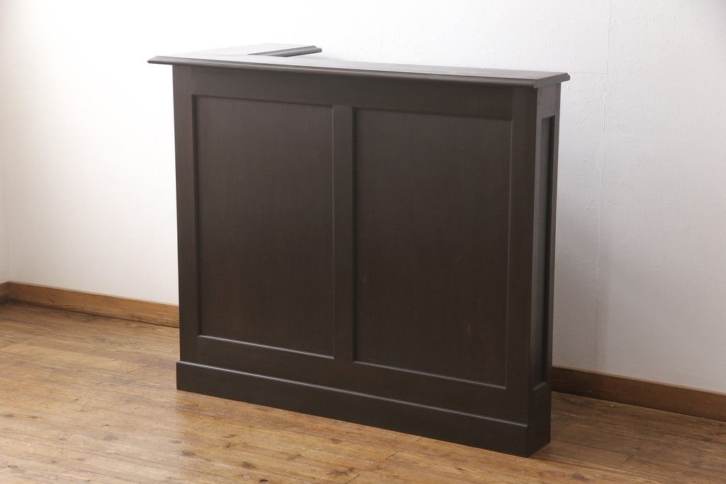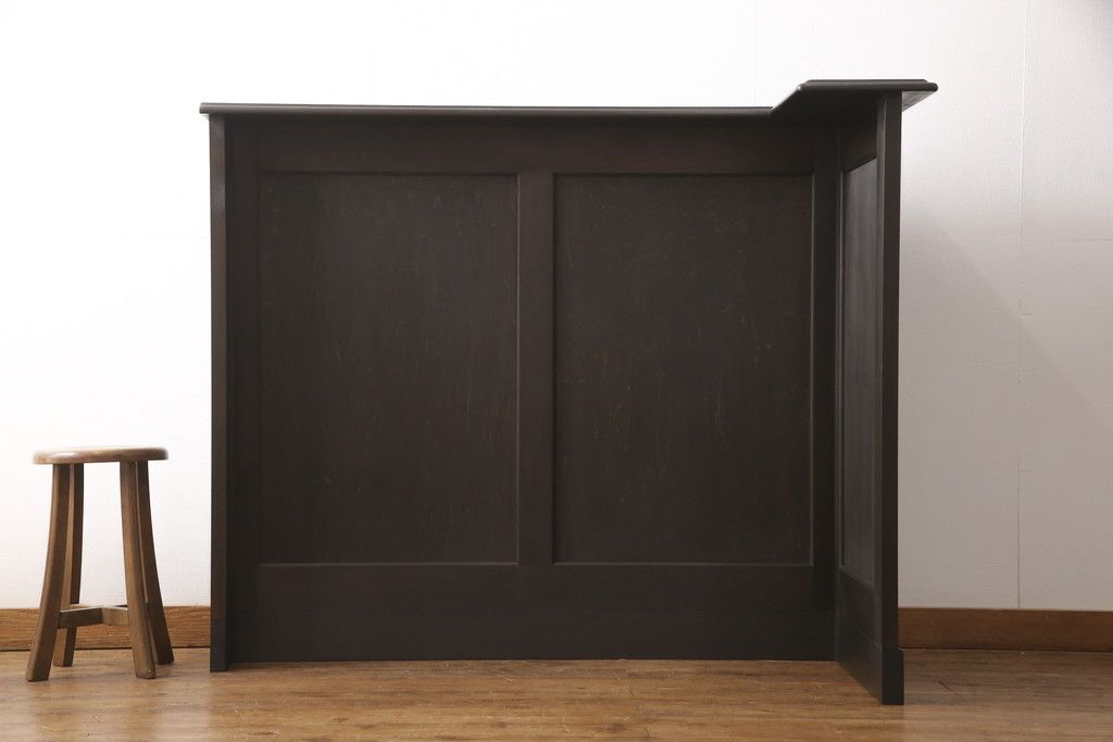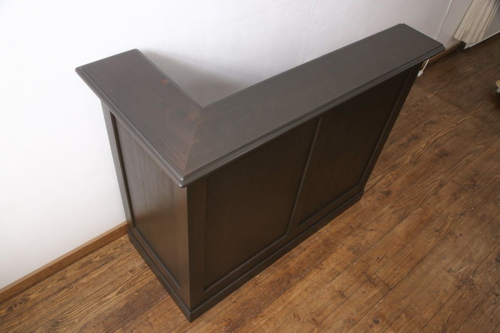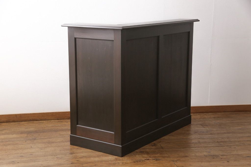 イギリスアンティーク風のカウンターを新規製作!角を丸く面取り加工。濃い茶色で着色仕上げ。(店舗什器、サイドボード)