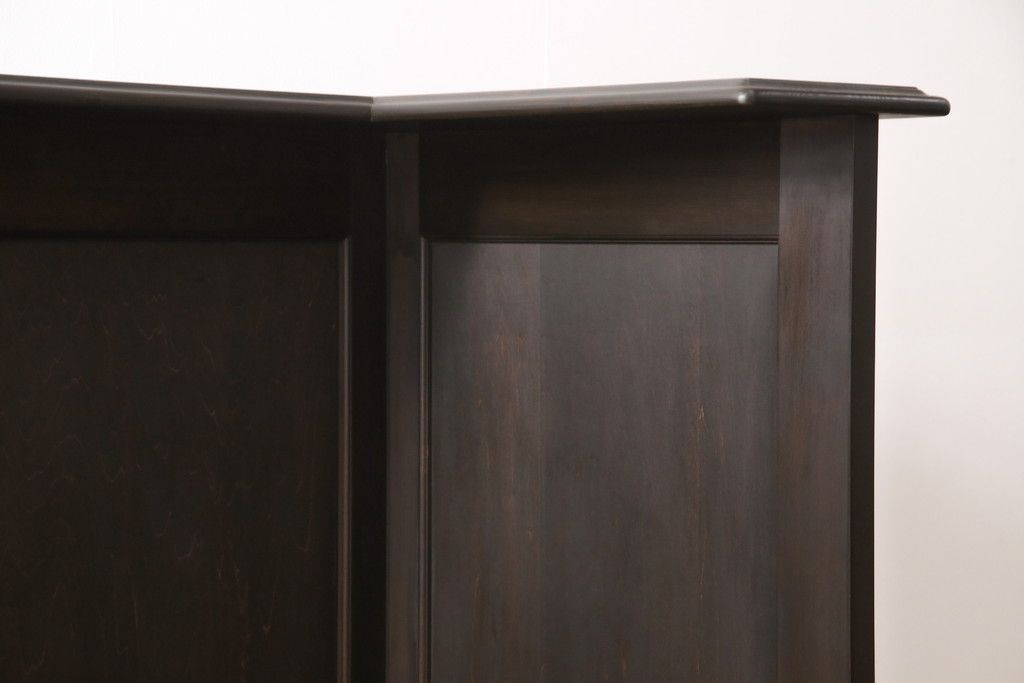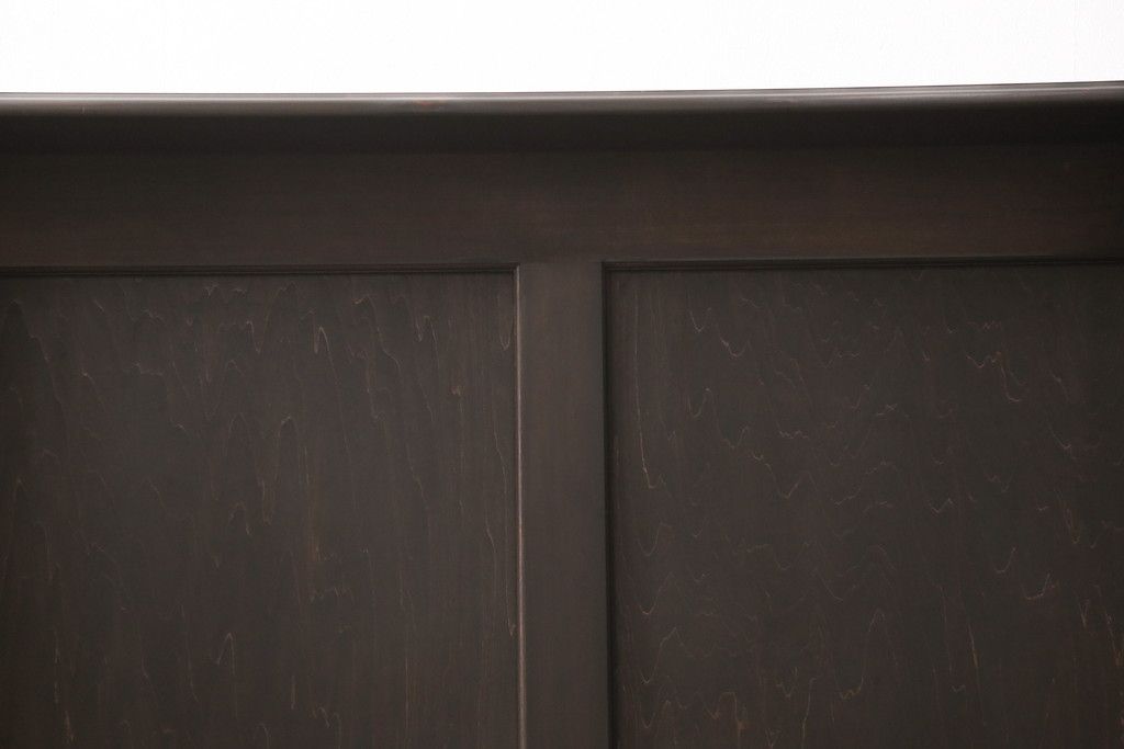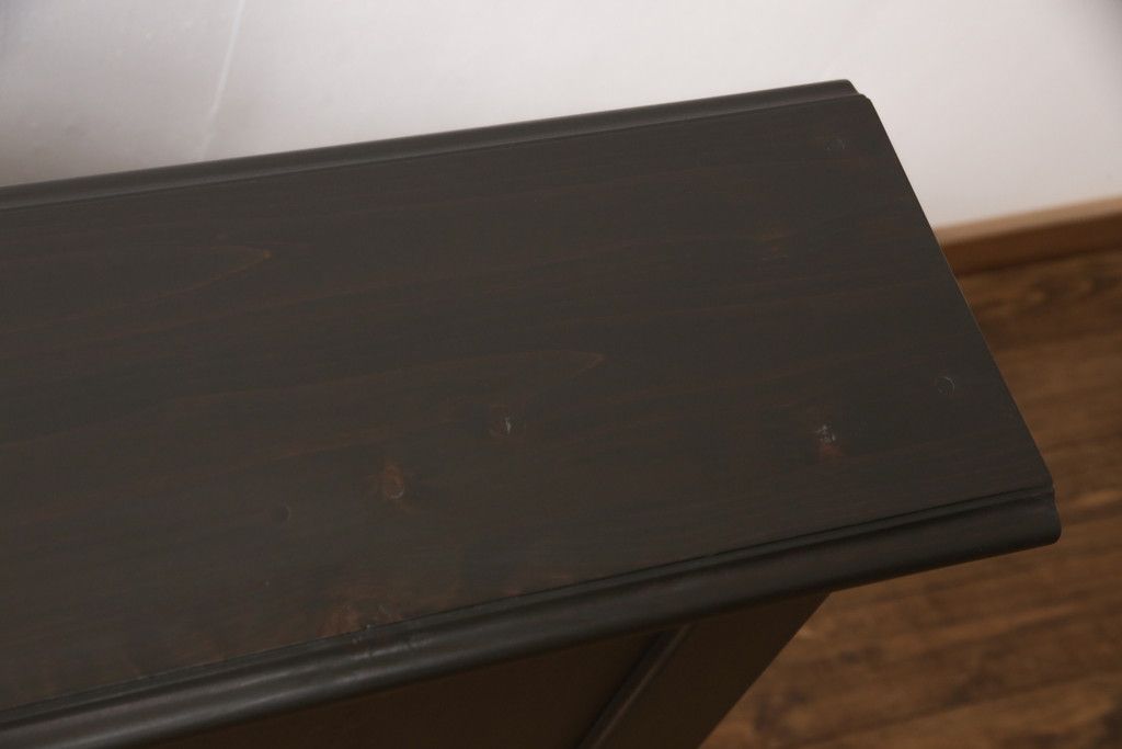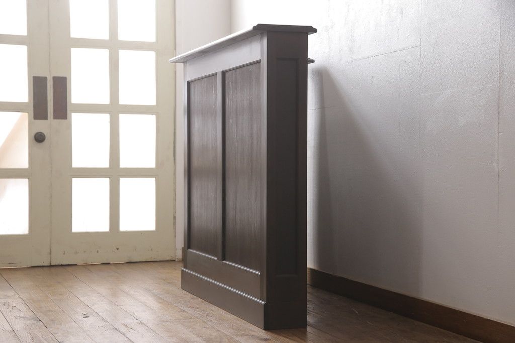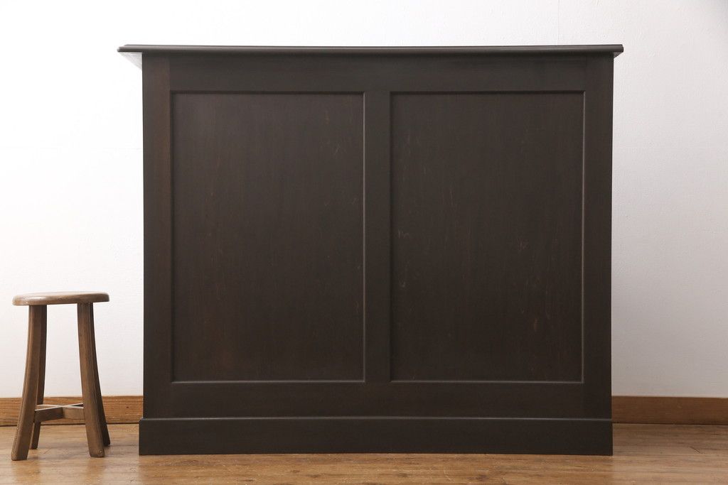 イギリスアンティーク風のカウンターを新規製作!角を丸く面取り加工。濃い茶色で着色仕上げ。(店舗什器、サイドボード)