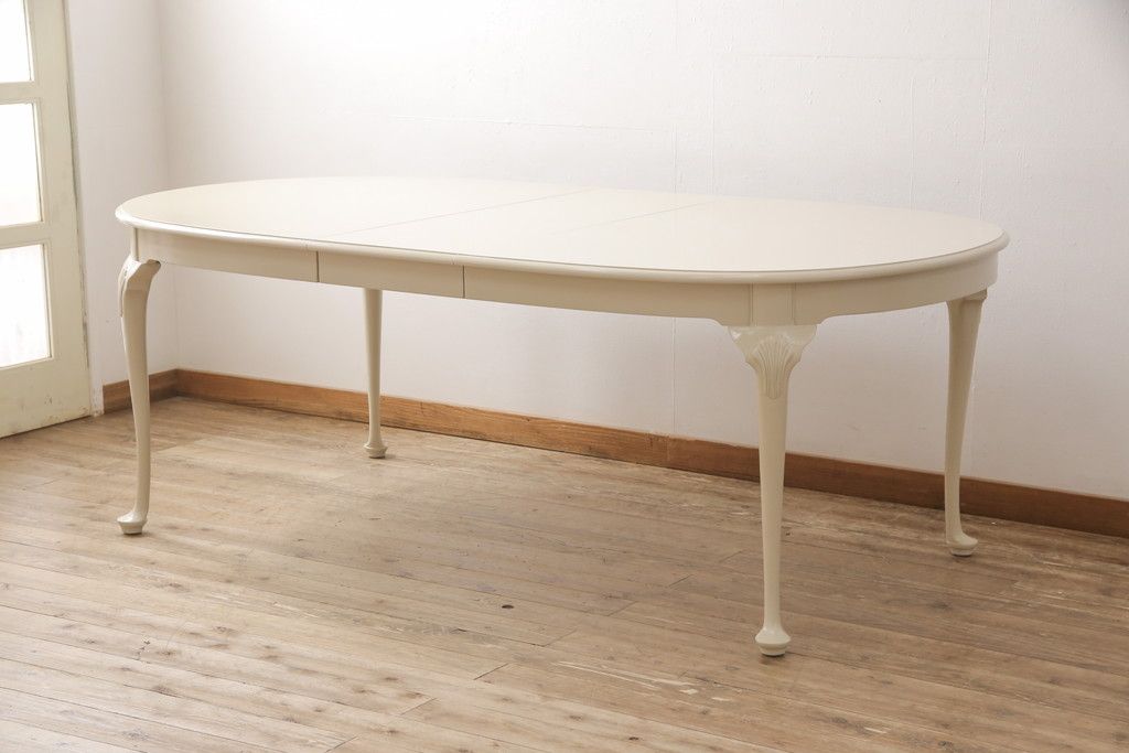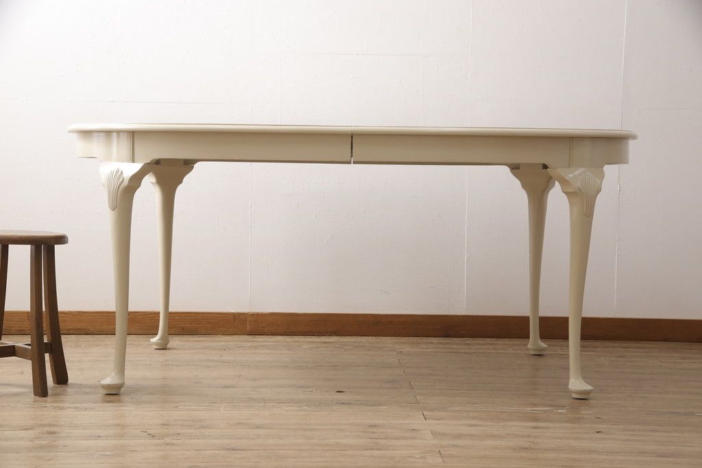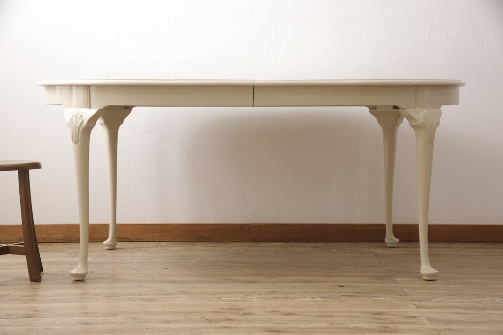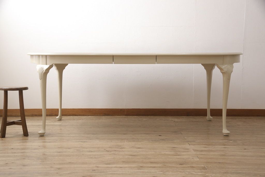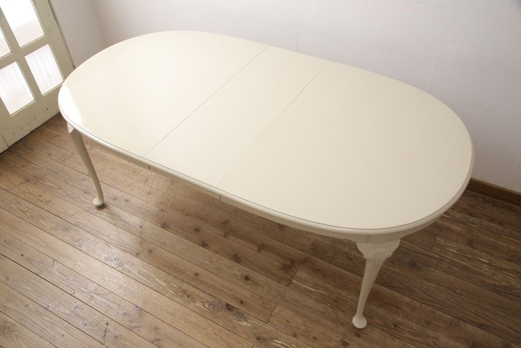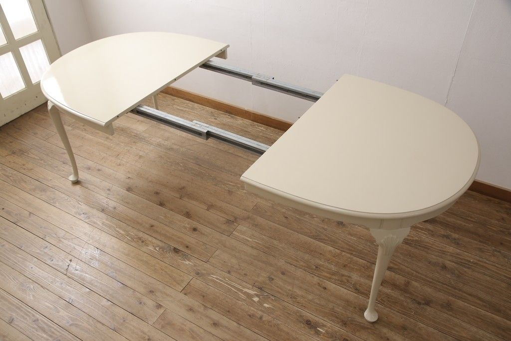 マホガニー材製のエクステンションテーブルをリペア&カスタム!アンティークのホワイトでペイント仕上げ。(ダイニングテーブル)