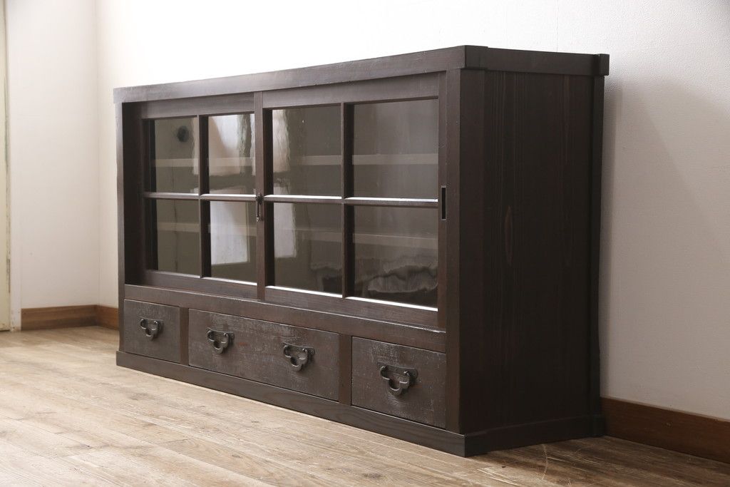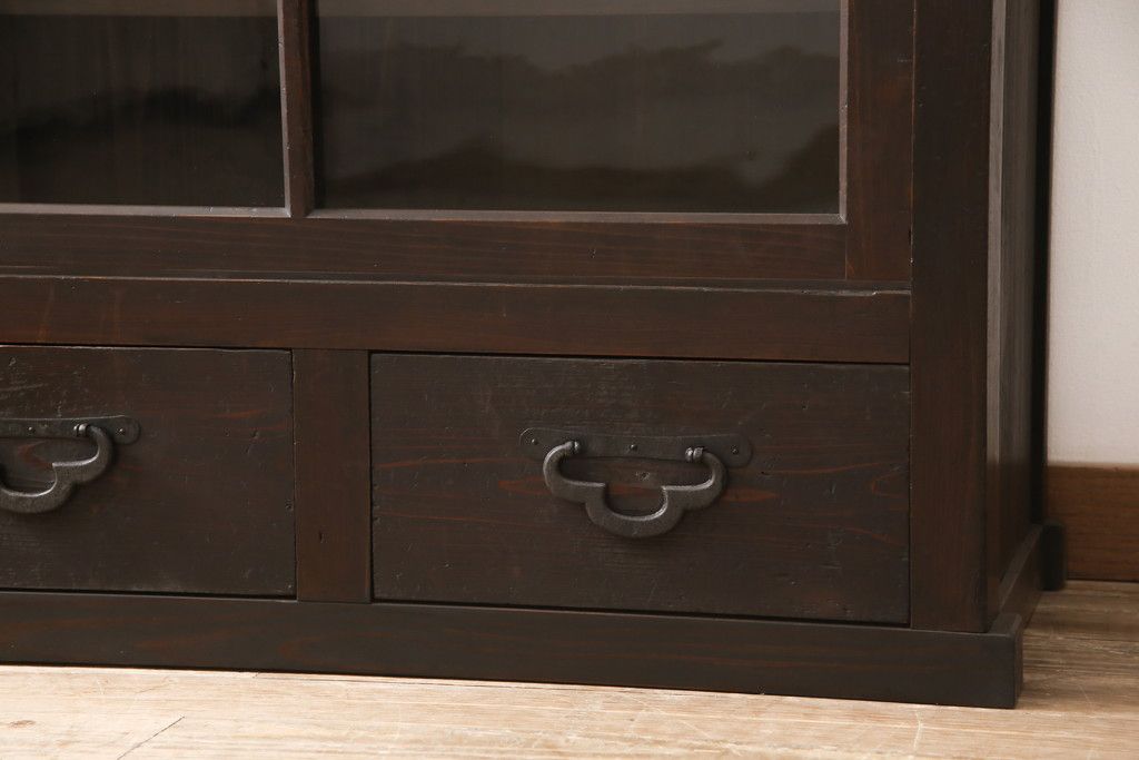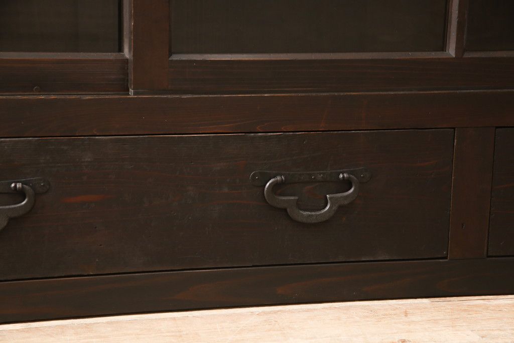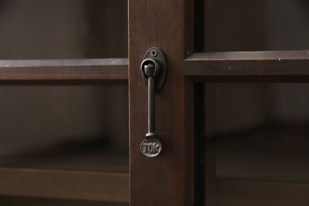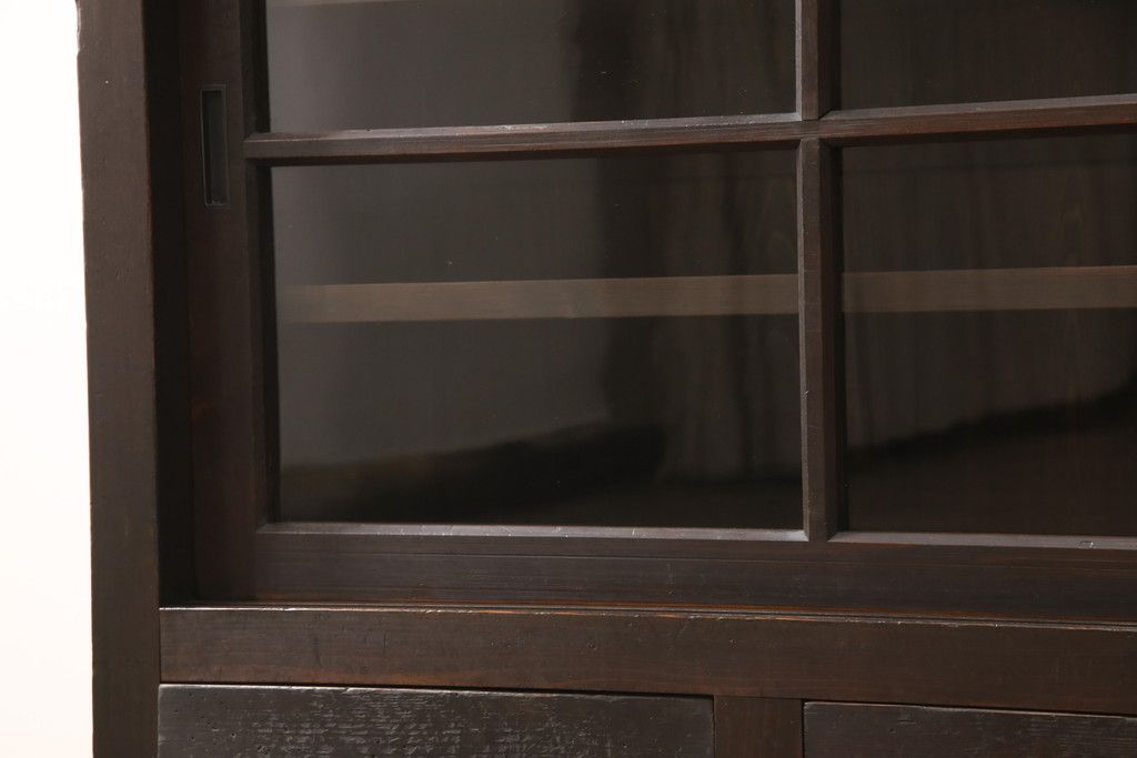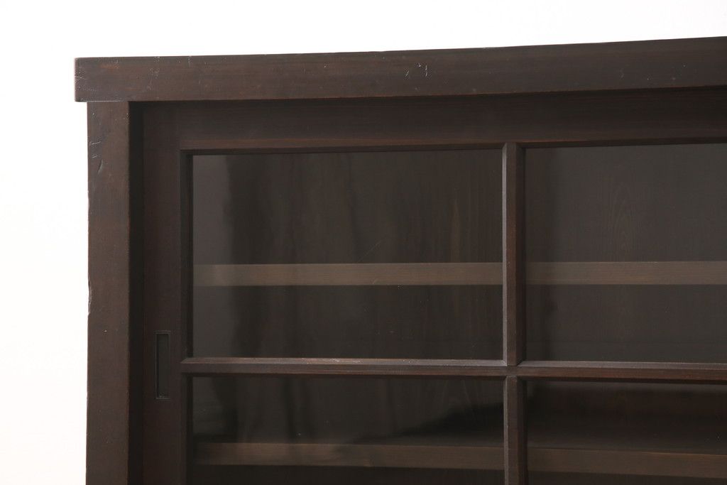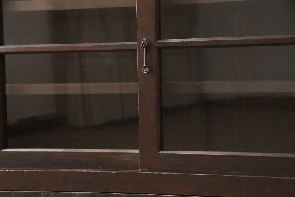 キャビネット・戸棚> 食器棚・カップボード > 明治〜大正時代の戸棚をリペア&カスタム!建具はガラスをクリアガラスに交換し、引手とねじ込み錠を取り付け。天板は杉材に張り替え、内部は棚板を追加。(ガラス戸棚、キャビネット、収納棚、食器棚)