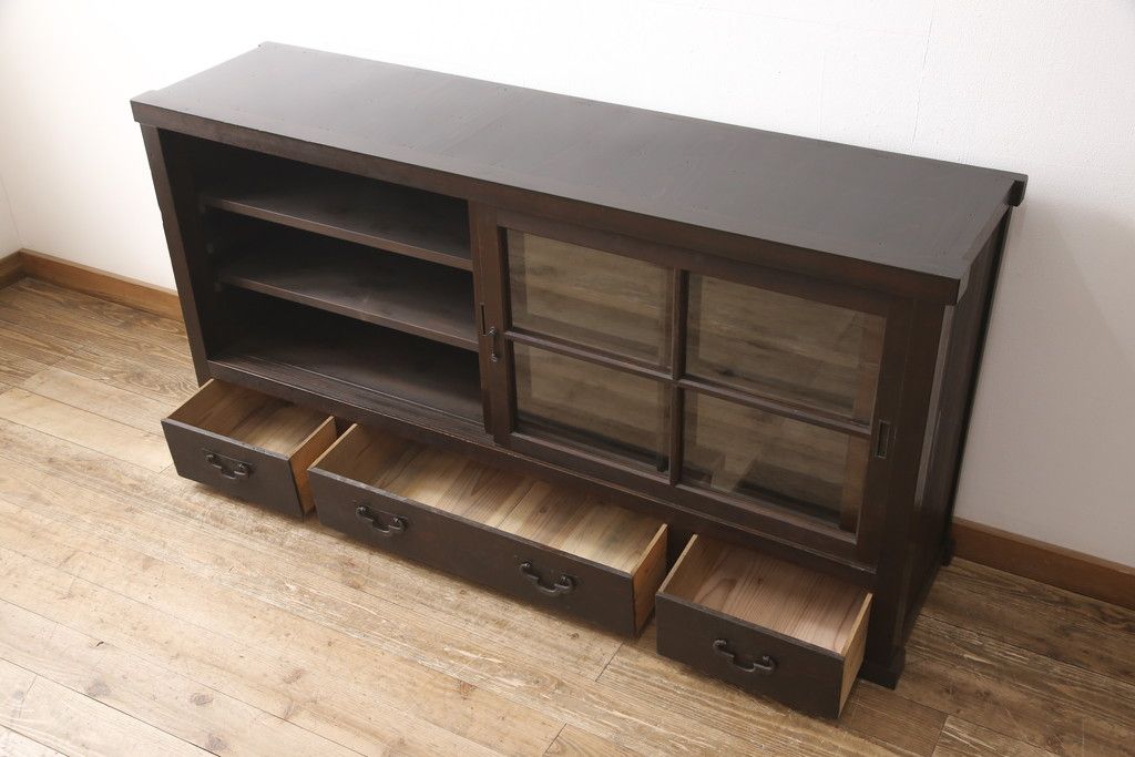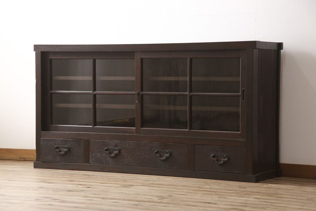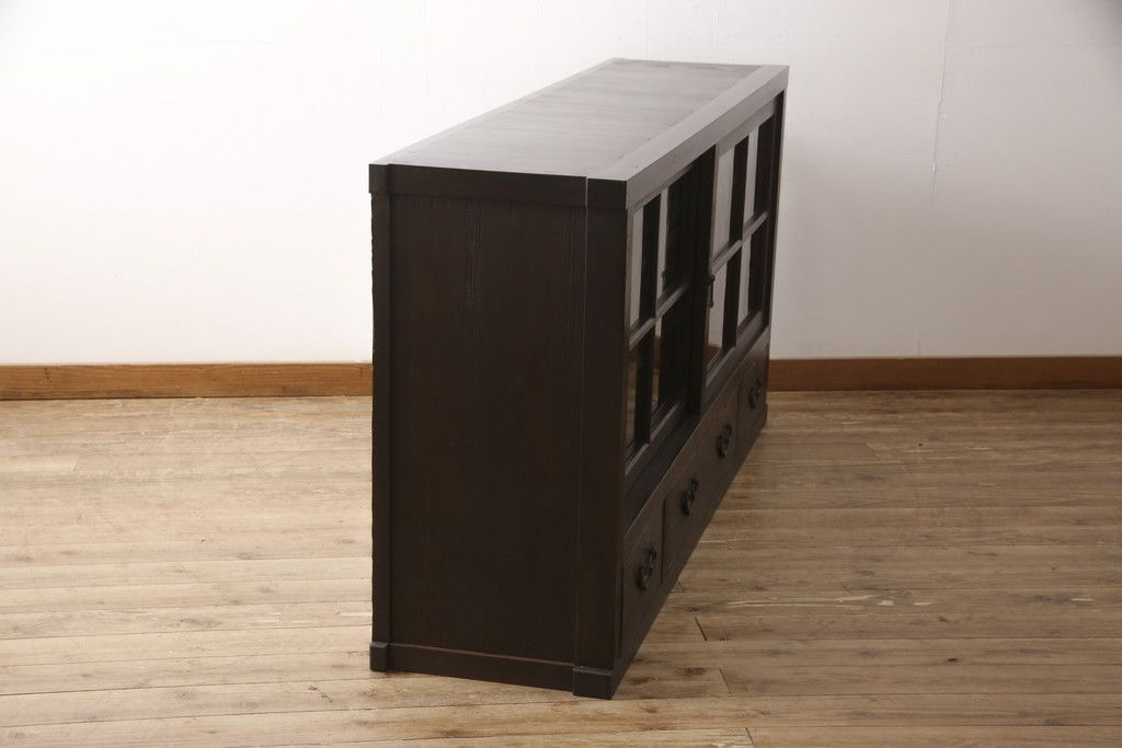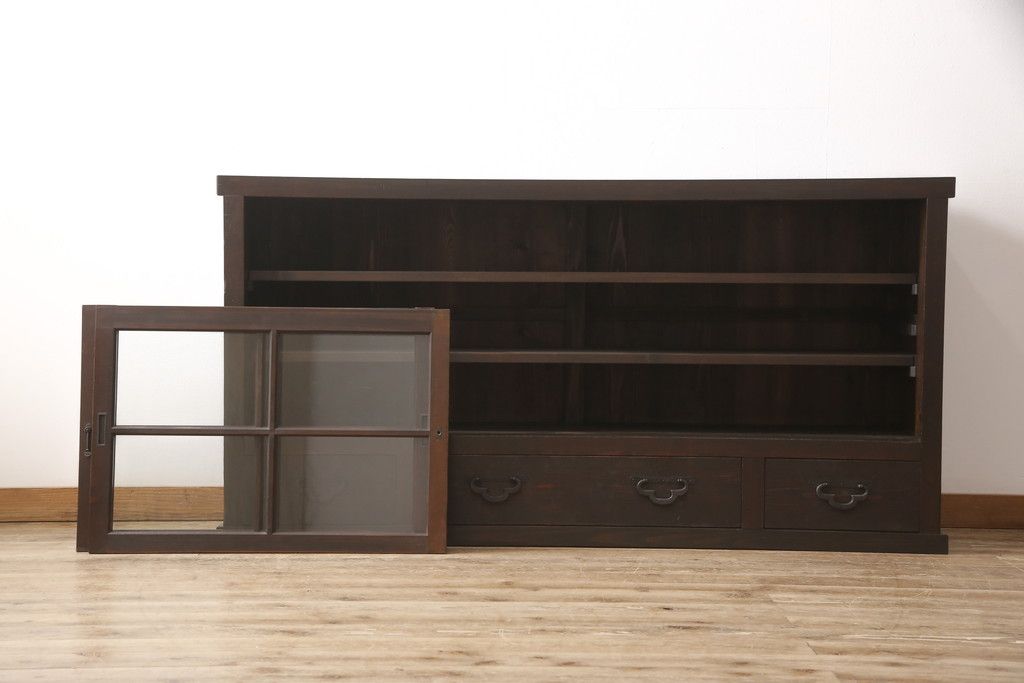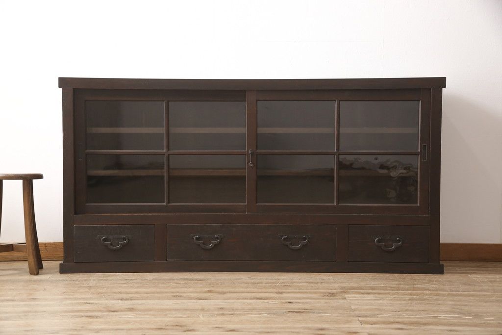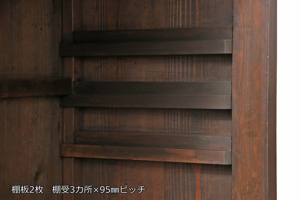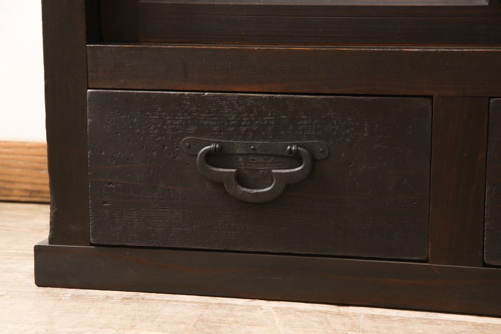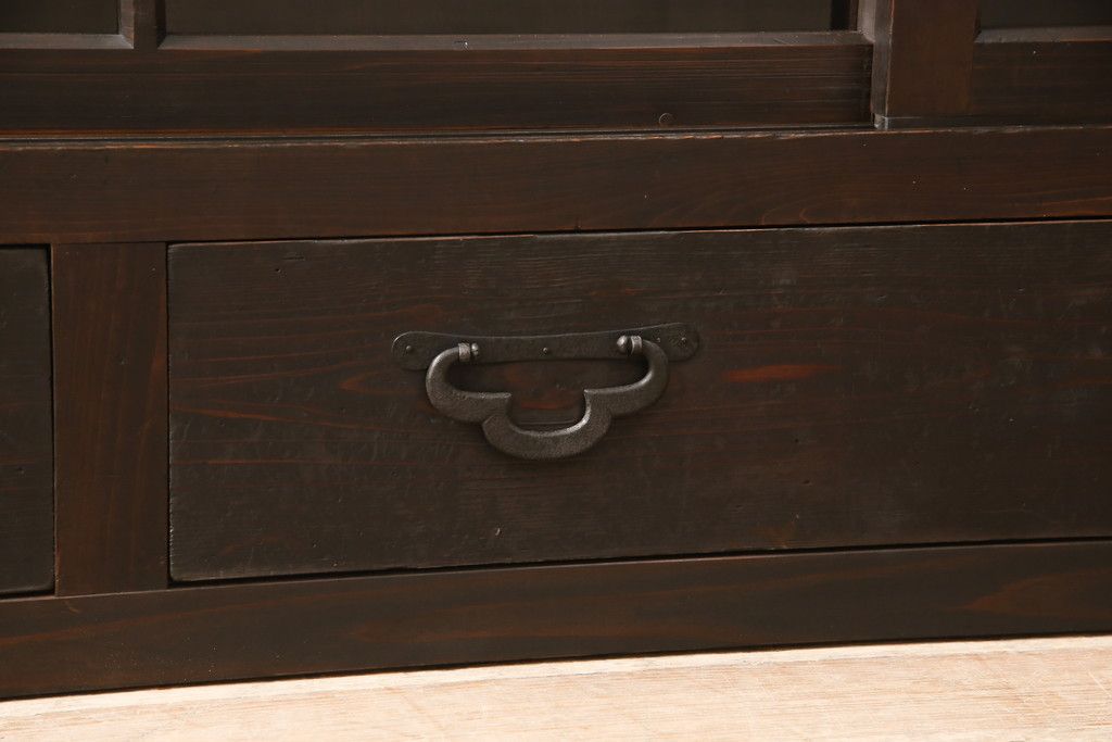 キャビネット・戸棚> 食器棚・カップボード > 明治〜大正時代の戸棚をリペア&カスタム!建具はガラスをクリアガラスに交換し、引手とねじ込み錠を取り付け。天板は杉材に張り替え、内部は棚板を追加。(ガラス戸棚、キャビネット、収納棚、食器棚)