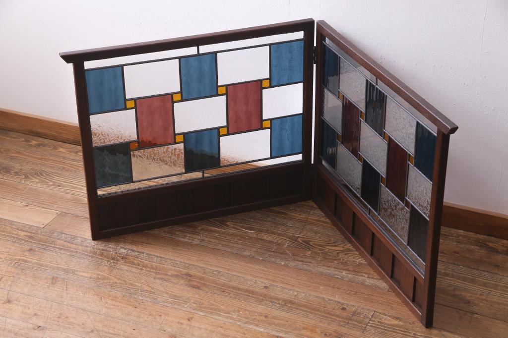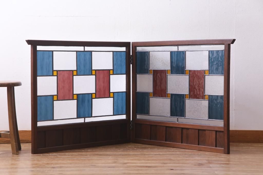 明治大正期の衝立をリペア&カスタム!オリジナルのステンドグラスをはめ込み、レトロモダンな仕上がりに。(つい立て、間仕切り)
