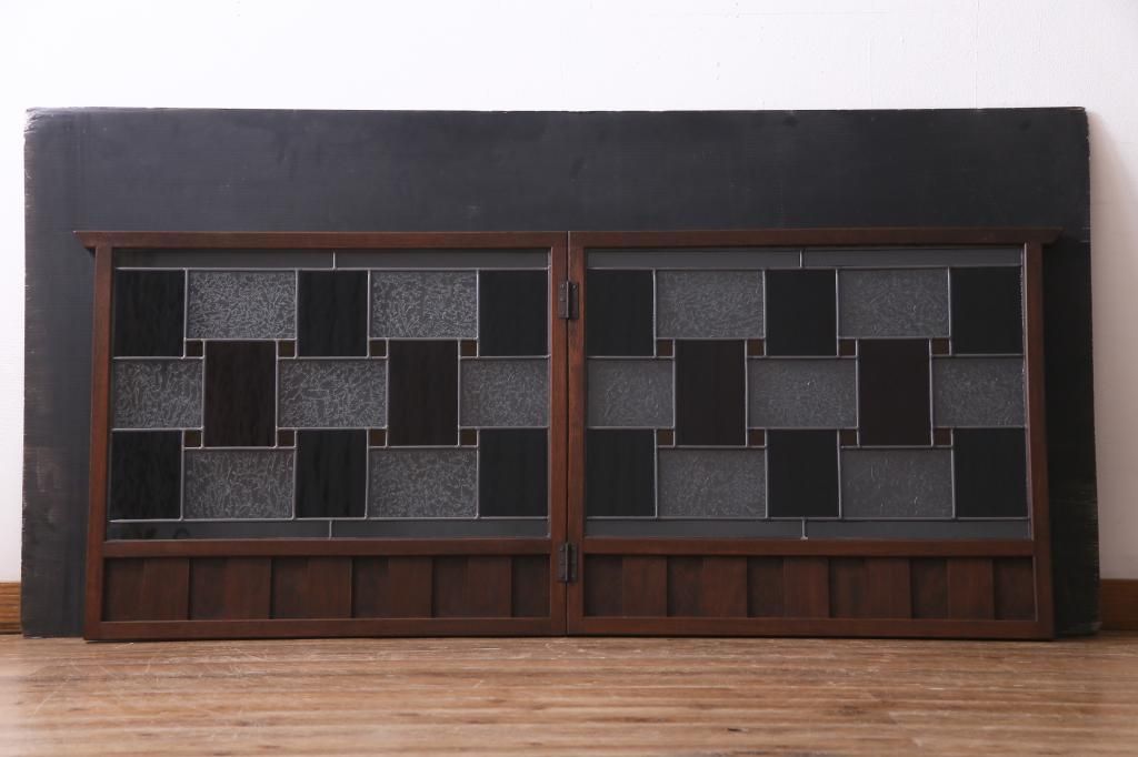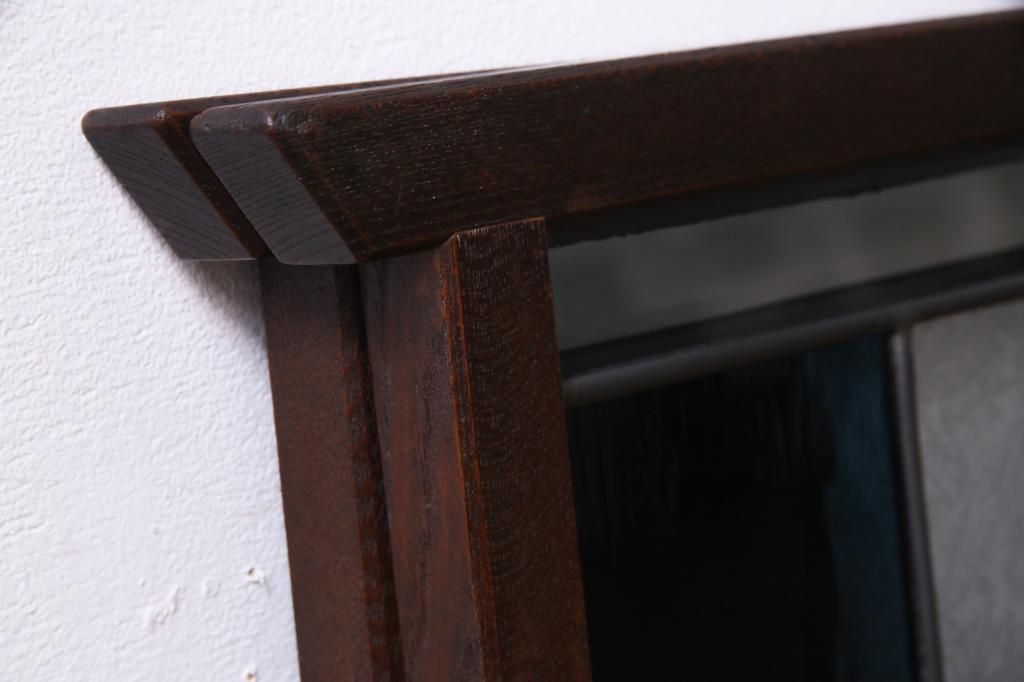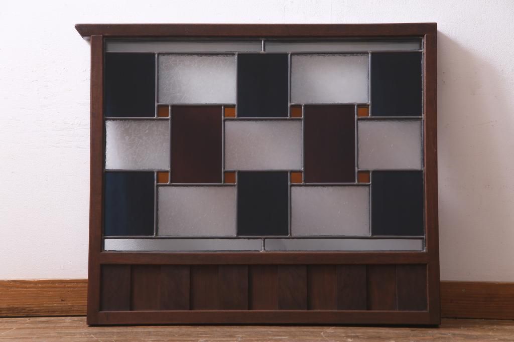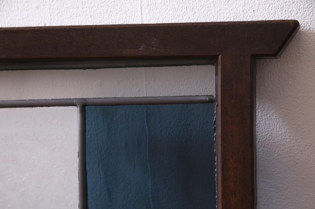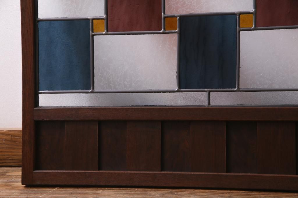 ◆デザイン:明治〜大正のケヤキ材製衝立に当店オリジナルのステンドグラスを組み入れ