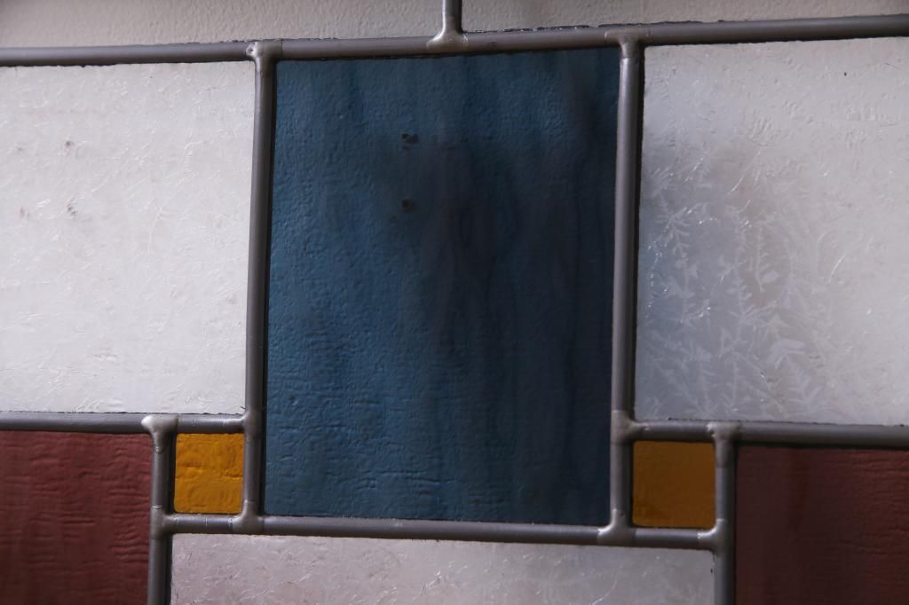 ◆ガラスの種類:青・赤・黄色の色ガラスと結霜ガラス