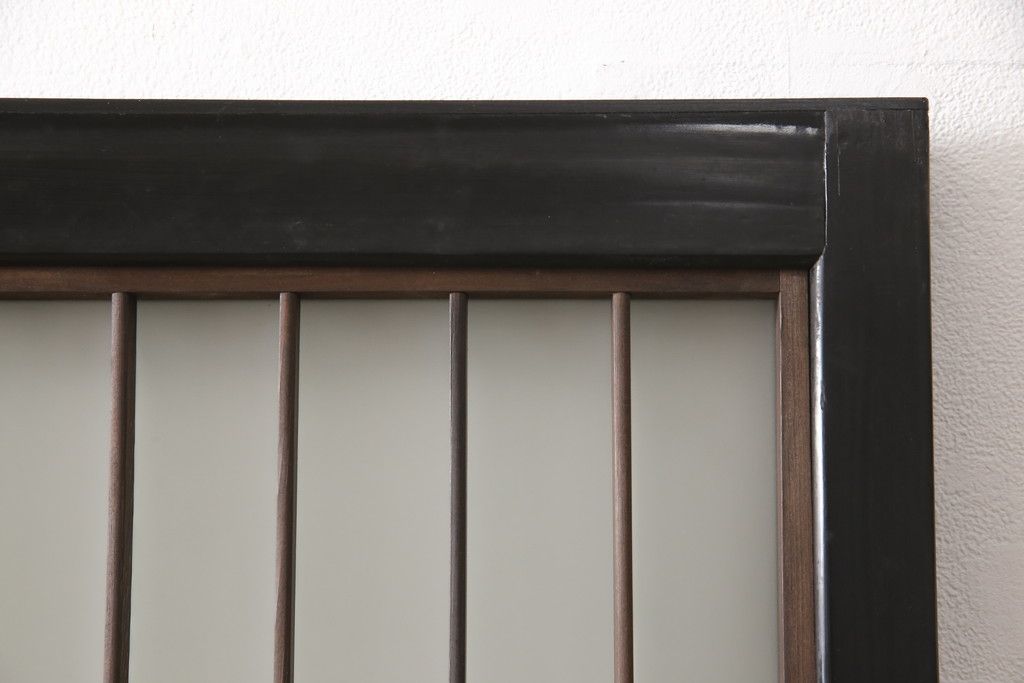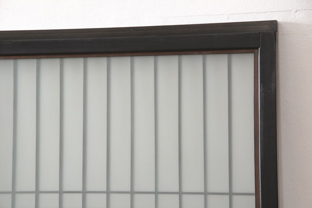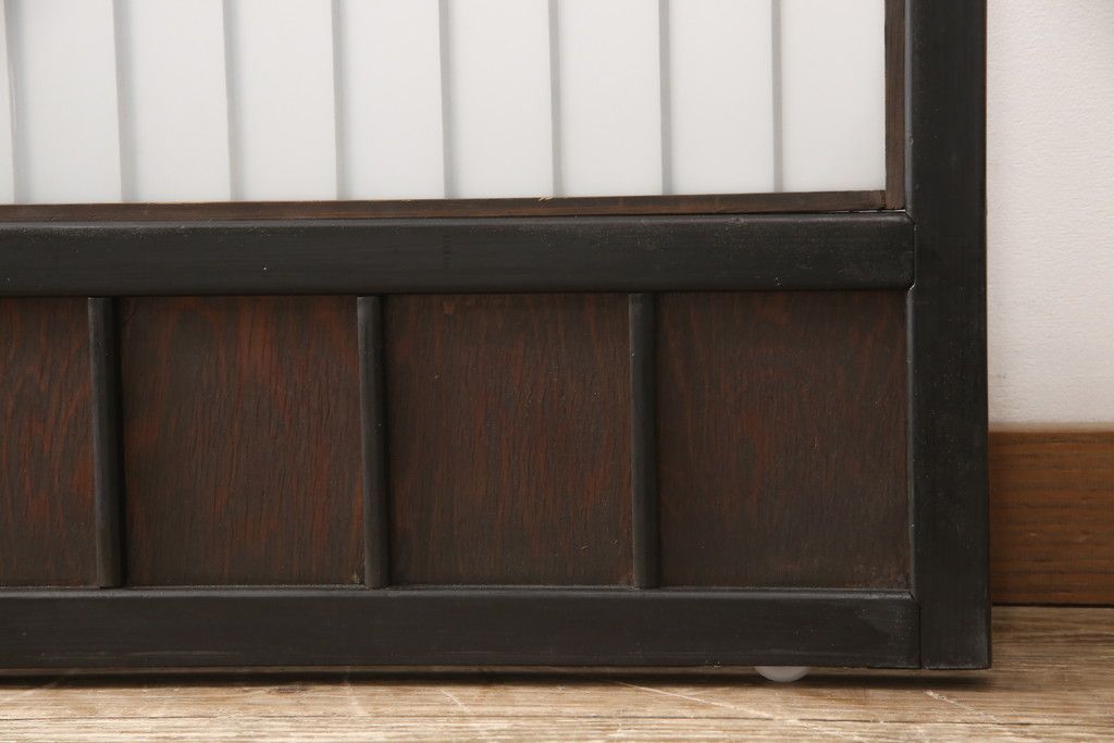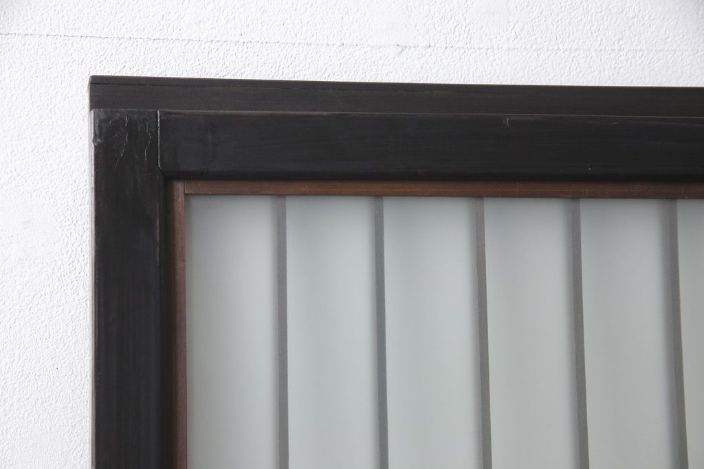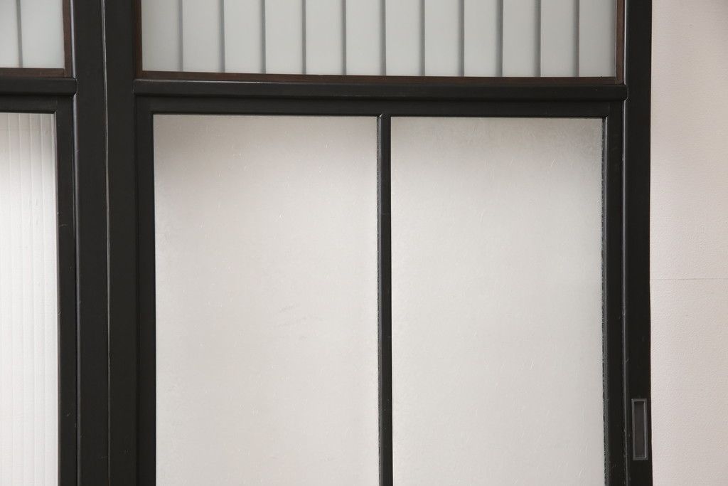 ドア・建具> ガラス戸 > 昭和初期のガラス戸をリペア&カスタム!寸法を変えずに戸首を調整。1枚は結霜ガラスからモールガラスに変更。葵戸引手を取り付け、V型戸車を取り付け。現状に近い色味に着色仕上げ。(引き戸、建具)