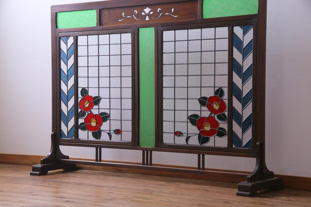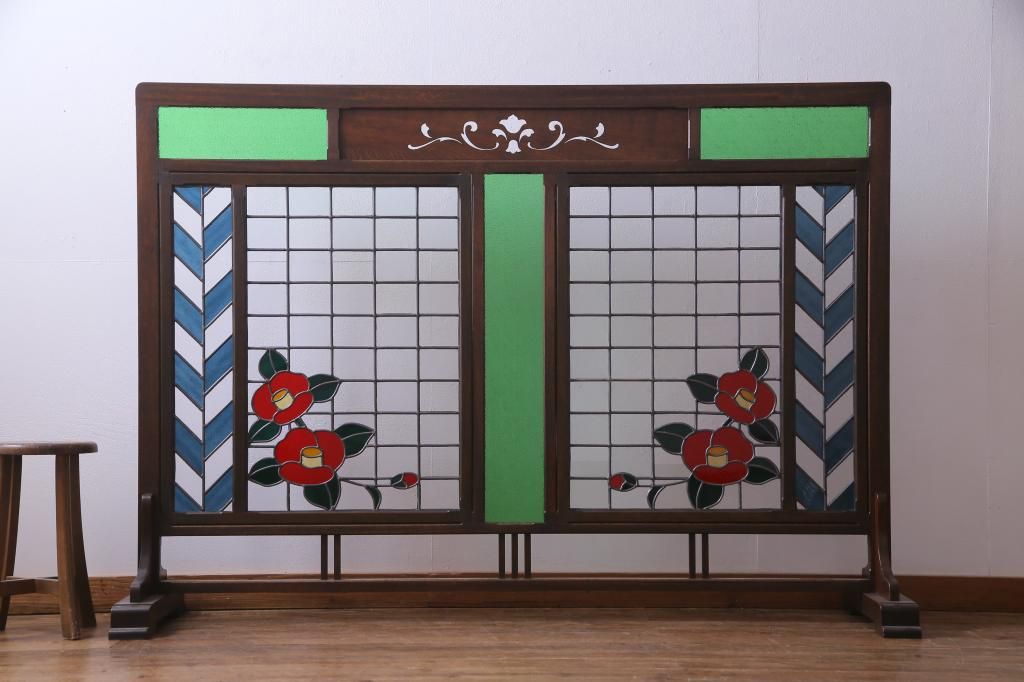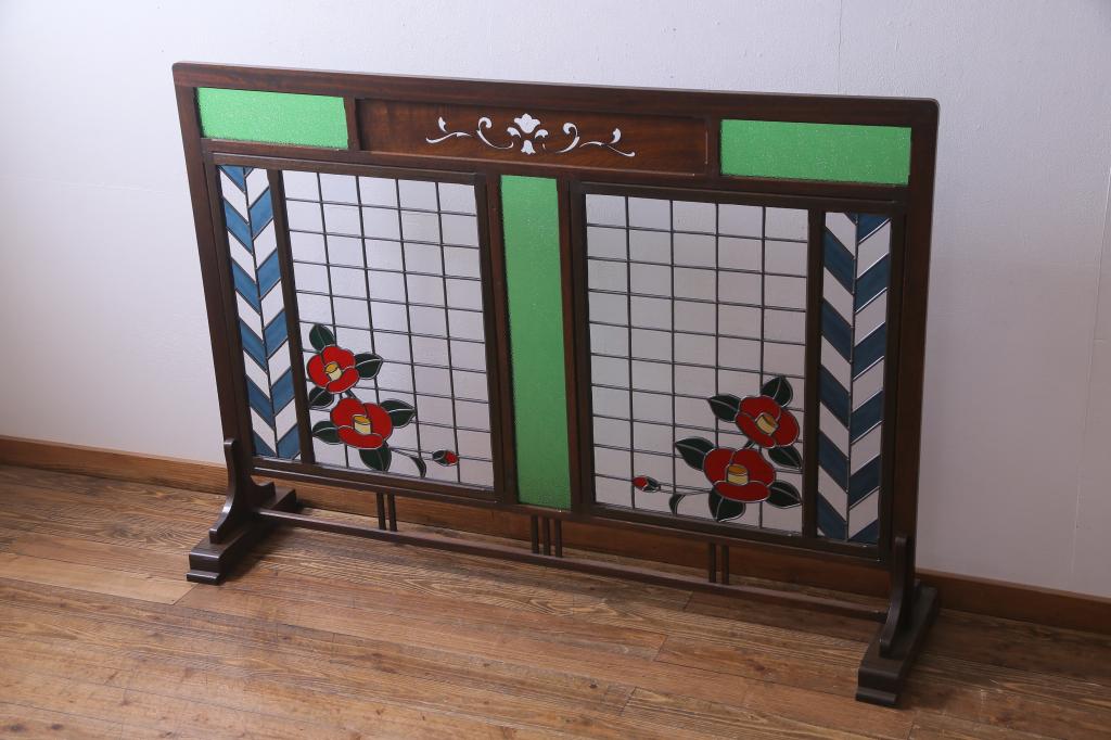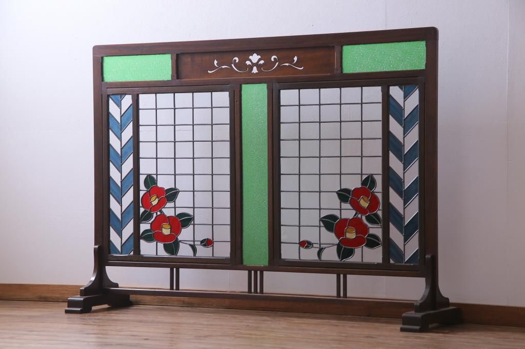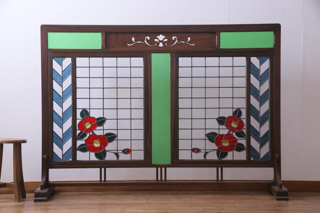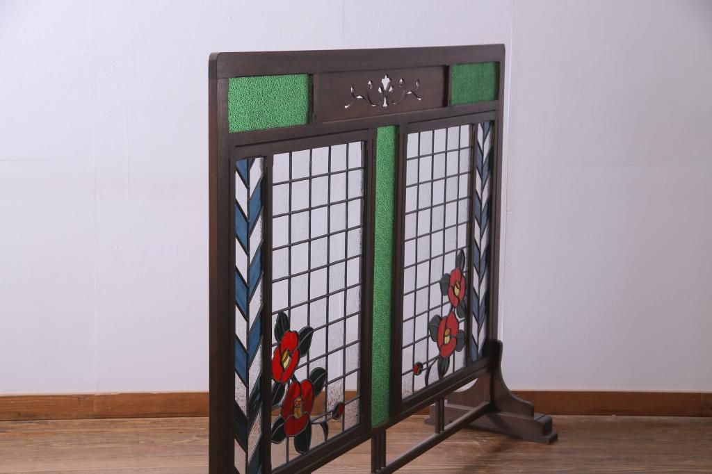 アンティークの衝立をリペア&カスタム!当時物の色ガラスとオリジナルのステンドグラスをはめ込み、大正ロマンな仕上がりに。(つい立て、間仕切り、パーテーション)