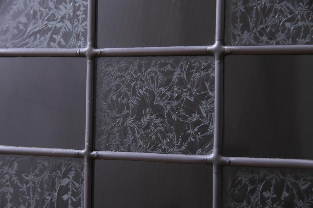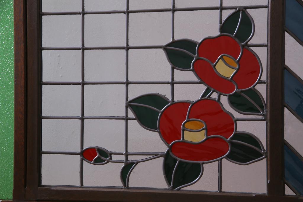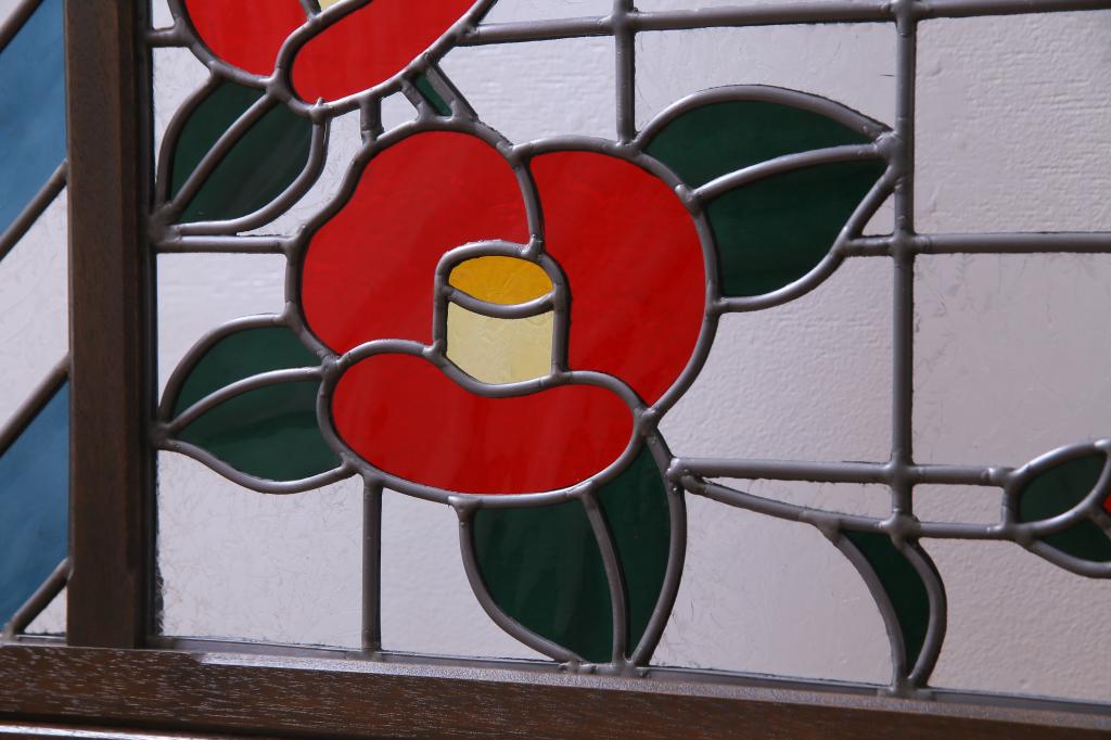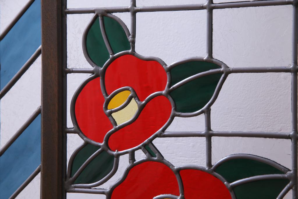 ◆デザイン:昭和初期の衝立に色ガラスとステンドグラスを組み入れ