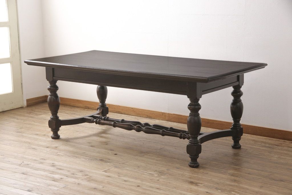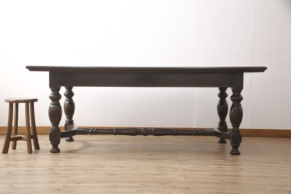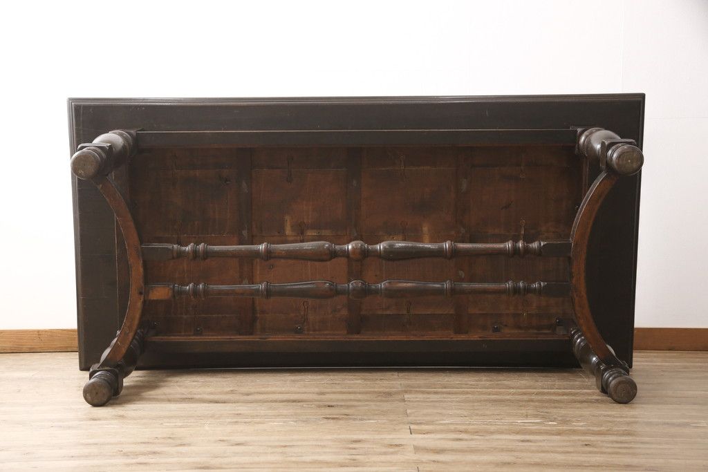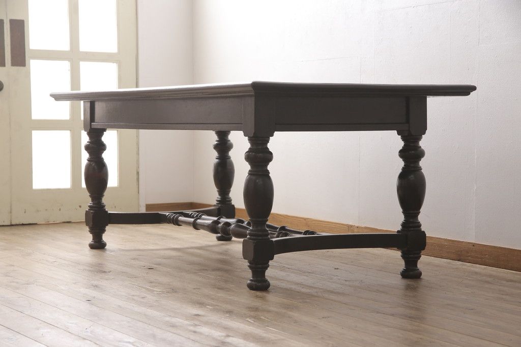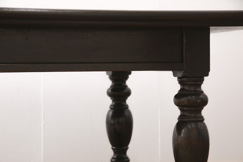 テーブル> 6人用ダイニングテーブル > 大正時代のダイニングテーブルをリペア&カスタム!幕板下に取り付けられていた桟は取り外し、色味は脚に合わせて着色して仕上げ。(作業台、食卓)