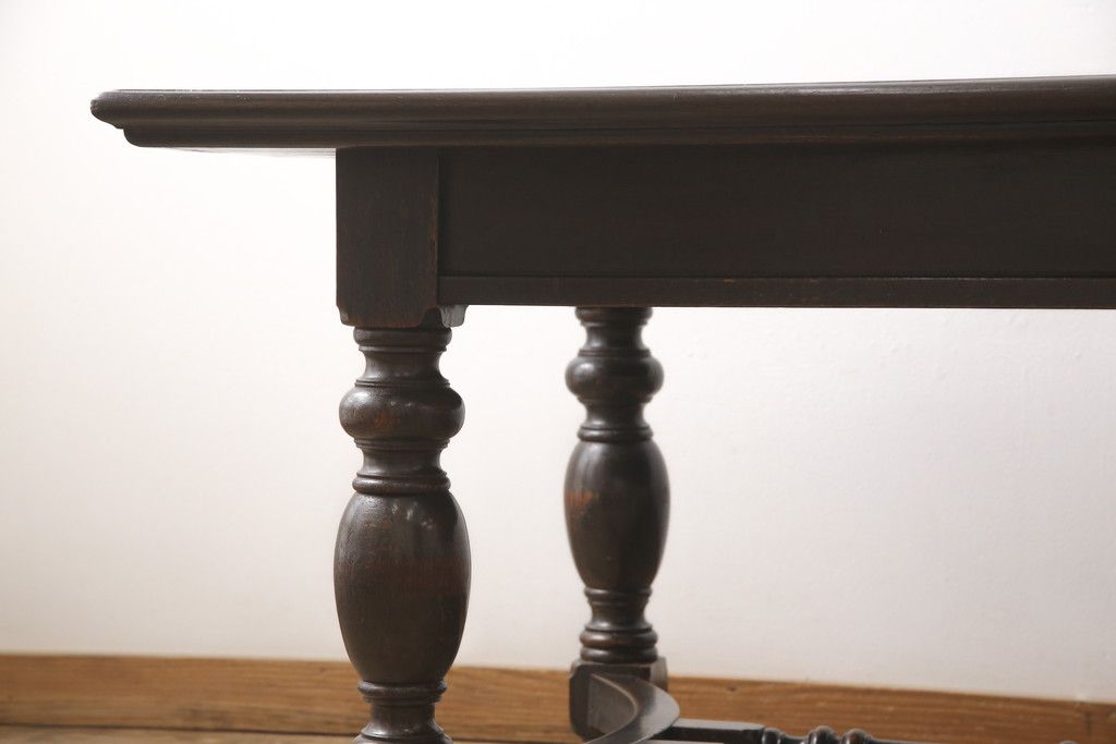 テーブル> 4人用ダイニングテーブル > 大正時代のダイニングテーブルをリペア&カスタム!幕板下に取り付けられていた桟は取り外し、色味は脚に合わせて着色して仕上げ。(作業台、食卓)