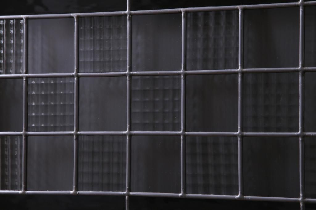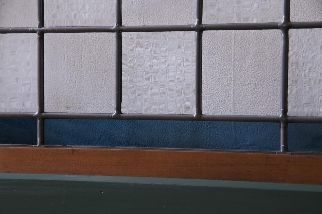 ・チェッカーガラスとクリアガラス、青い色ガラスの3種を使用