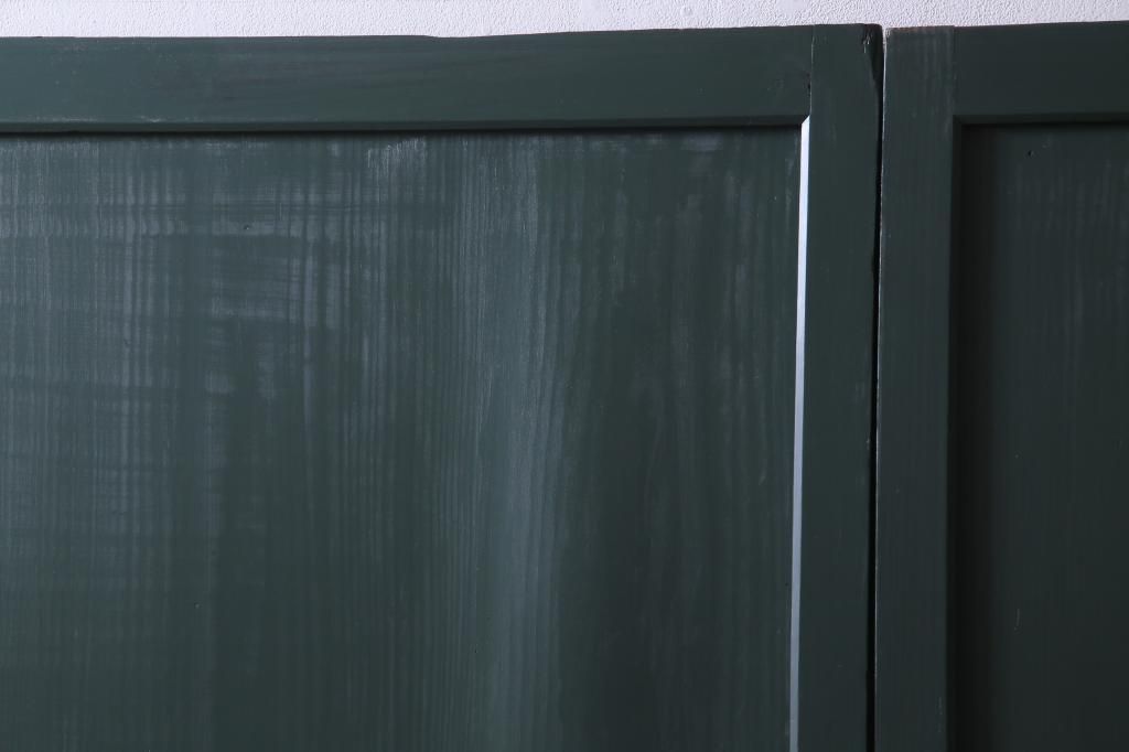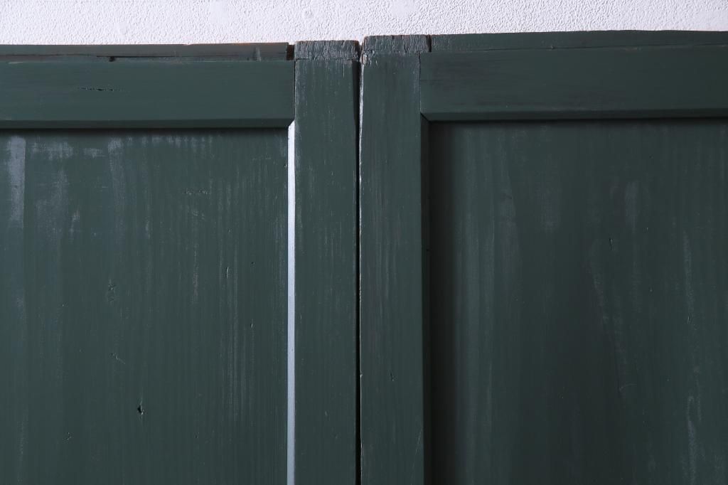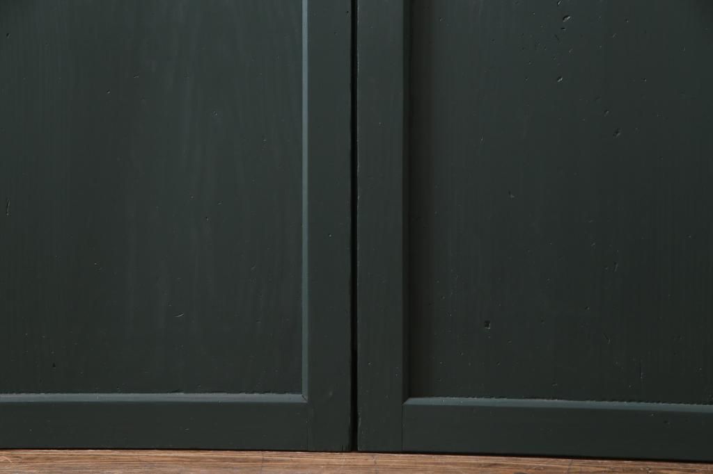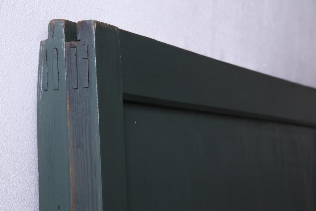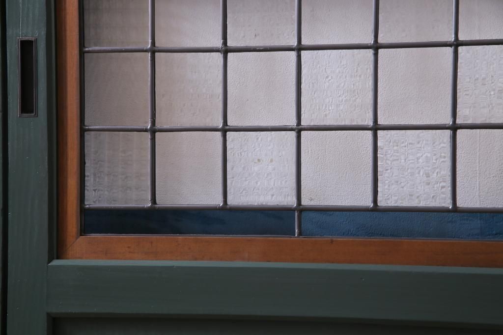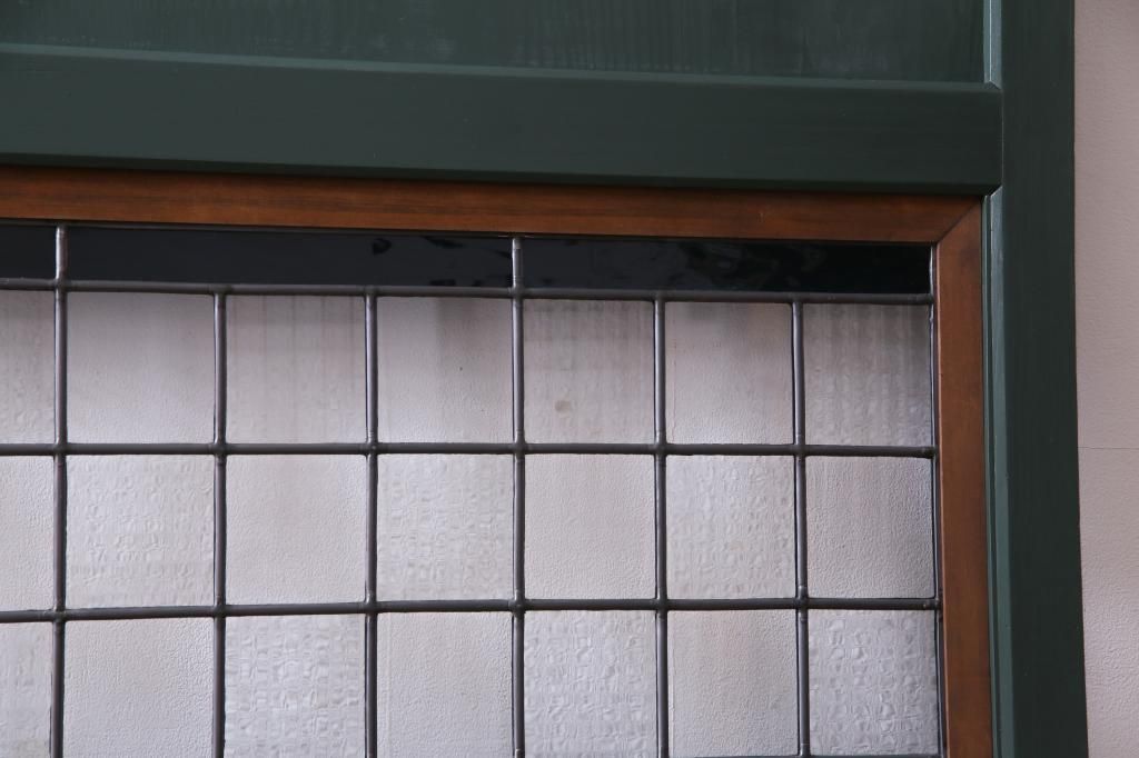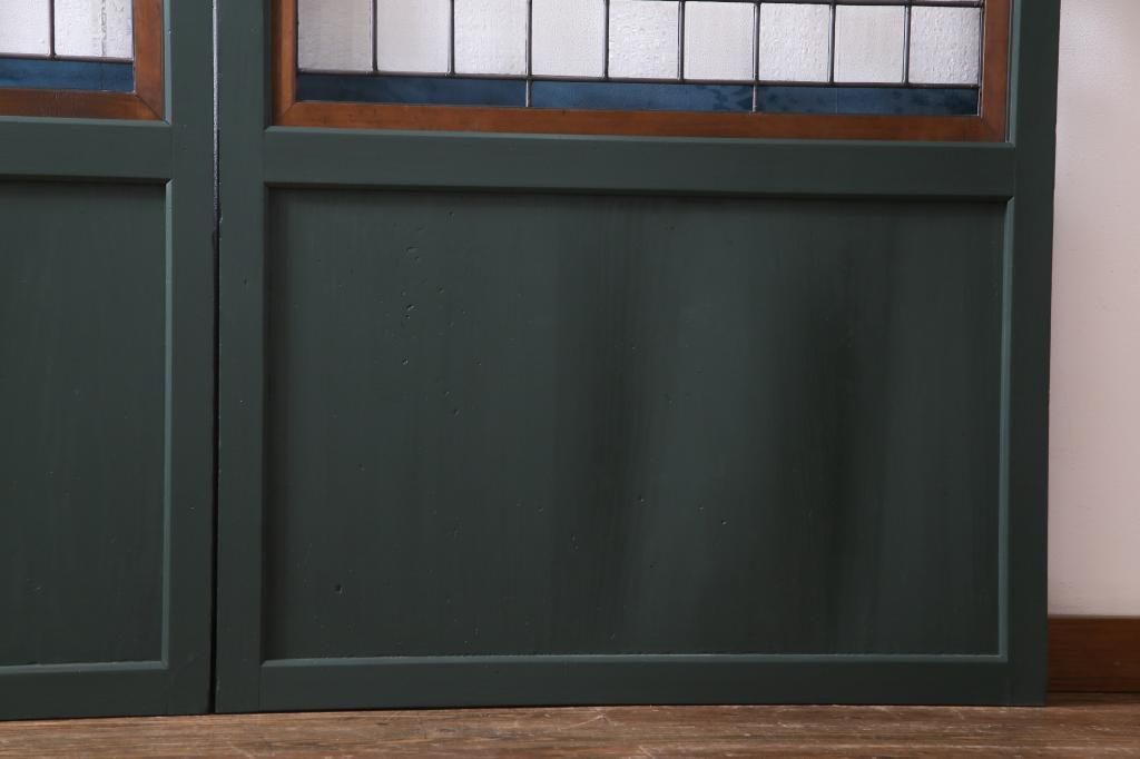 明治期の板戸2枚をリペア&カスタム!オリジナルのステンドグラスをはめ込み、ダークグリーンに着色仕上げ。(引き戸、建具)