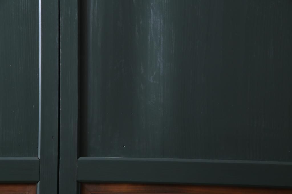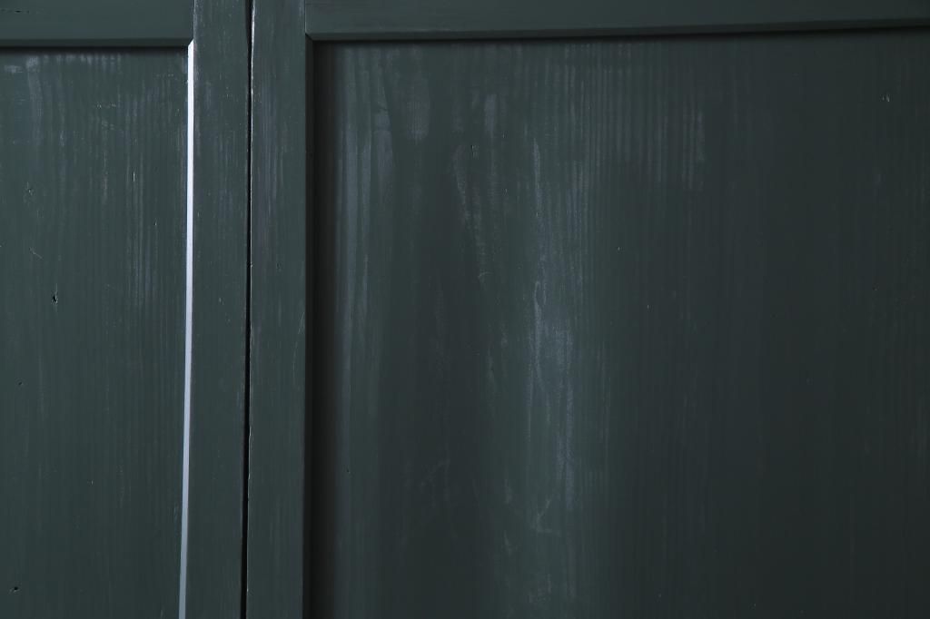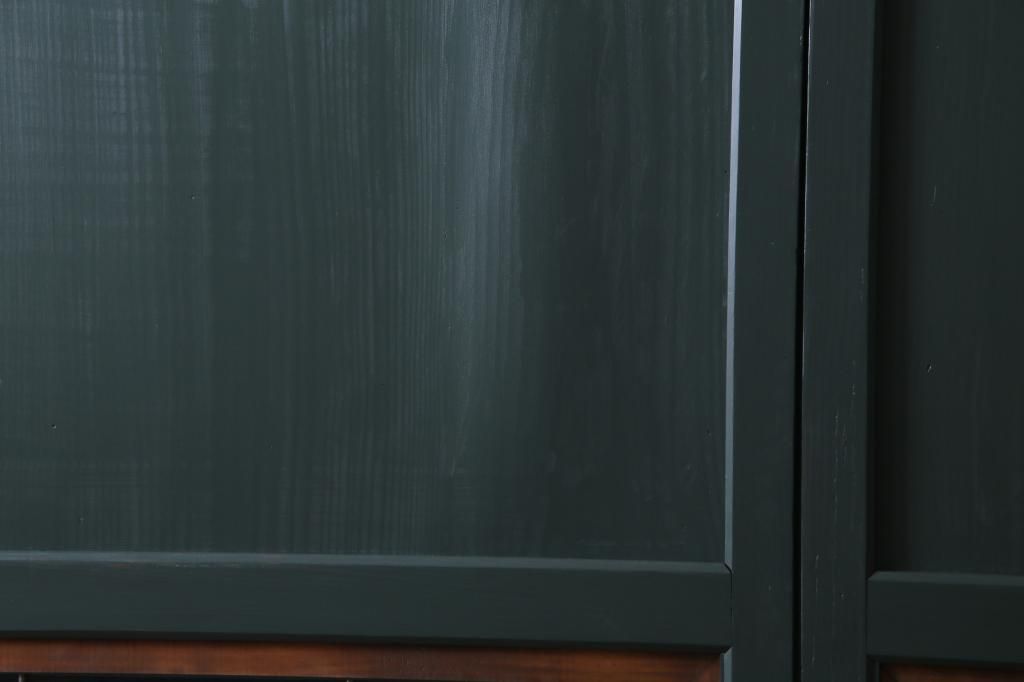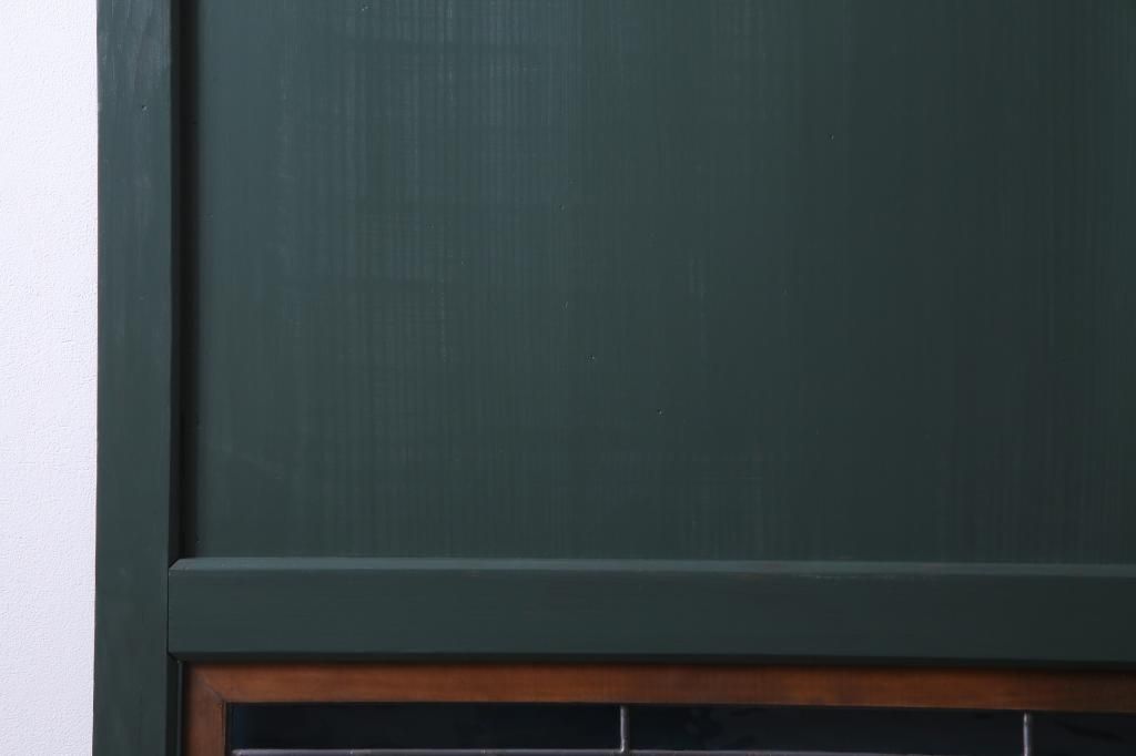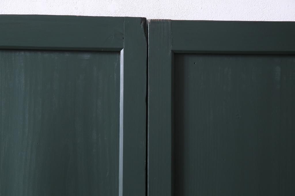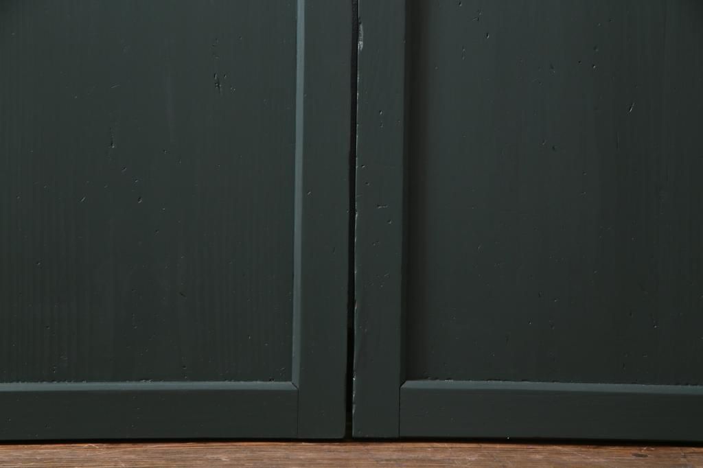 明治期の板戸2枚をリペア&カスタム!オリジナルのステンドグラスをはめ込み、ダークグリーンに着色仕上げ。(引き戸、建具)