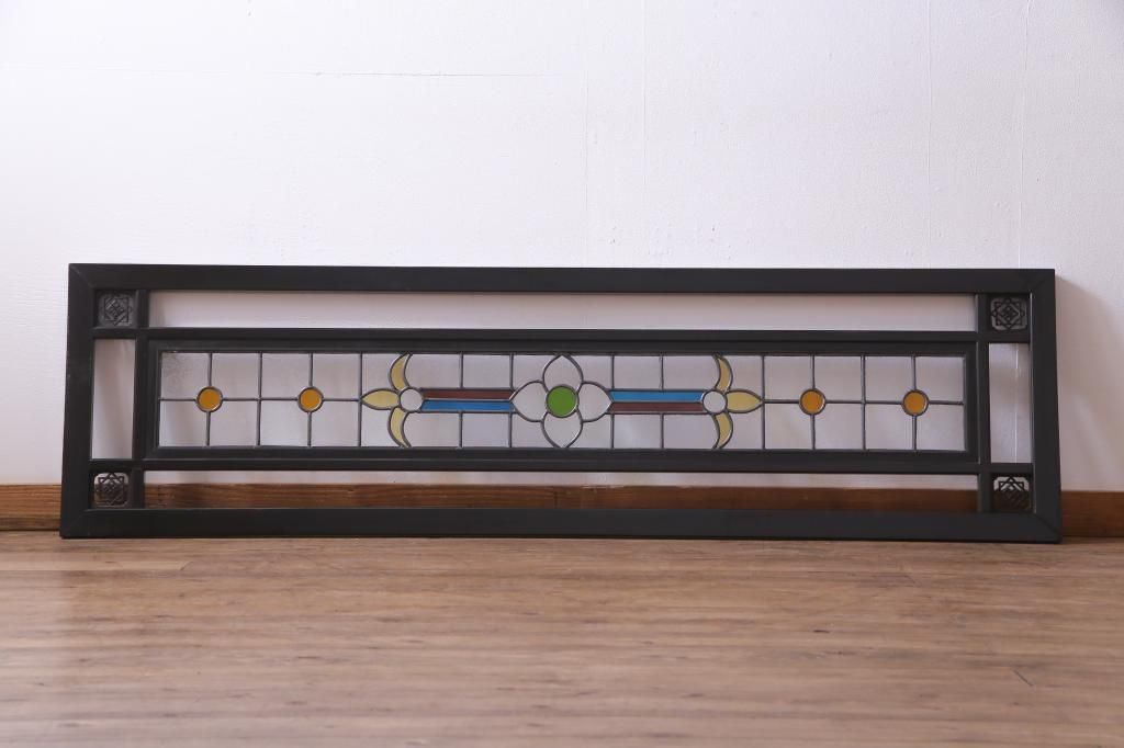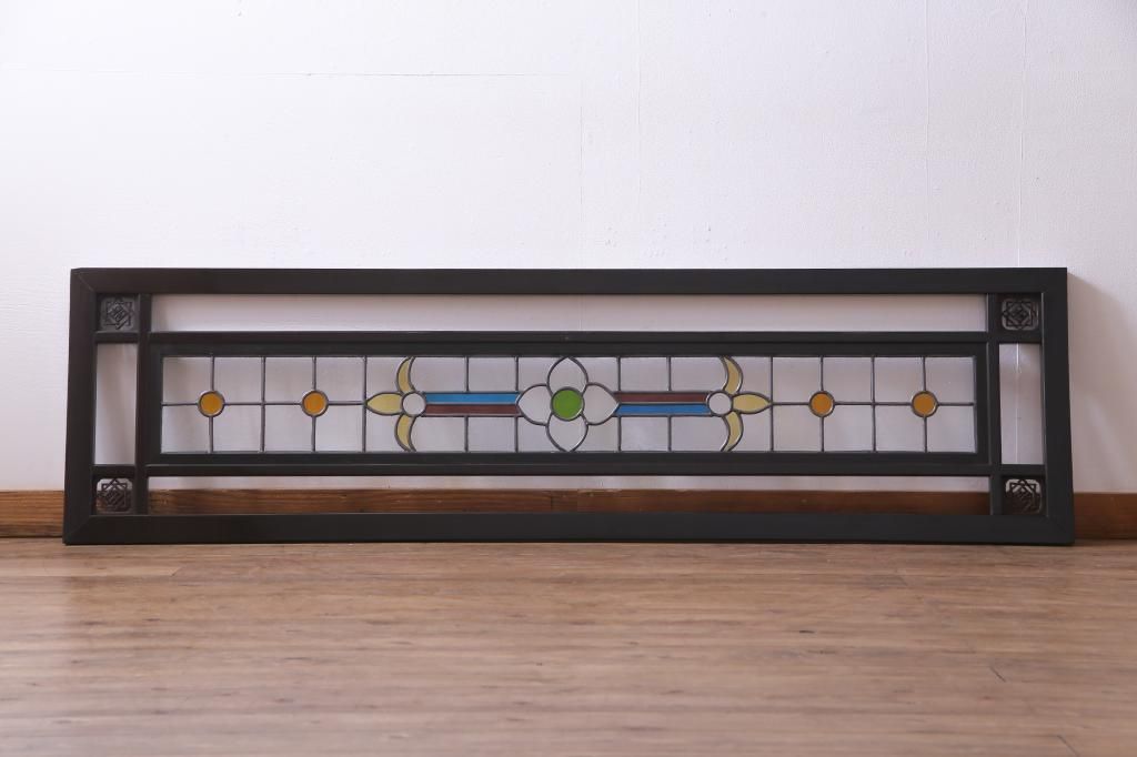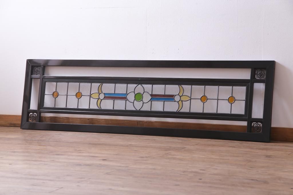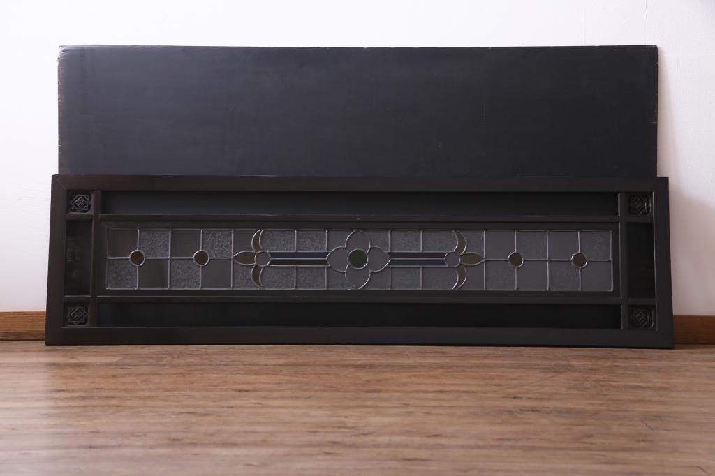 明治大正期の大正ロマンな欄間をリペア&カスタム!オリジナルのステンドグラスをはめ込み、濃い茶色で着色仕上げ。(明り取り、明かり取り、ディスプレイ)