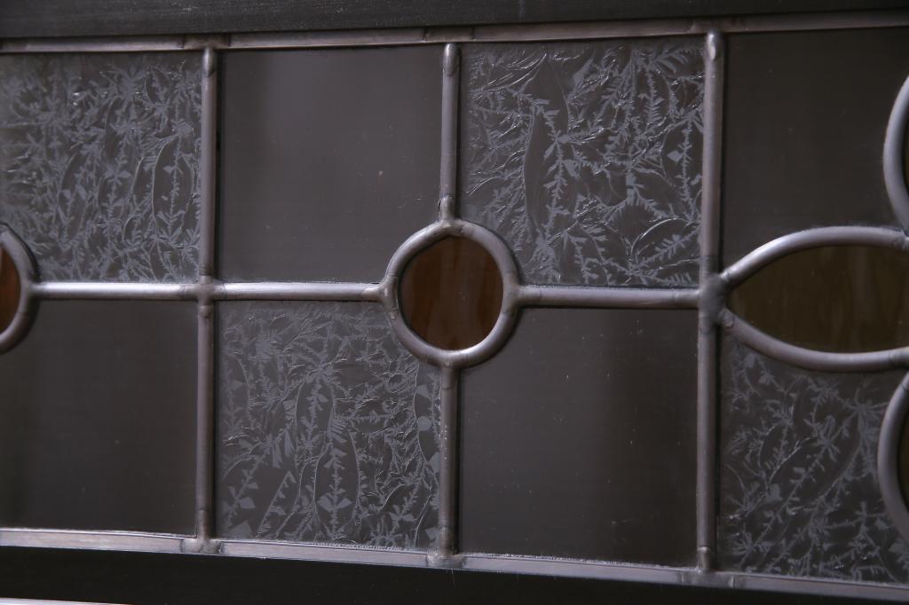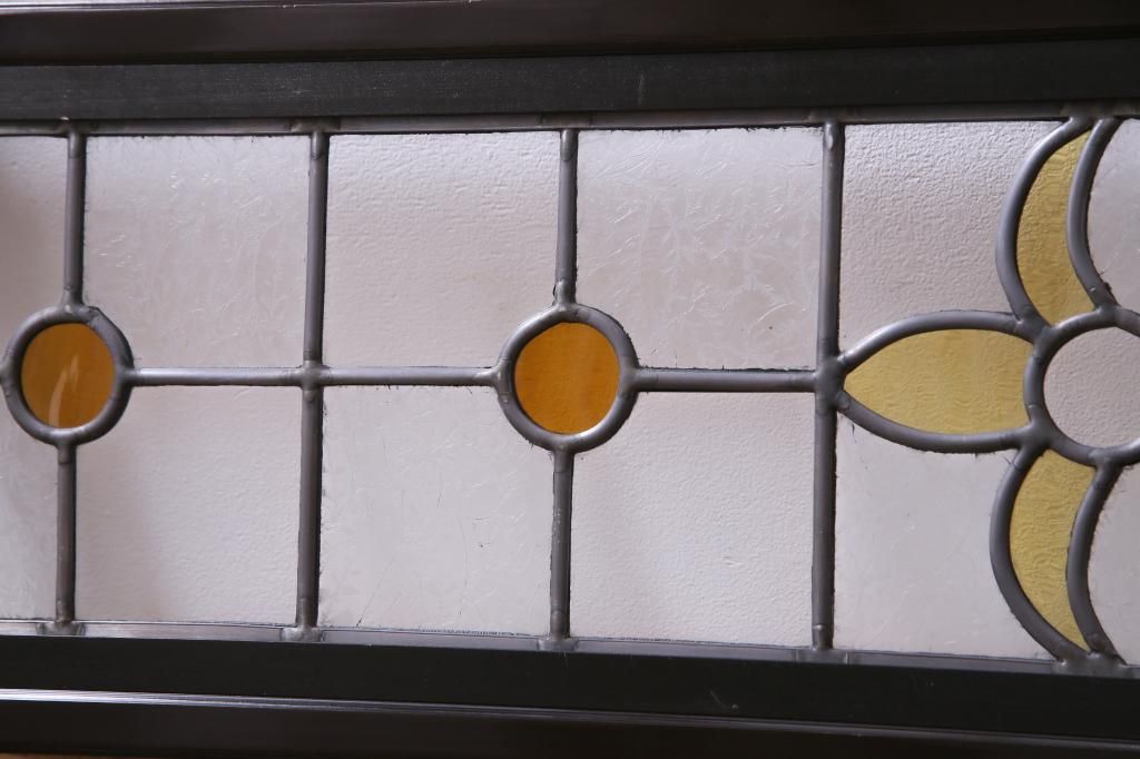ステンドグラス > 明治大正期の大正ロマンな欄間をリペア&カスタム!オリジナルのステンドグラスをはめ込み、濃い茶色で着色仕上げ。(明り取り、明かり取り、ディスプレイ)