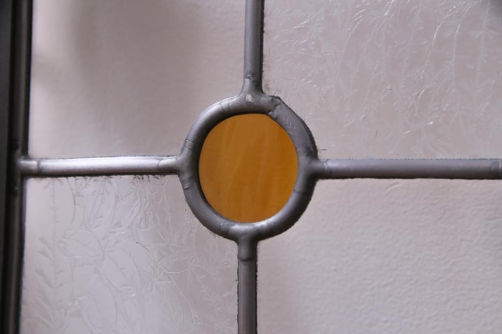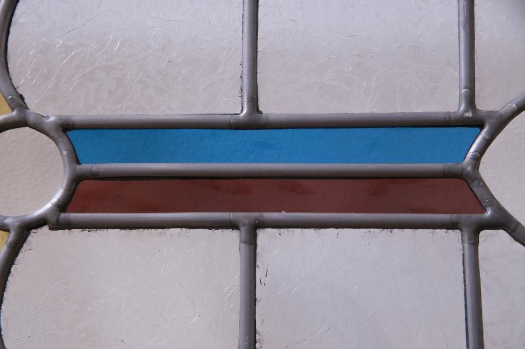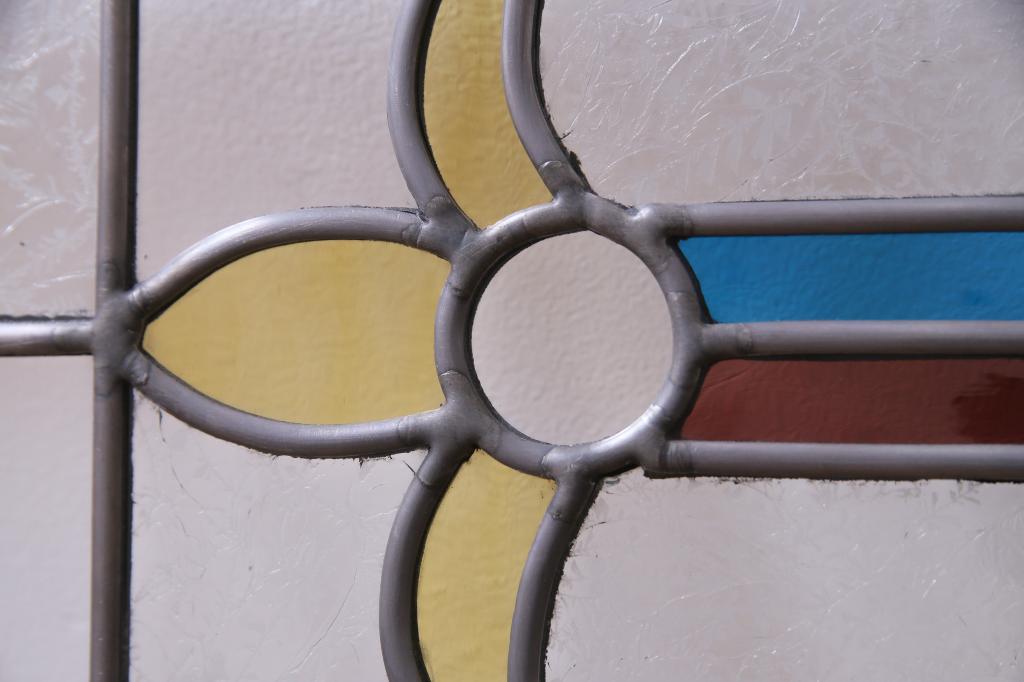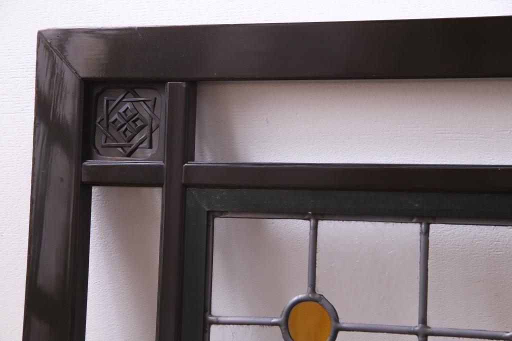 ドア・建具> 明り取り・欄間 > 明治大正期の大正ロマンな欄間をリペア&カスタム!オリジナルのステンドグラスをはめ込み、濃い茶色で着色仕上げ。(明り取り、明かり取り、ディスプレイ)