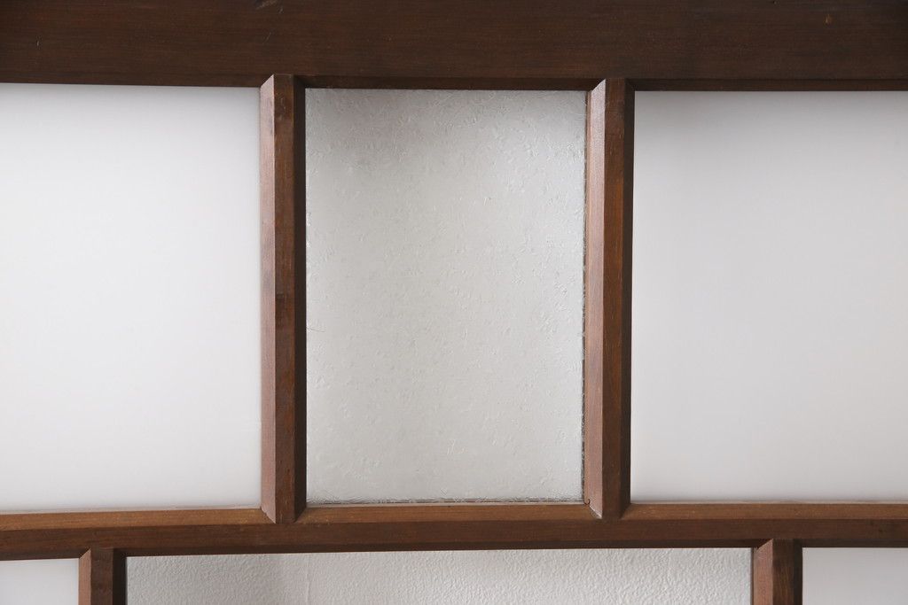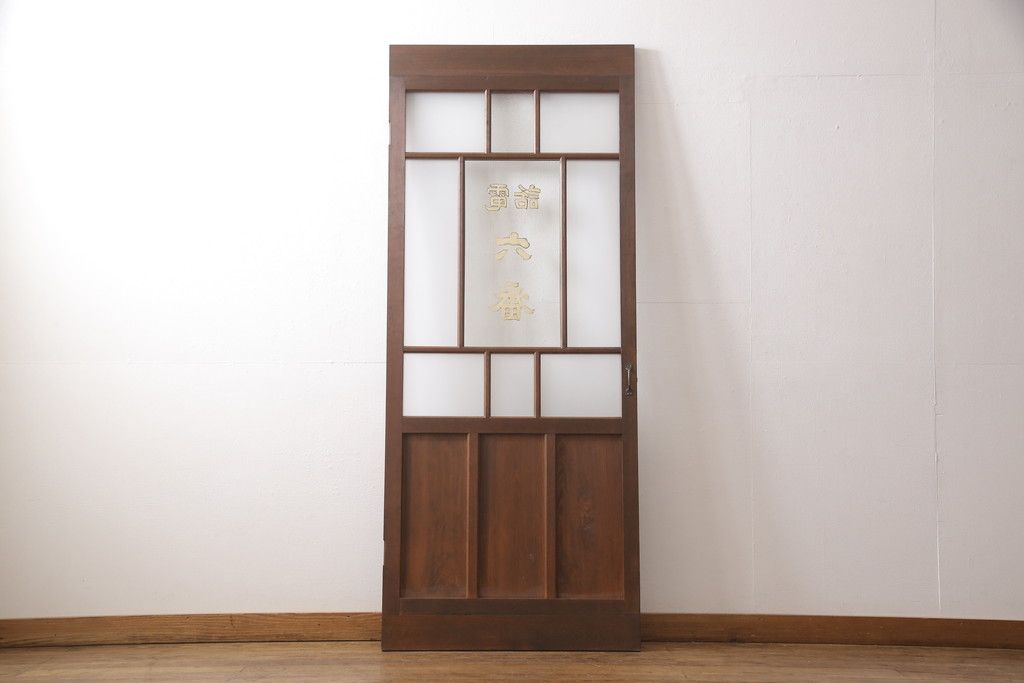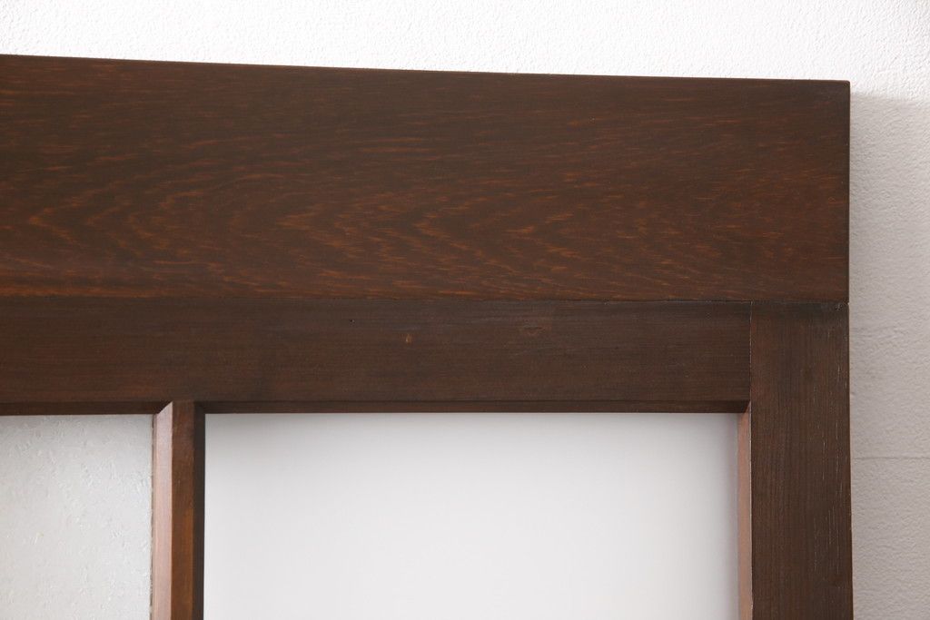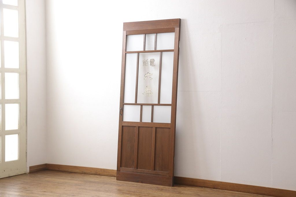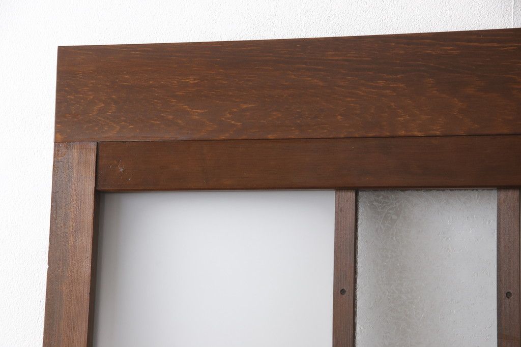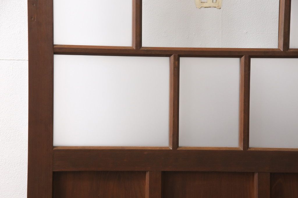 ドア・建具> ガラス戸 > 大正昭和初期のレトロなドアをリペア&カスタム!高さをリサイズし、ガラスを反転。蝶番を取り外し、ローラー締まりを取り付け。現状の色味をベースに着色仕上げ。(ガラス扉、建具)