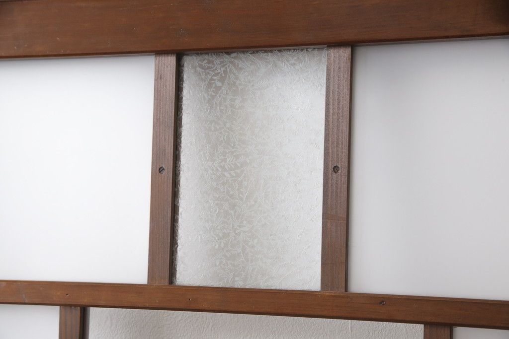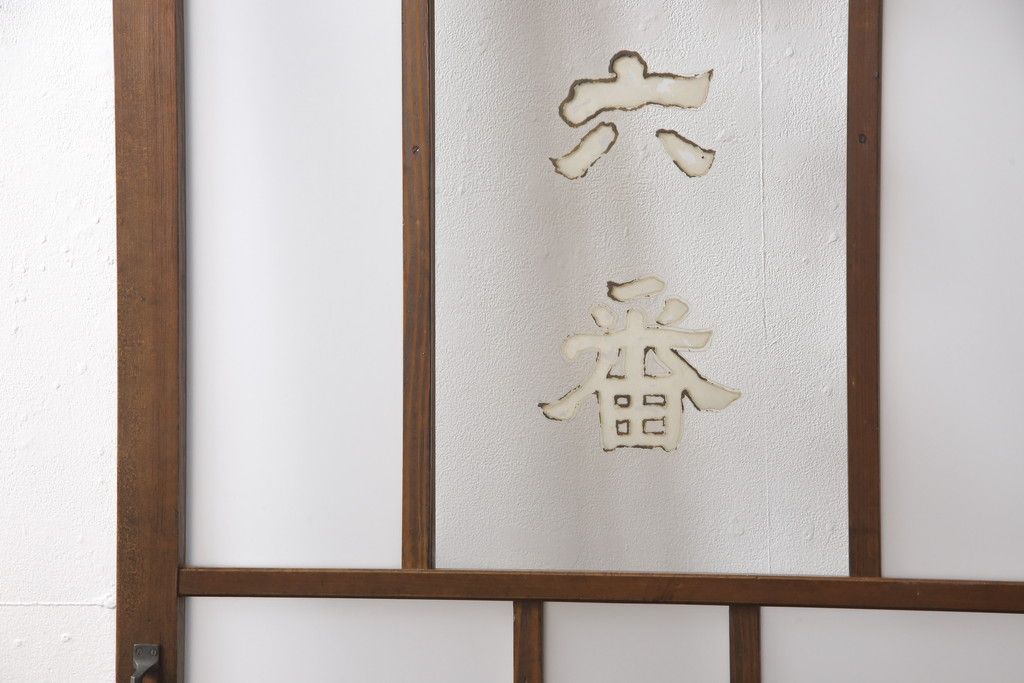 ドア・建具> ドア・扉 > 大正昭和初期のレトロなドアをリペア&カスタム!高さをリサイズし、ガラスを反転。蝶番を取り外し、ローラー締まりを取り付け。現状の色味をベースに着色仕上げ。(ガラス扉、建具)