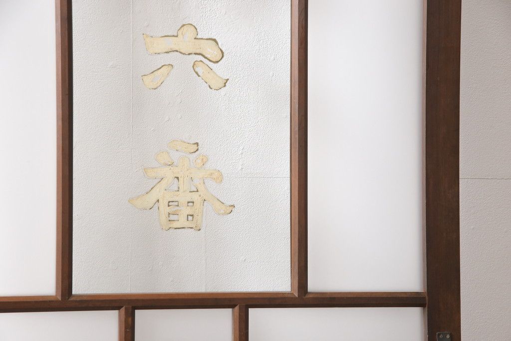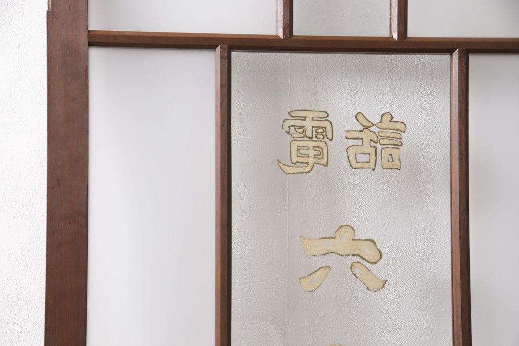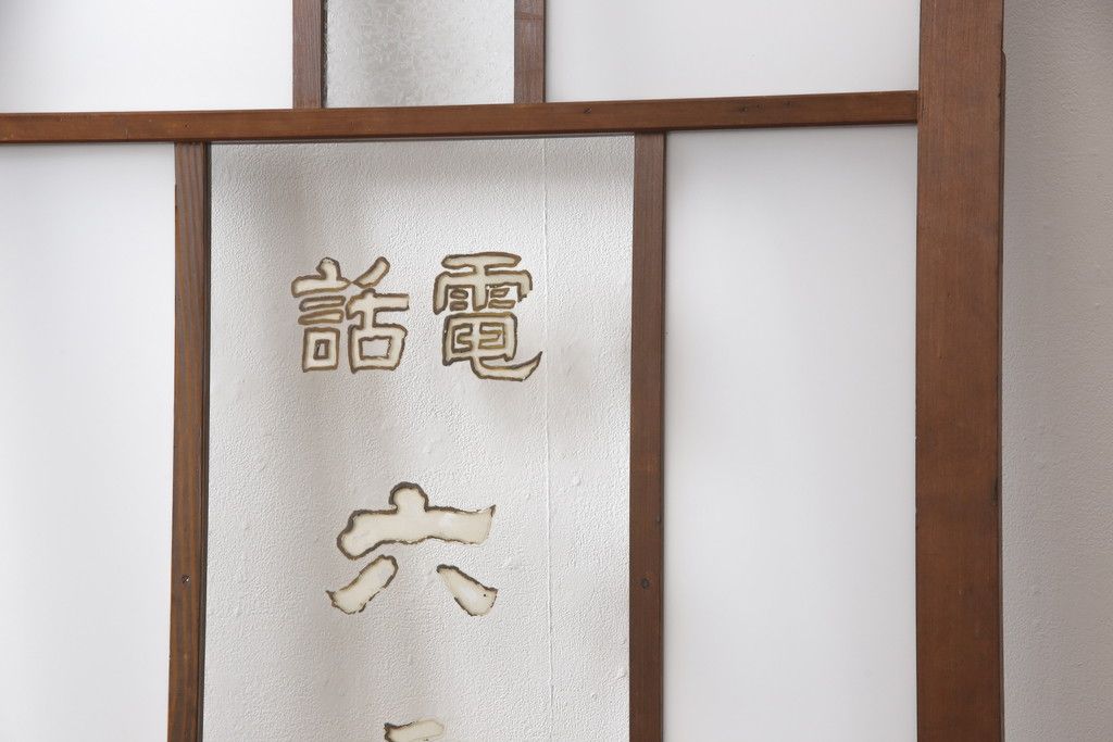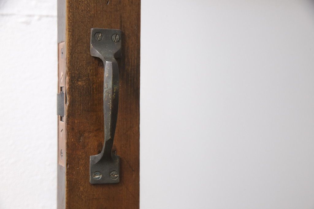 大正昭和初期のレトロなドアをリペア&カスタム!高さをリサイズし、ガラスを反転。蝶番を取り外し、ローラー締まりを取り付け。現状の色味をベースに着色仕上げ。(ガラス扉、建具)