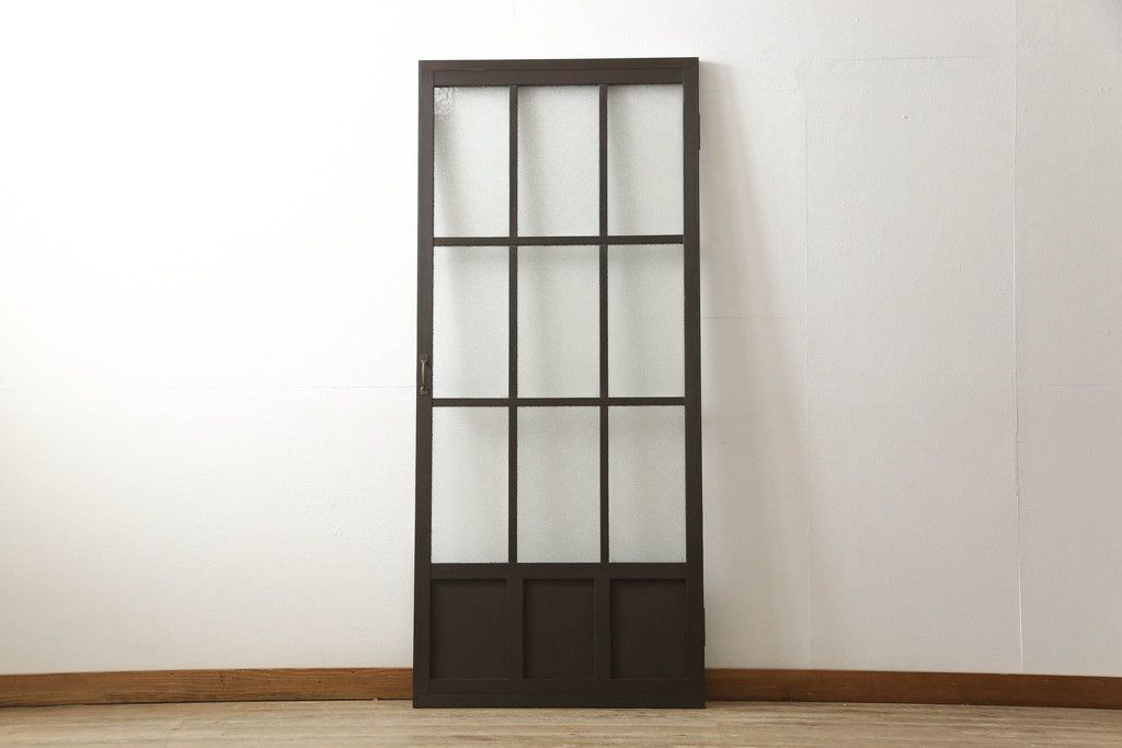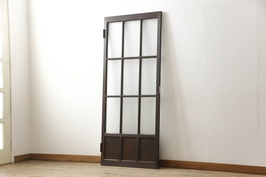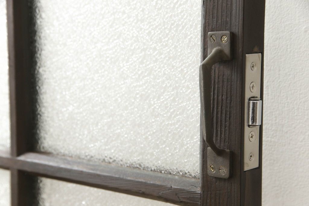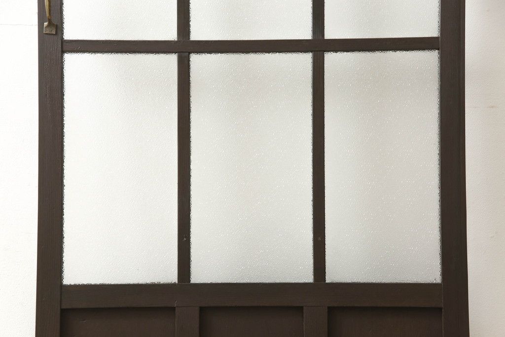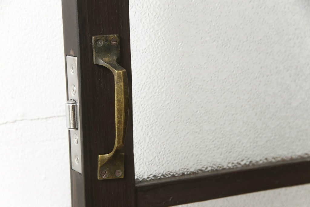 ドア・建具> ガラス戸 > ドアをリペア&カスタム!高さと幅をリサイズし、ローラー締まりの取り付け加工。濃い茶色で着色仕上げ。(ガラス扉、建具)
