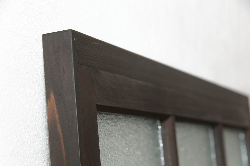 ドア・建具> ドア・扉 > ドアをリペア&カスタム!高さと幅をリサイズし、ローラー締まりの取り付け加工。濃い茶色で着色仕上げ。(ガラス扉、建具)
