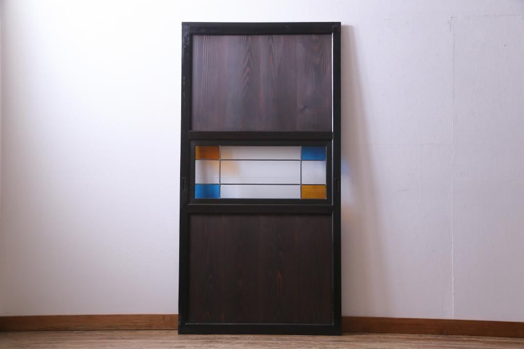 ドア・建具> 色ガラス・ステンド入り建具 > 明治大正期の帯戸をリペア&カスタム!オリジナルのステンドグラスをはめ込み、木目を活かして着色仕上げ。(引き戸、板戸、ガラス戸、建具)