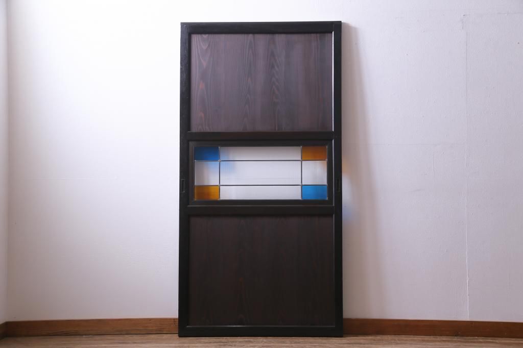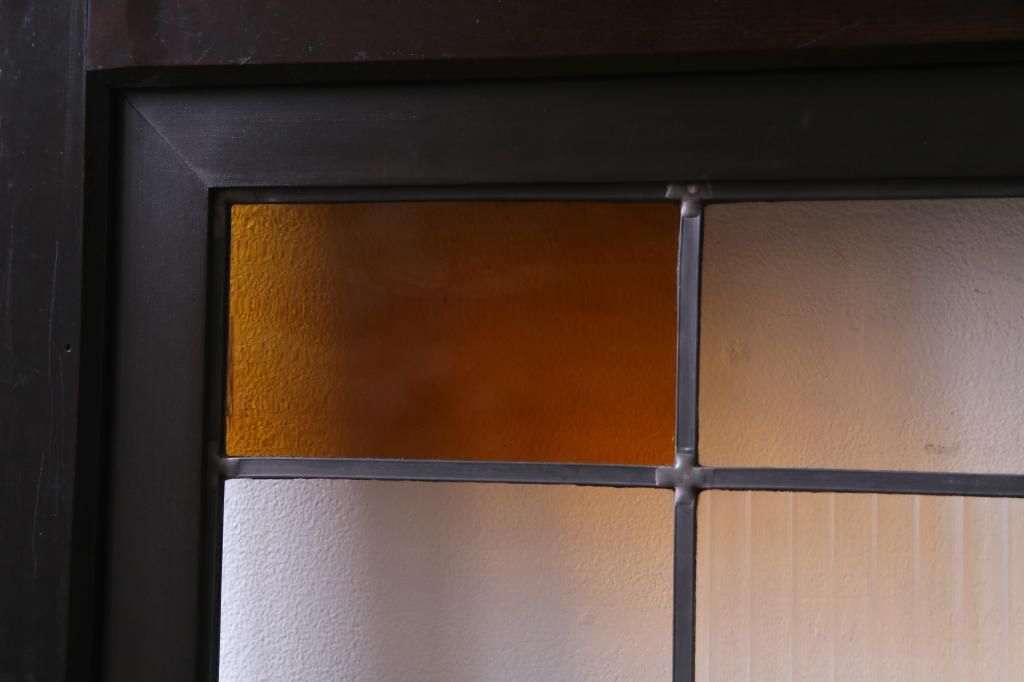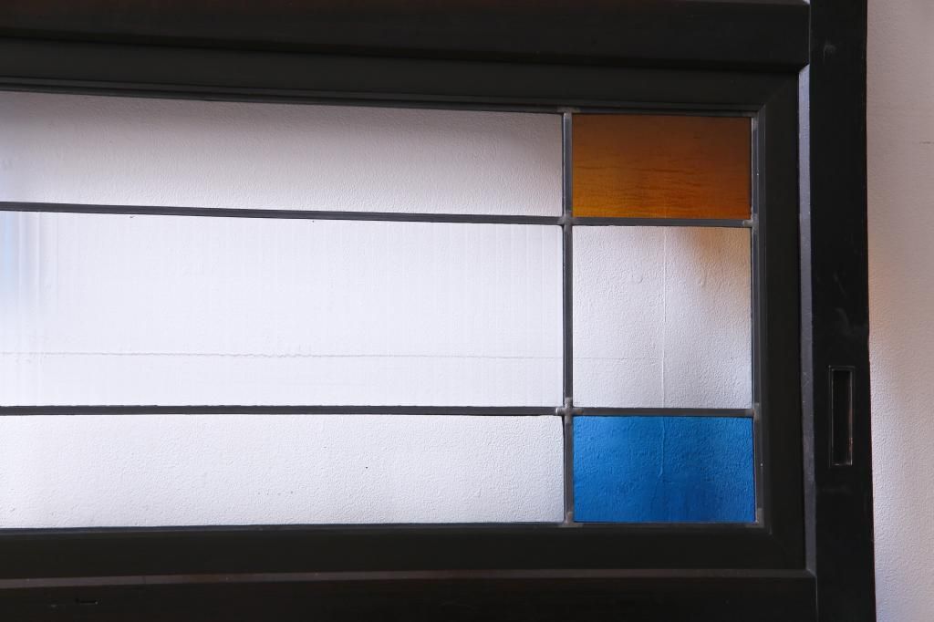 ドア・建具> ガラス戸 > 明治大正期の帯戸をリペア&カスタム!オリジナルのステンドグラスをはめ込み、木目を活かして着色仕上げ。(引き戸、板戸、ガラス戸、建具)