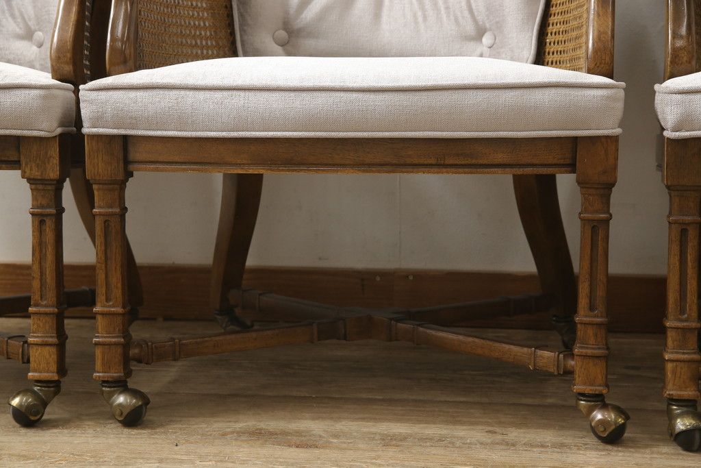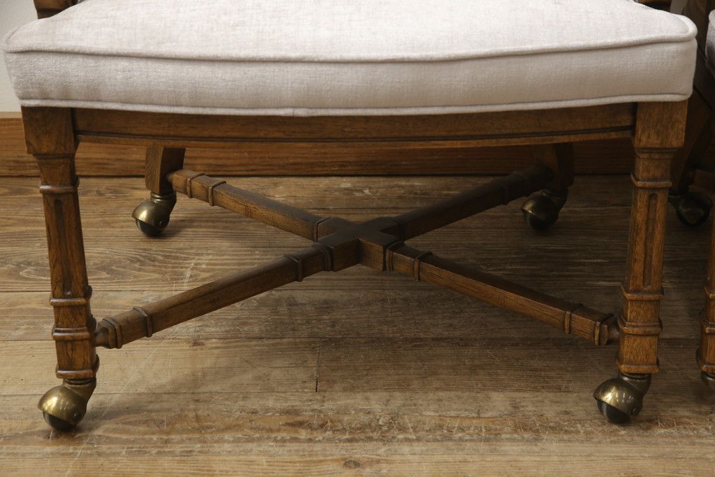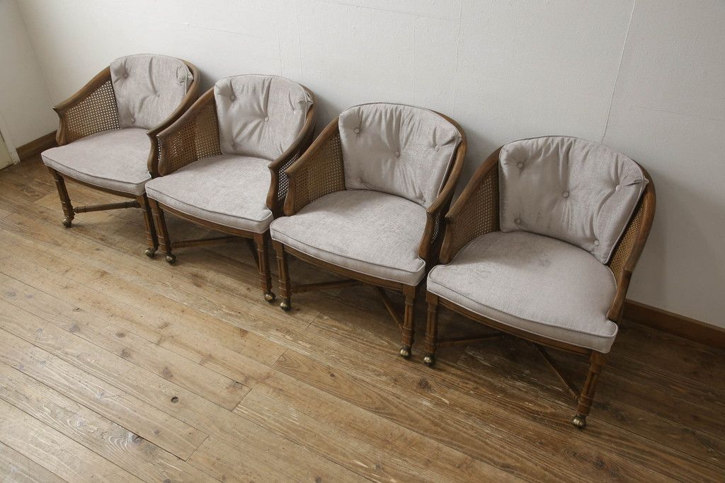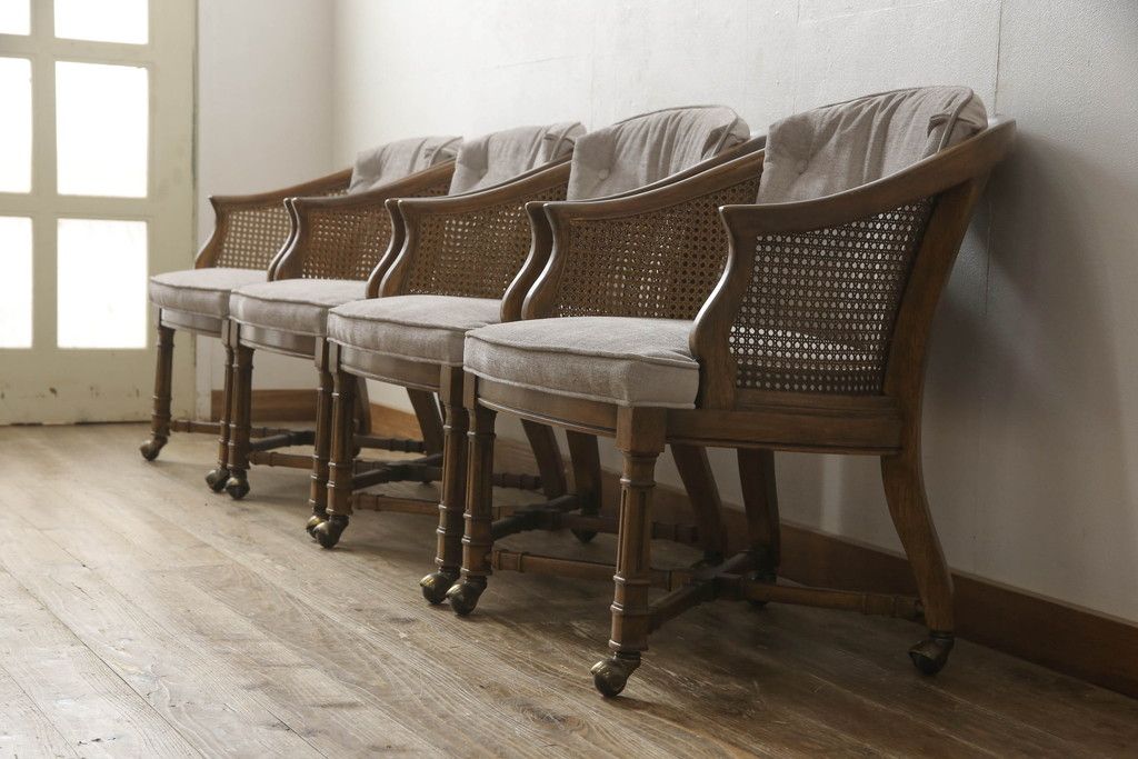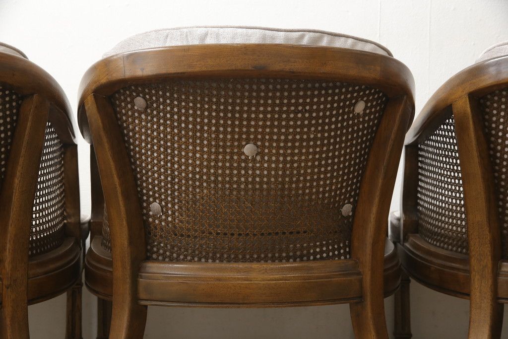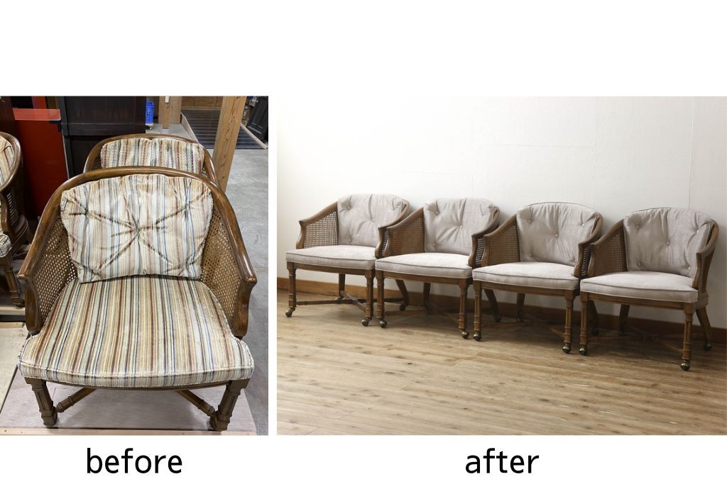 椅子4脚の布地を張り替えてリメイク!高品質リペアを施し、クッション部分の中綿を交換。生地はご希望のものに張り替え、塗装が剥げた部分は元の色に合うよう着色仕上げ。R-059453,オーダー976