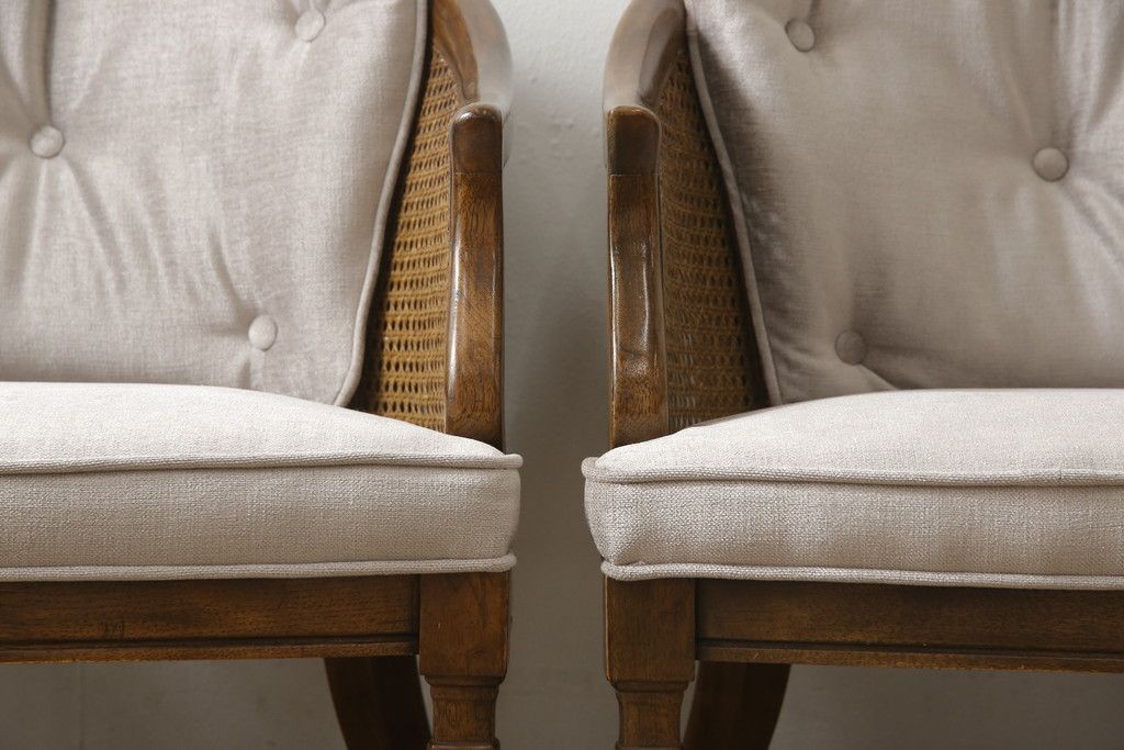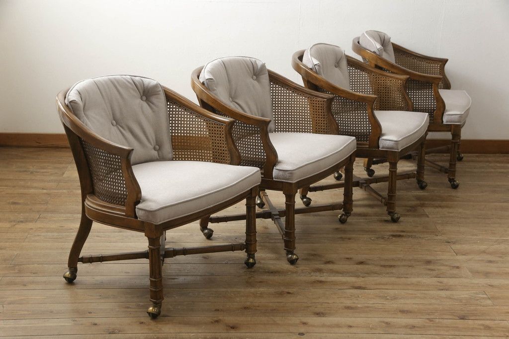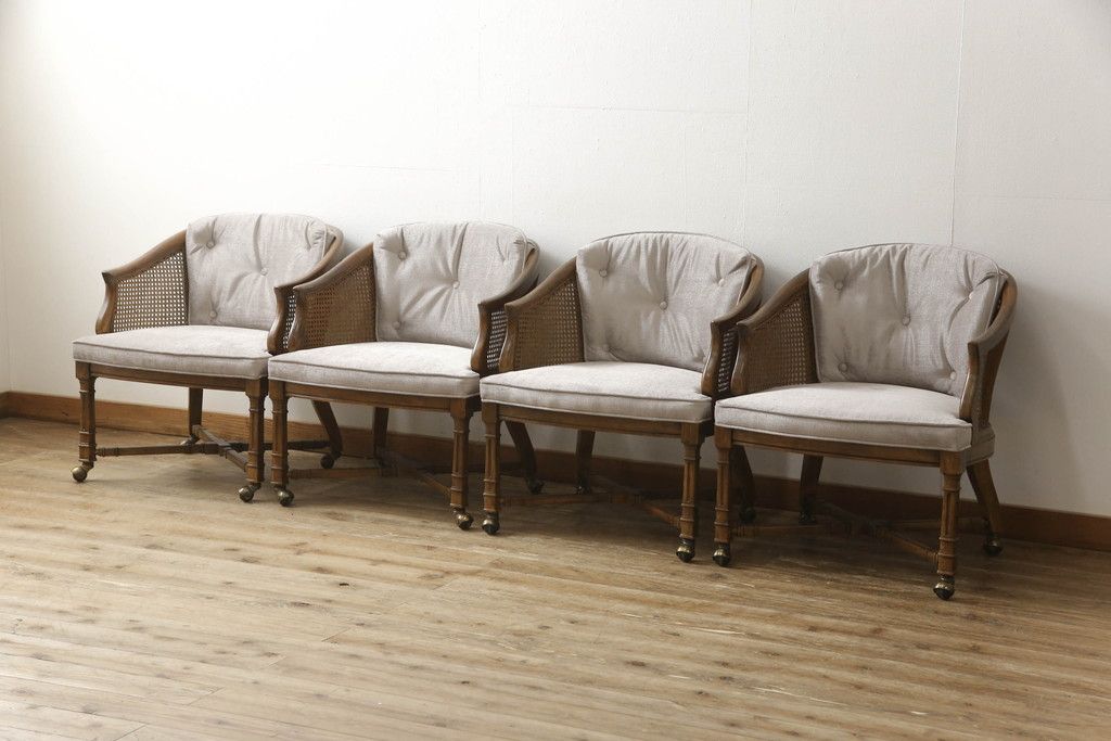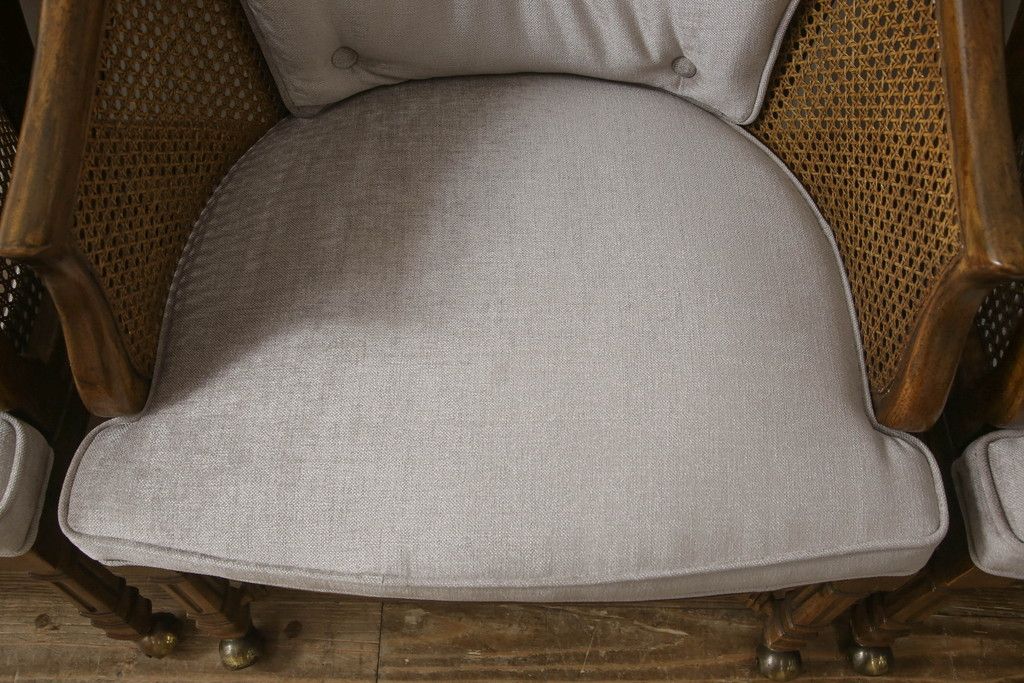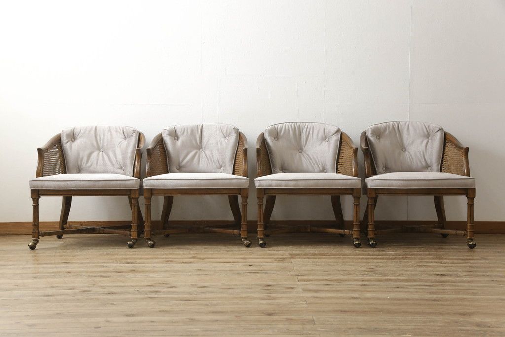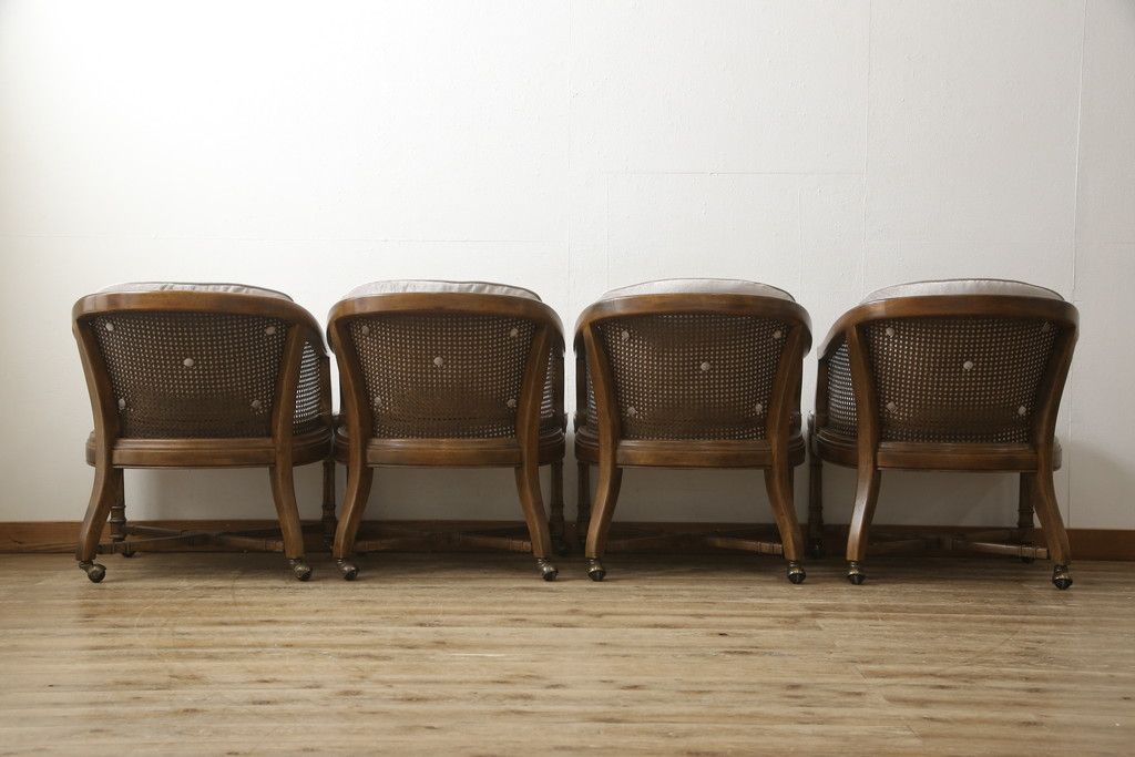 椅子4脚の布地を張り替えてリメイク!高品質リペアを施し、クッション部分の中綿を交換。生地はご希望のものに張り替え、塗装が剥げた部分は元の色に合うよう着色仕上げ。R-059453,オーダー976