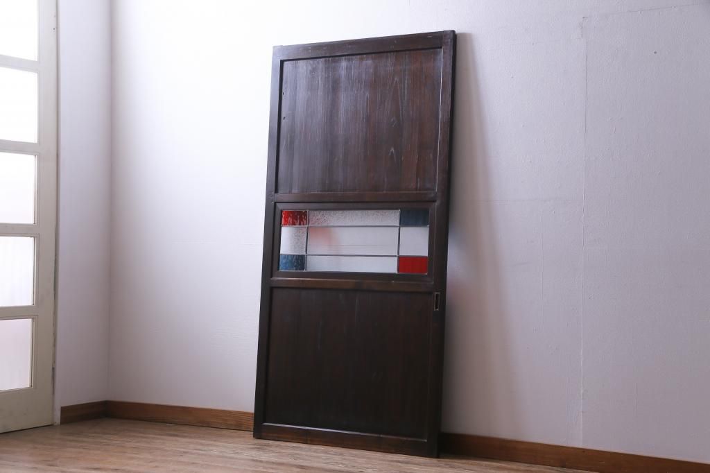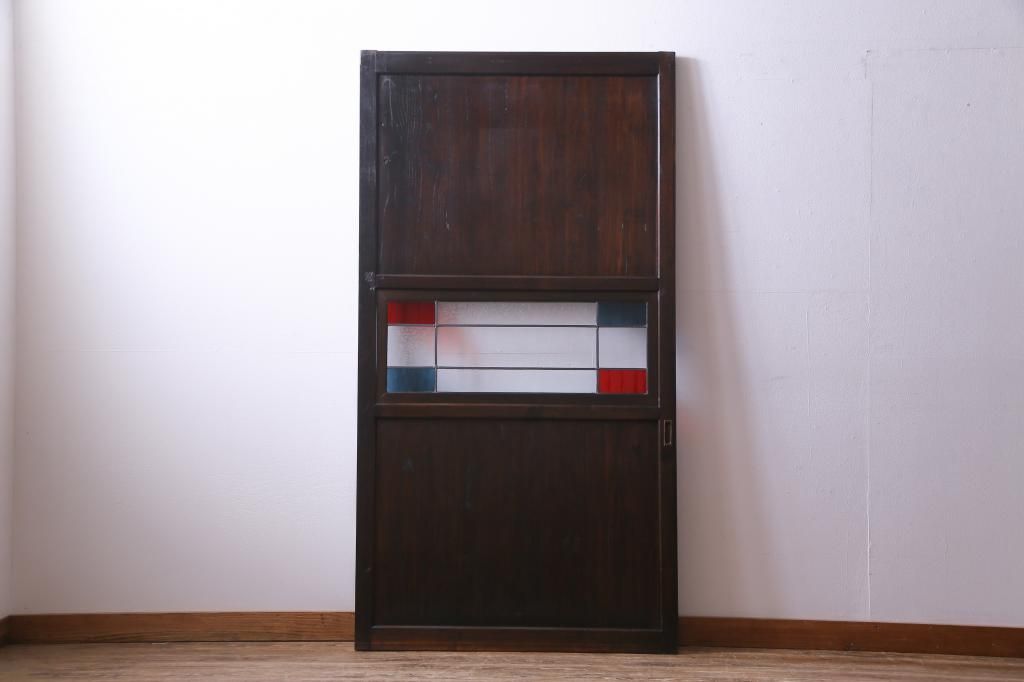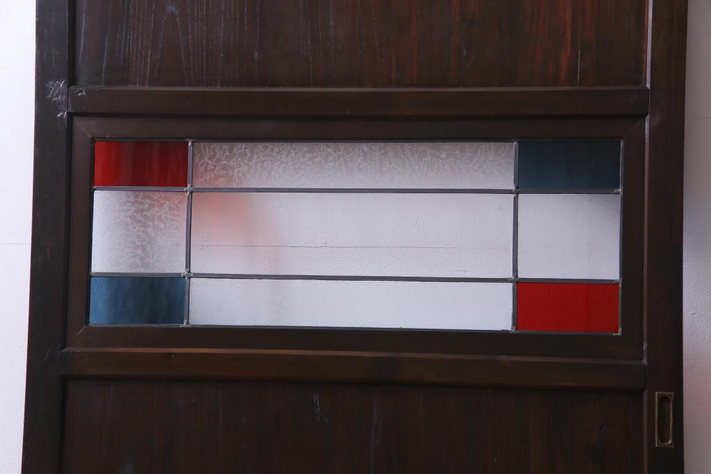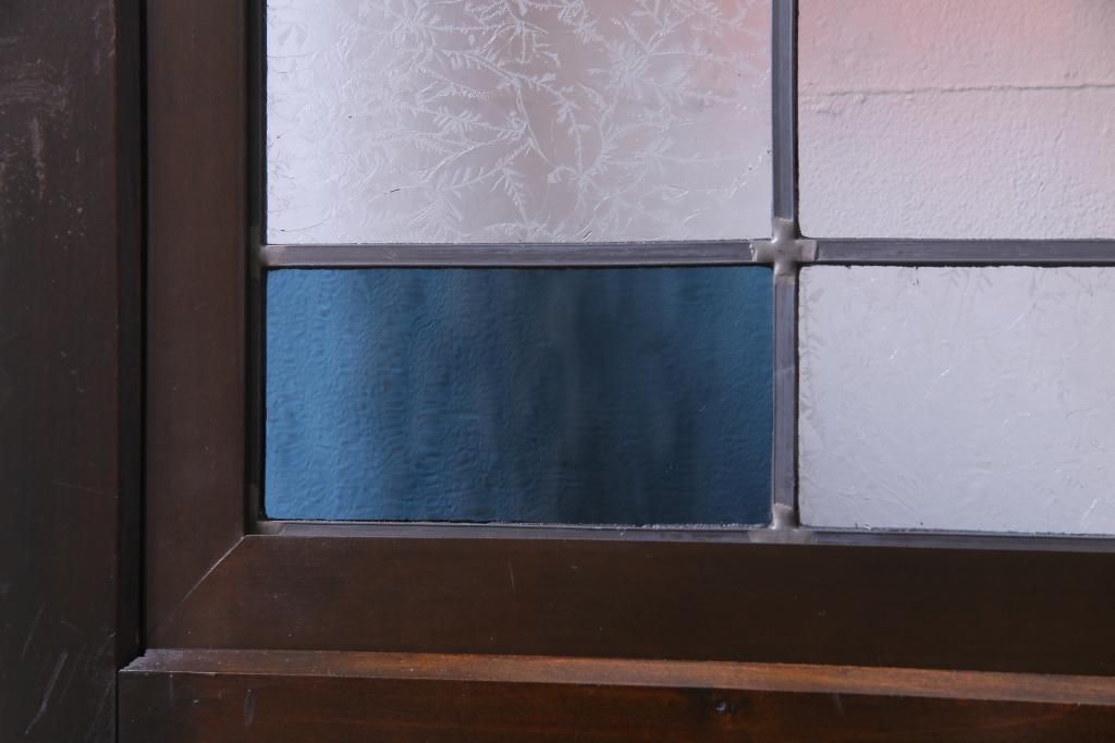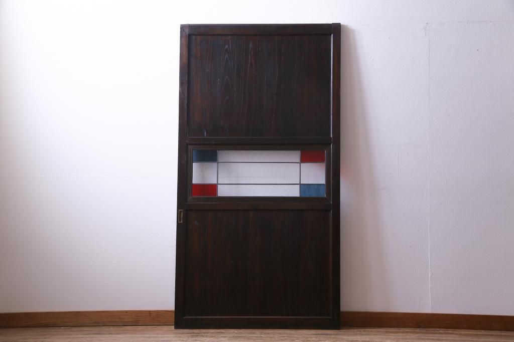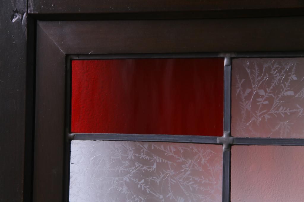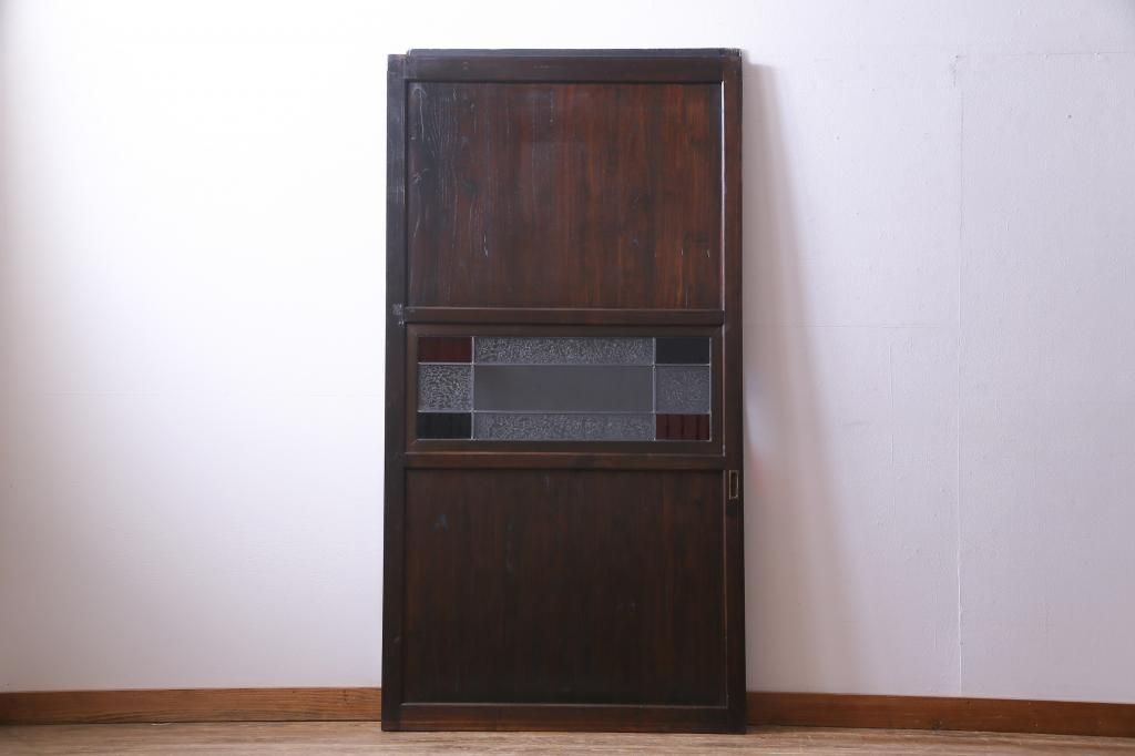 ドア・建具> ガラス戸 > 明治大正期の帯戸をリペア&カスタム!オリジナルのステンドグラスをはめ込み、濃い茶色で着色仕上げ。(引き戸、板戸、ガラス戸、建具)