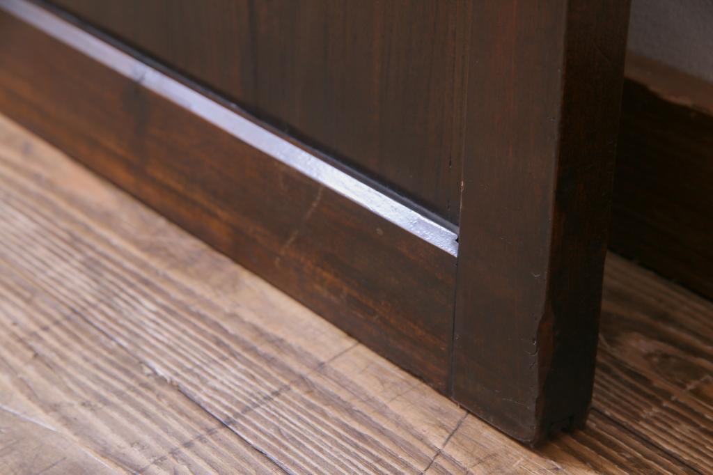 明治大正期の帯戸をリペア&カスタム!オリジナルのステンドグラスをはめ込み、濃い茶色で着色仕上げ。(引き戸、板戸、ガラス戸、建具)