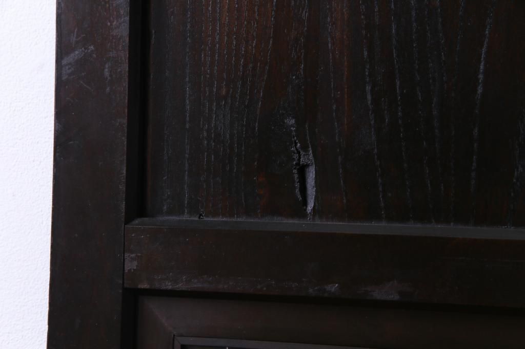 ドア・建具> 板戸・帯戸 > 明治大正期の帯戸をリペア&カスタム!オリジナルのステンドグラスをはめ込み、濃い茶色で着色仕上げ。(引き戸、板戸、ガラス戸、建具)