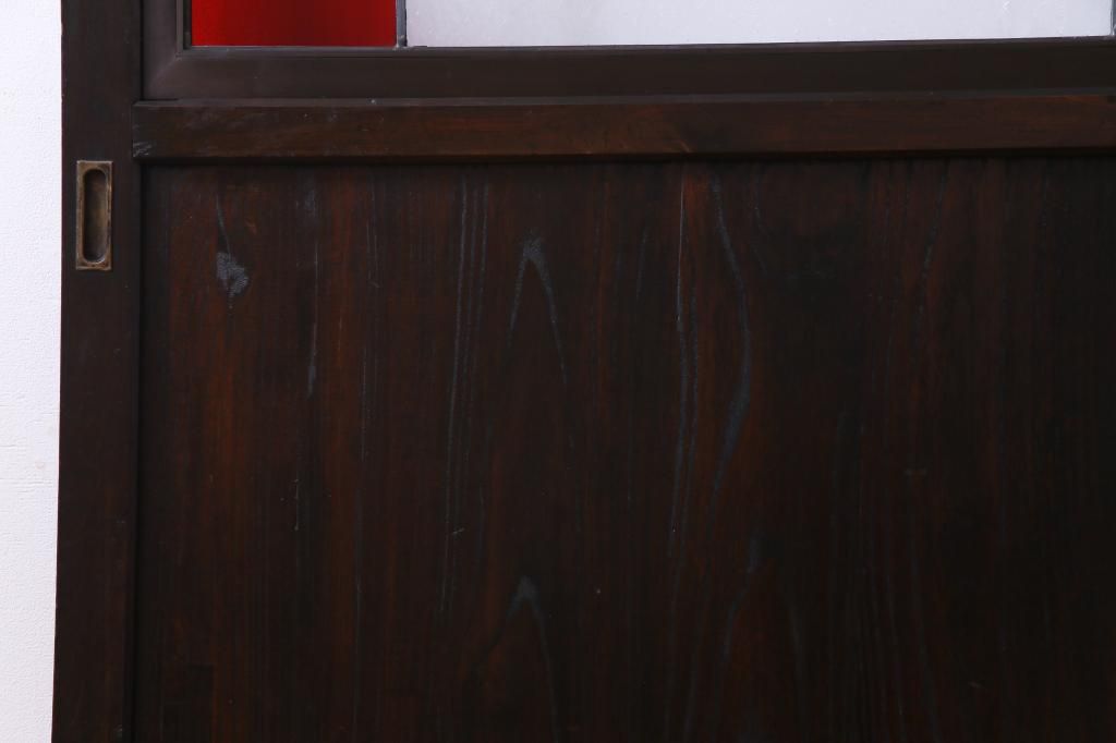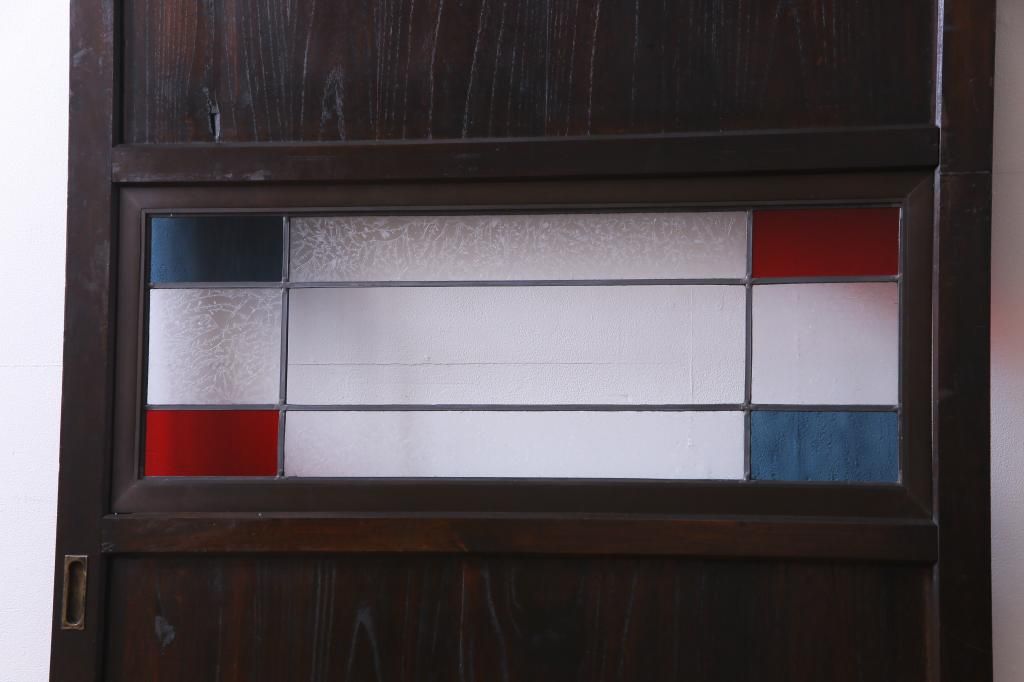 ドア・建具> 色ガラス・ステンド入り建具 > 明治大正期の帯戸をリペア&カスタム!オリジナルのステンドグラスをはめ込み、濃い茶色で着色仕上げ。(引き戸、板戸、ガラス戸、建具)