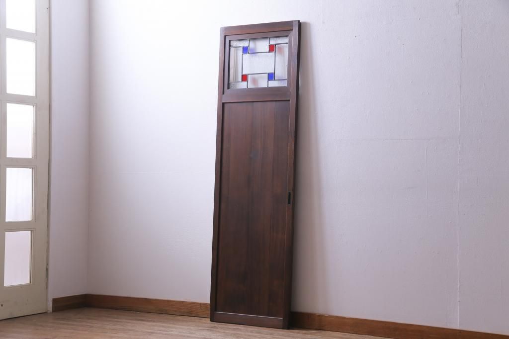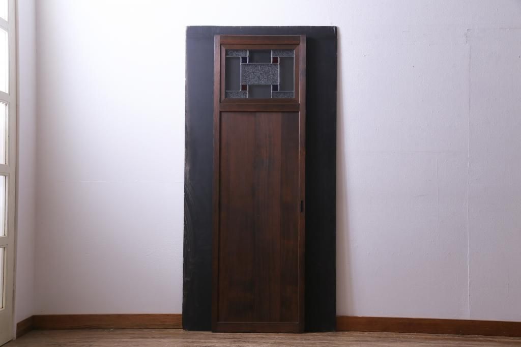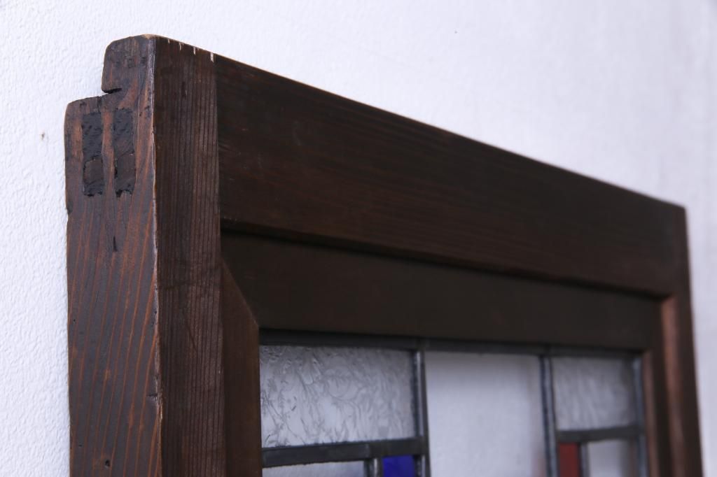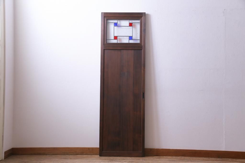 昭和初期の引き戸をリペア&カスタム!オリジナルのステンドグラスをはめ込み、自然な茶色で着色仕上げ。(ガラス戸、建具)