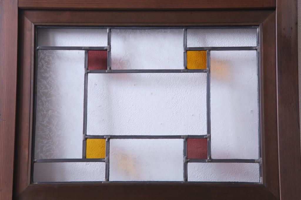 ドア・建具> ガラス戸 > 昭和初期の引き戸をリペア&カスタム!オリジナルのステンドグラスをはめ込み、落ち着いた茶色に着色仕上げ。(ガラス戸、建具)