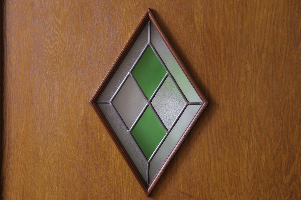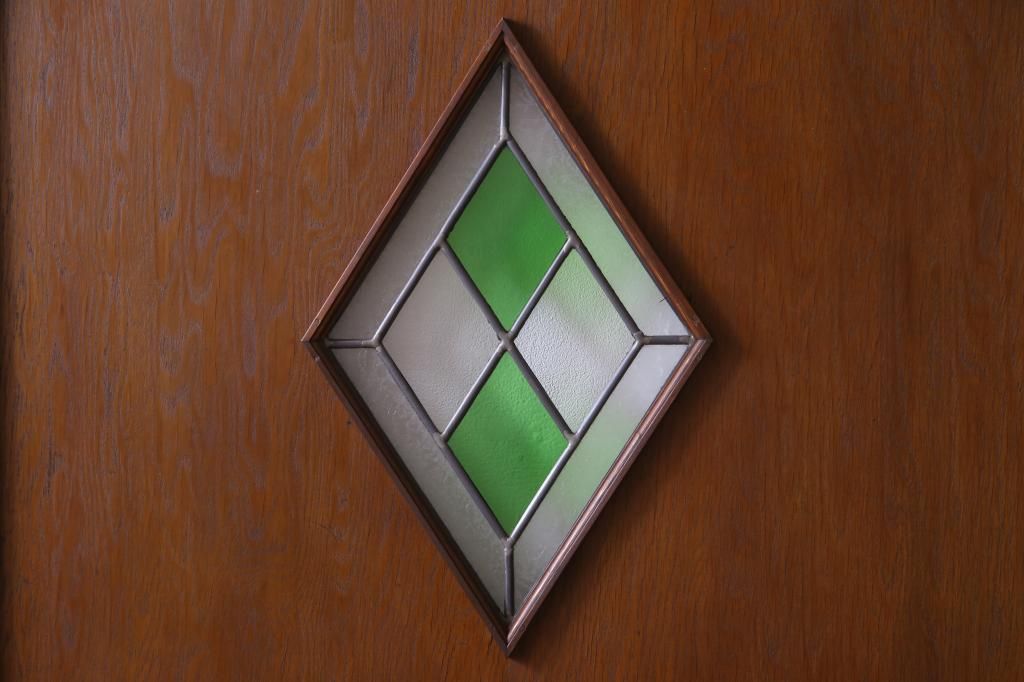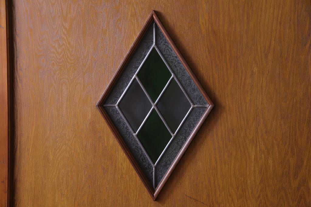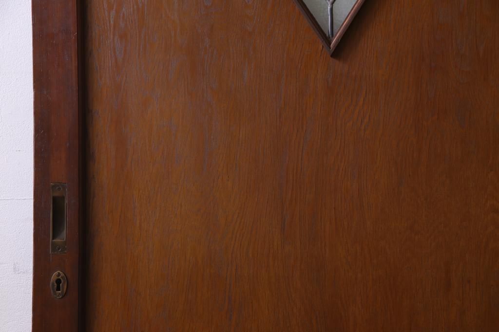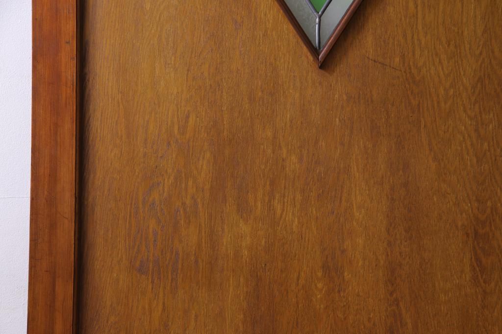 大正昭和初期の板戸をリペア&カスタム!オリジナルのステンドグラスをはめ込み、自然な茶色に着色仕上げ。(引き戸、建具)