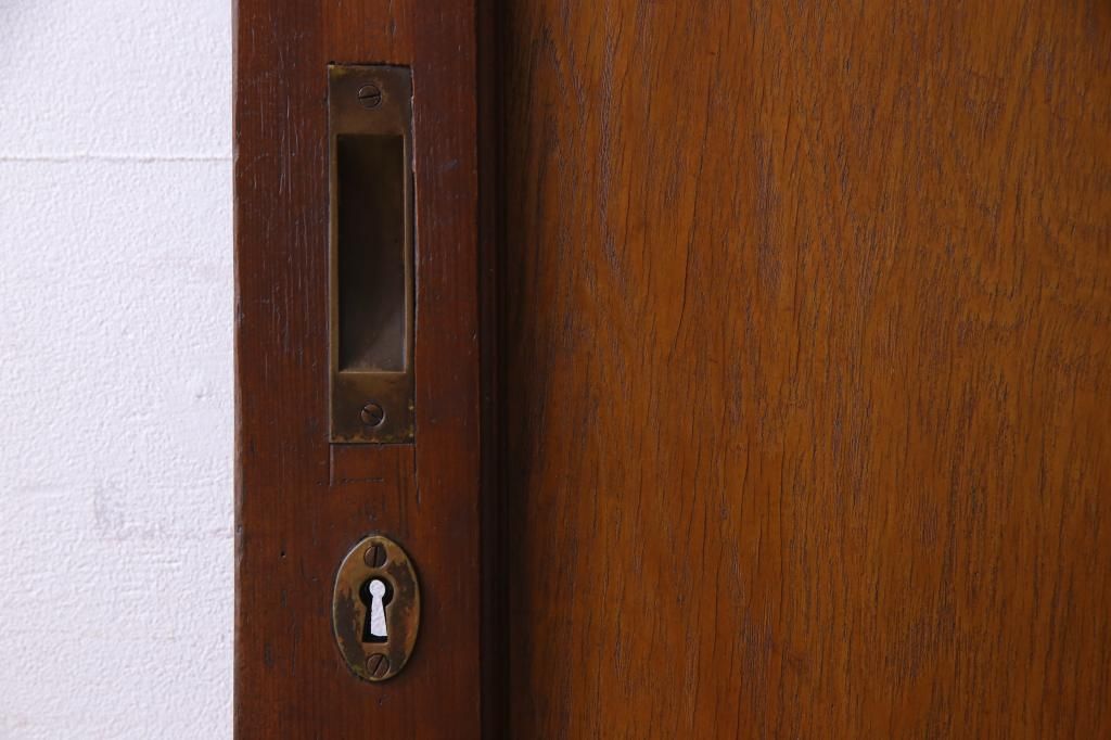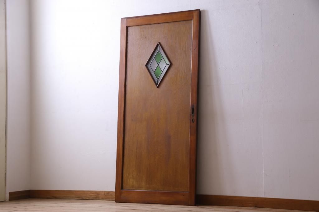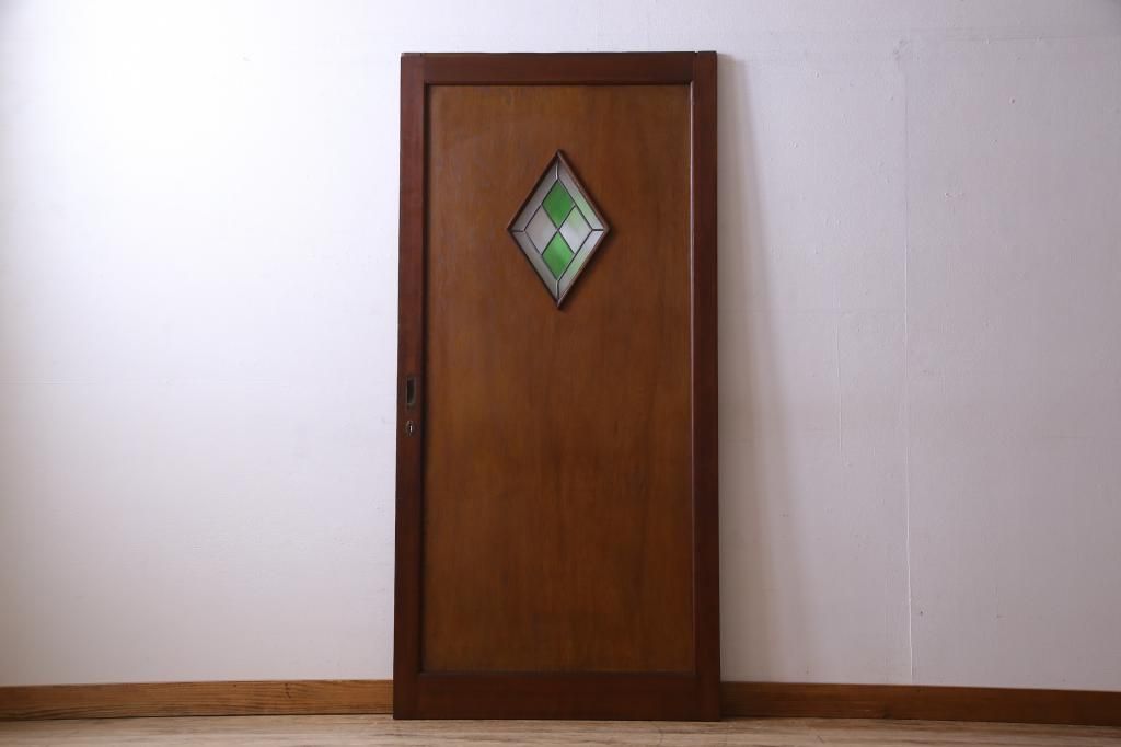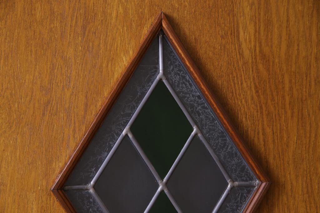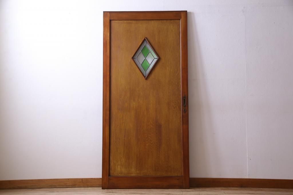 大正昭和初期の板戸をリペア&カスタム!オリジナルのステンドグラスをはめ込み、自然な茶色に着色仕上げ。(引き戸、建具)