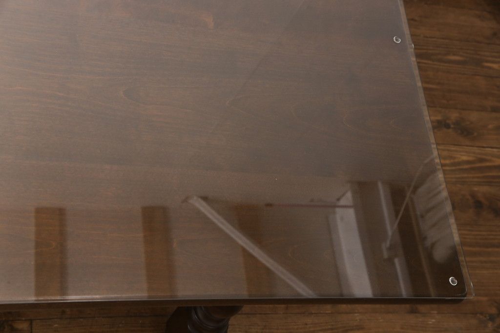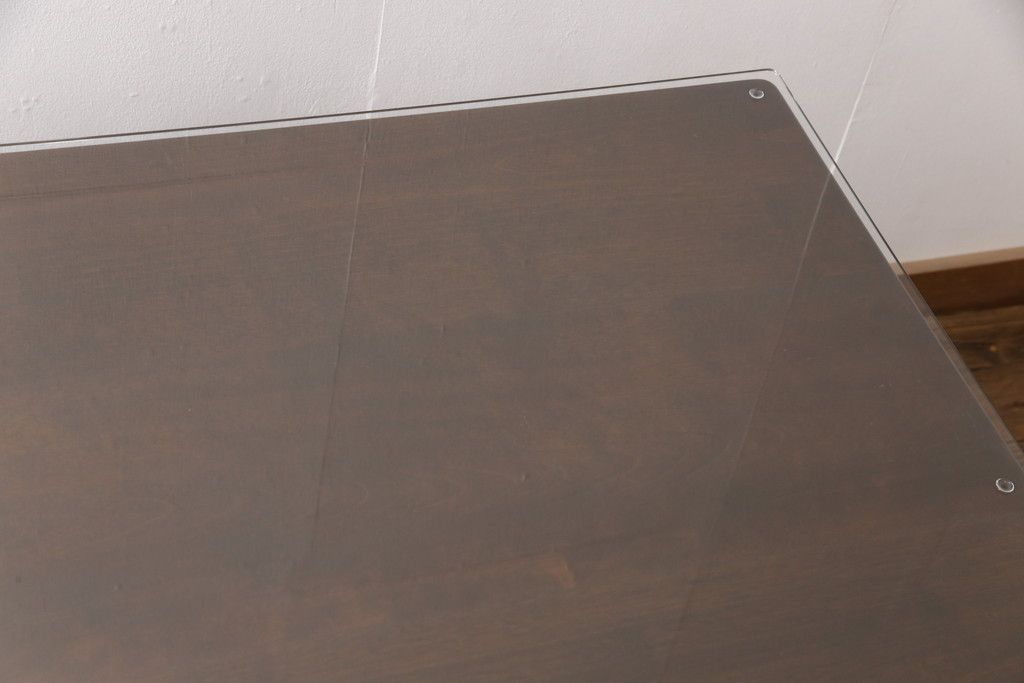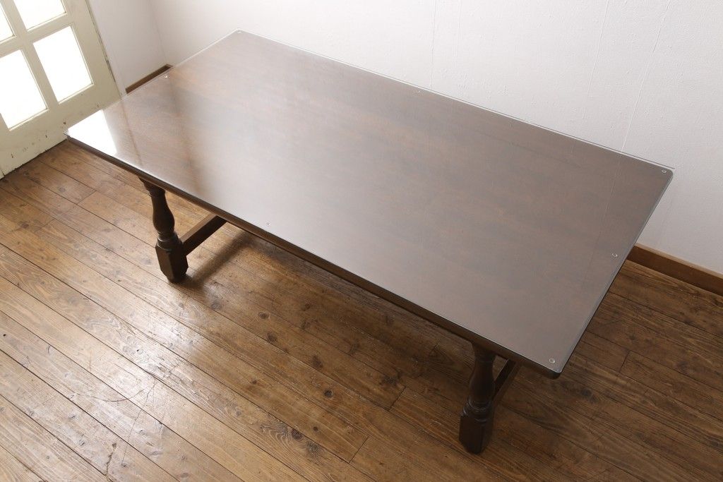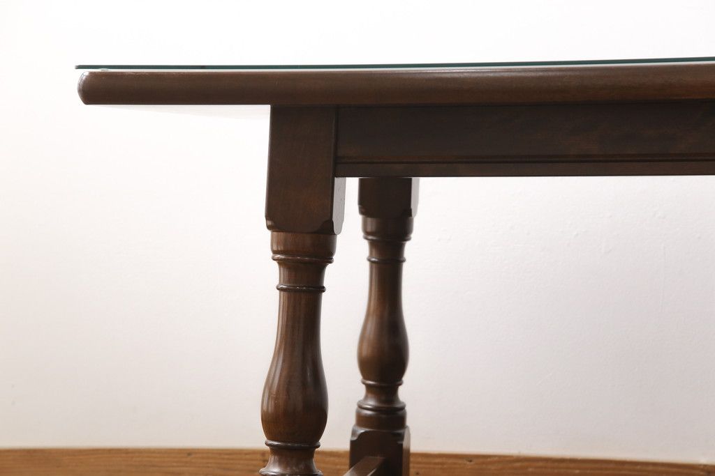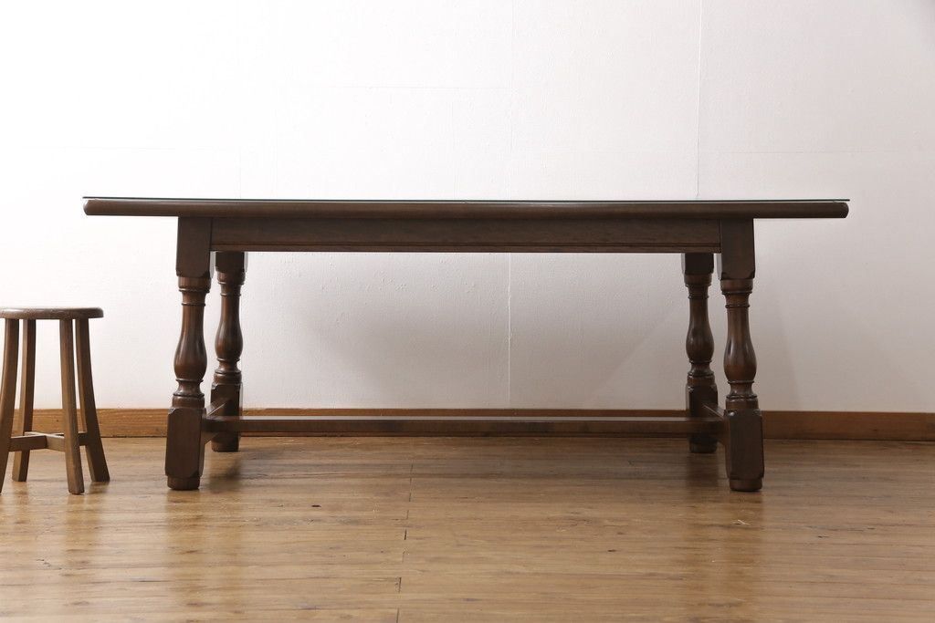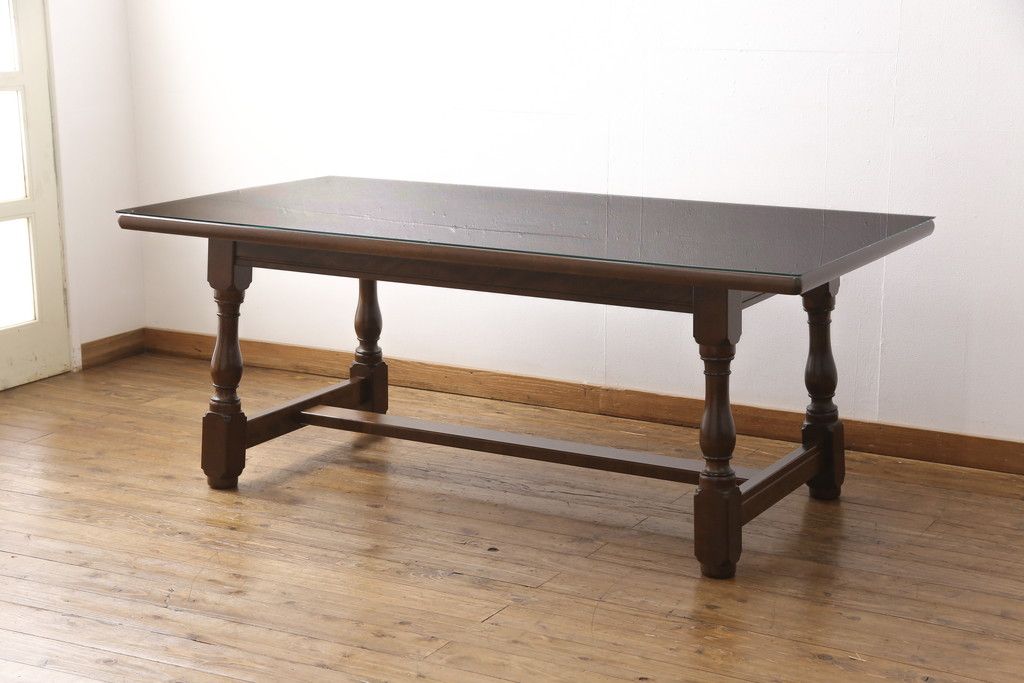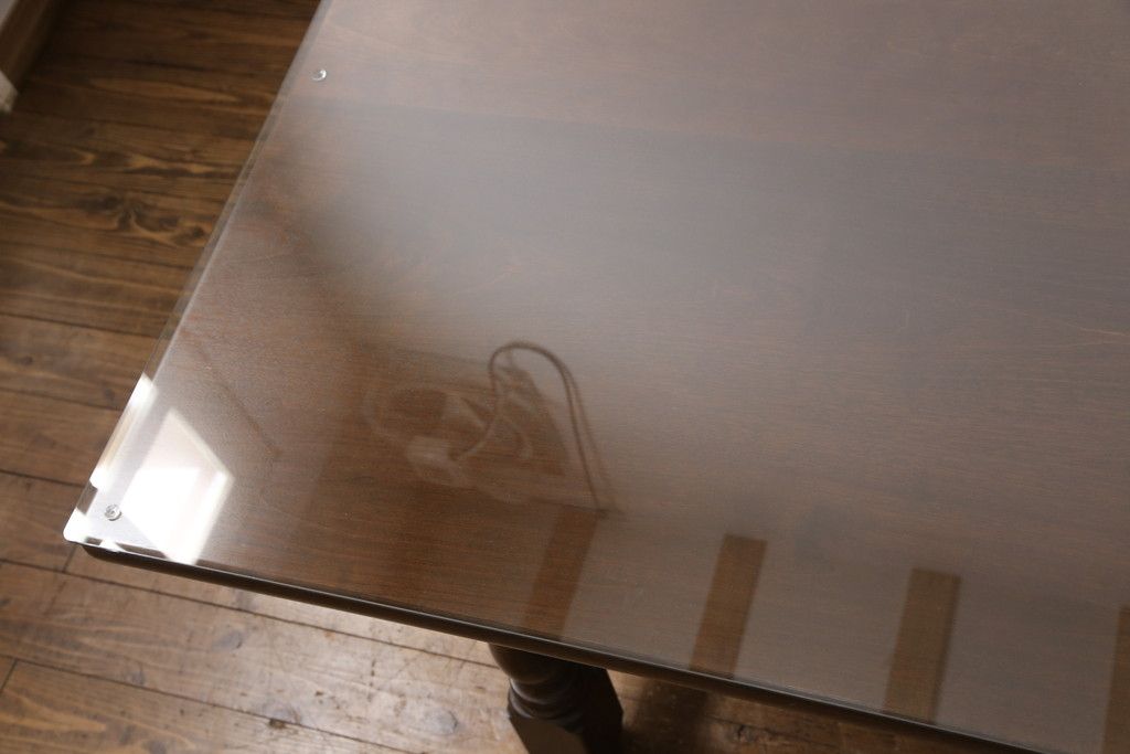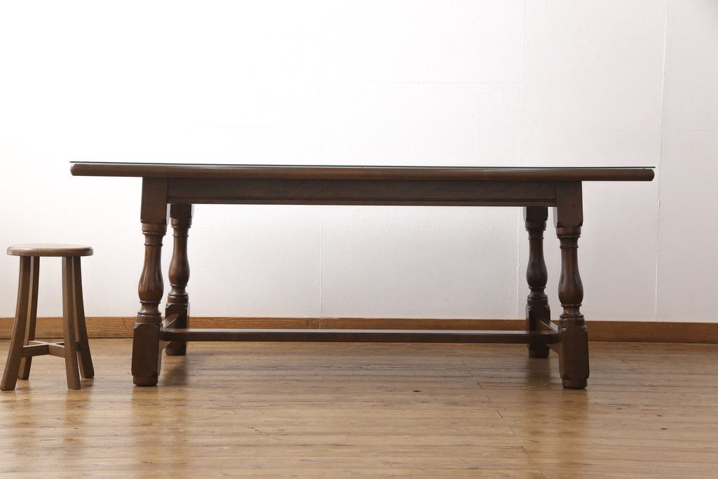 テーブル> 6人用ダイニングテーブル > 松本民芸家具のダイニングテーブルをリペア&カスタム!高品質リペアを施し、強化ガラスの天板を取り付け。(6人掛け、食卓)