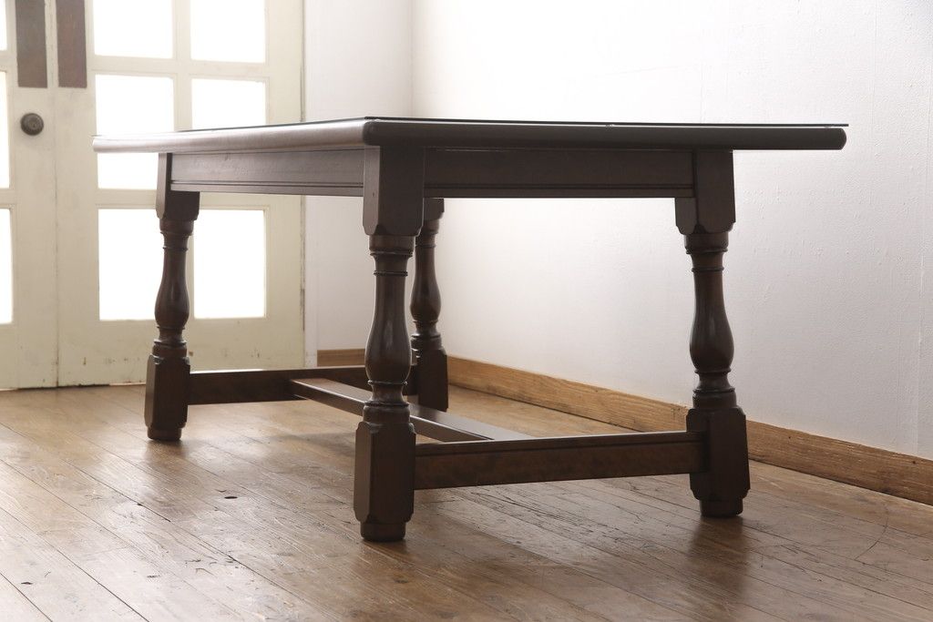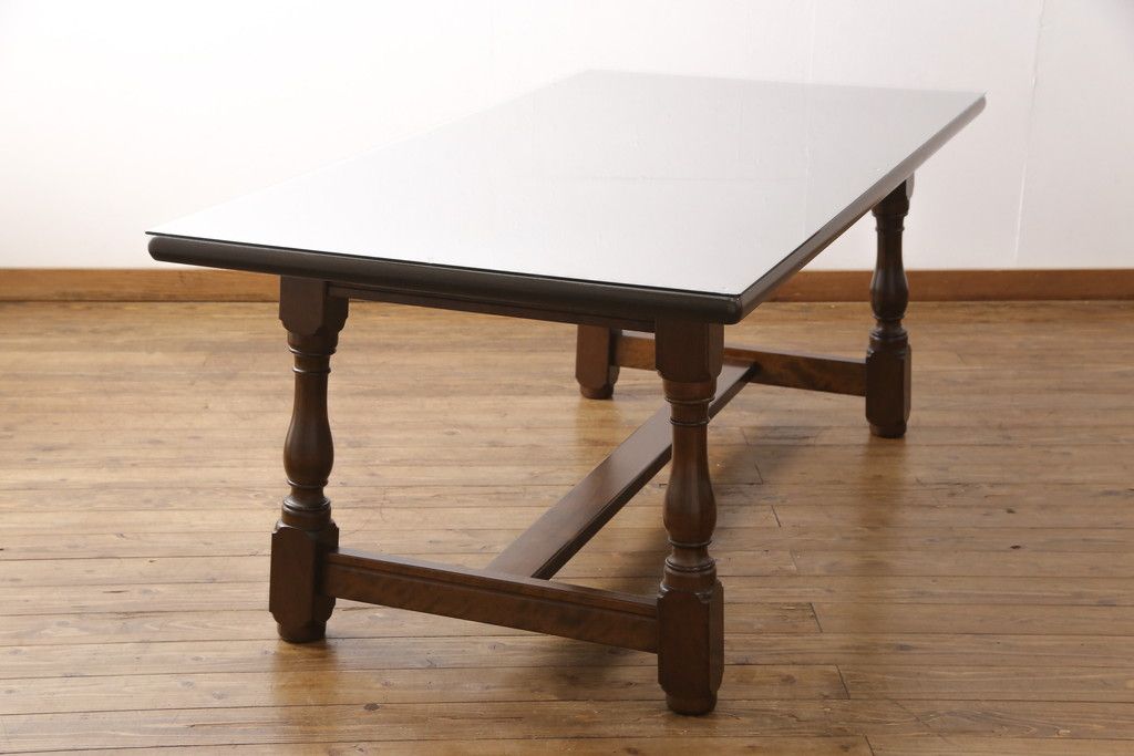 松本民芸家具のダイニングテーブルをリペア&カスタム!高品質リペアを施し、強化ガラスの天板を取り付け。(6人掛け、食卓)