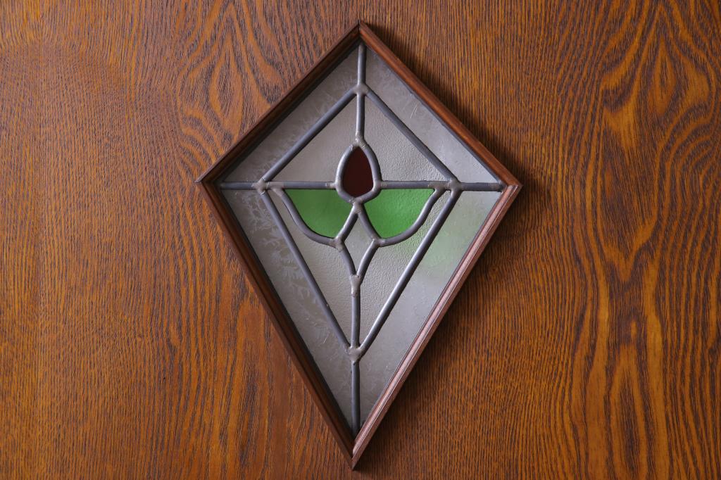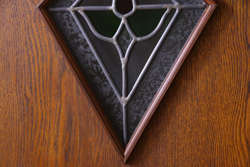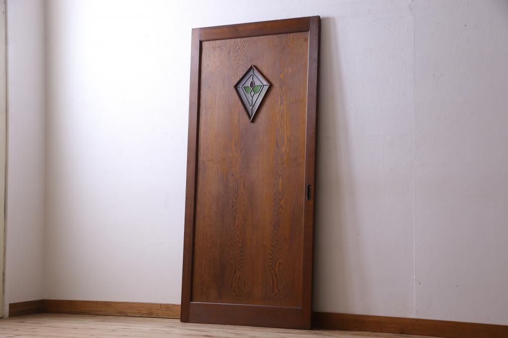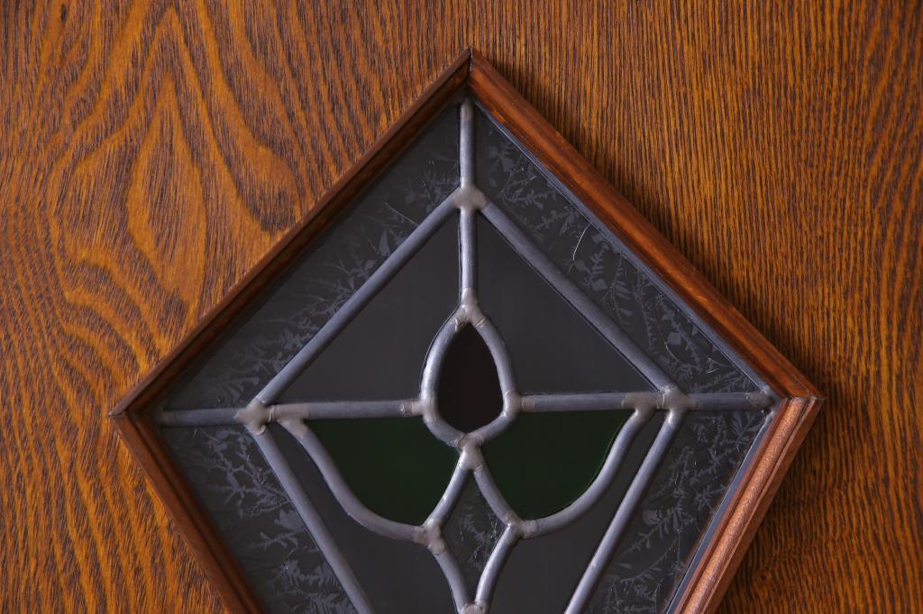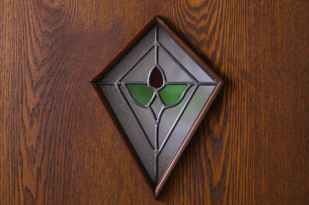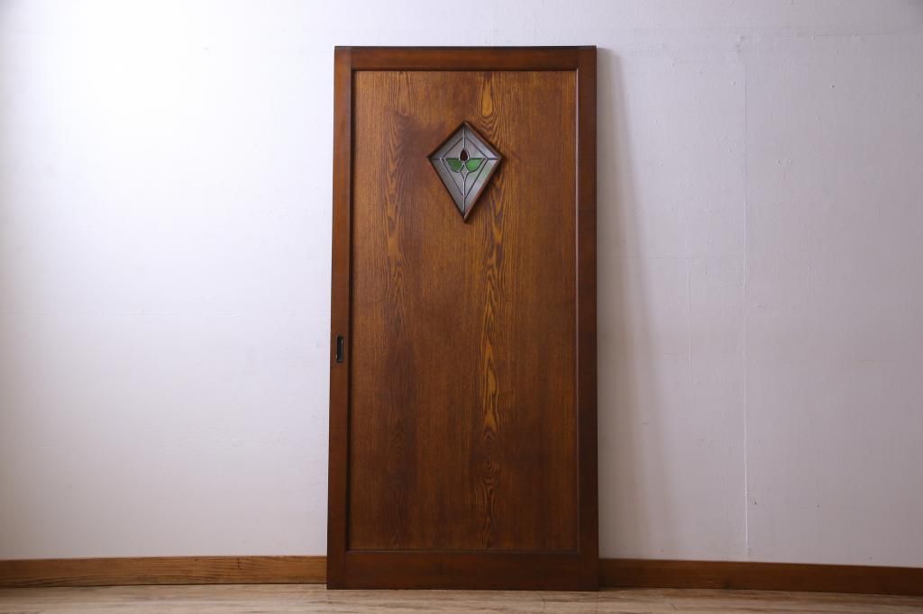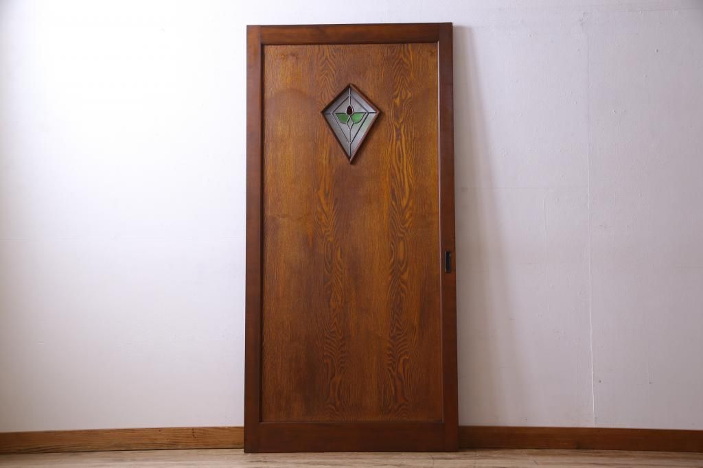 大正昭和期の板戸をリペア&カスタム!オリジナルのステンドグラスをはめ込み、自然な茶色に着色仕上げ。(引き戸、建具)