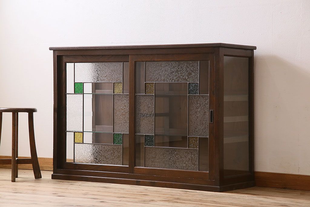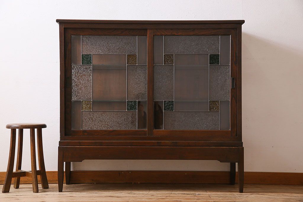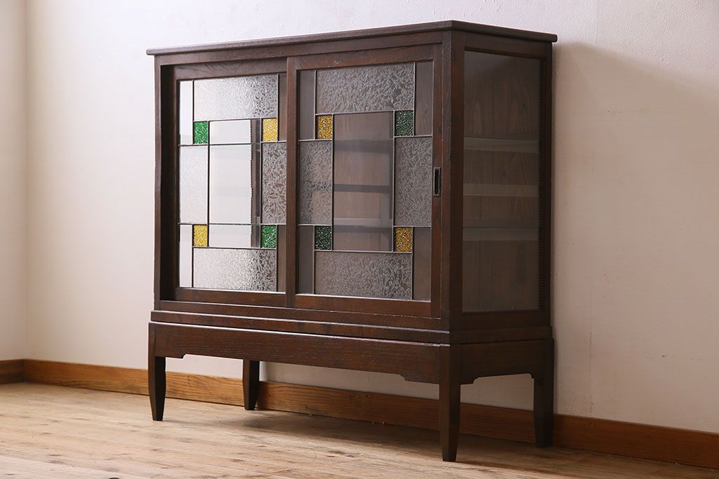 大正昭和初期のガラスケースをリペア&カスタム!建具にオリジナルのステンドグラスを使用。(ショーケース、収納棚、戸棚)