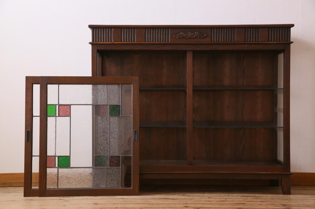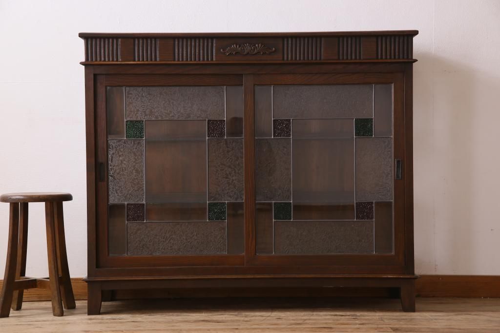 大正昭和初期のキャビネットをリペア&カスタム!建具にオリジナルのステンドグラスを使用。(ガラスケース、収納棚、戸棚)