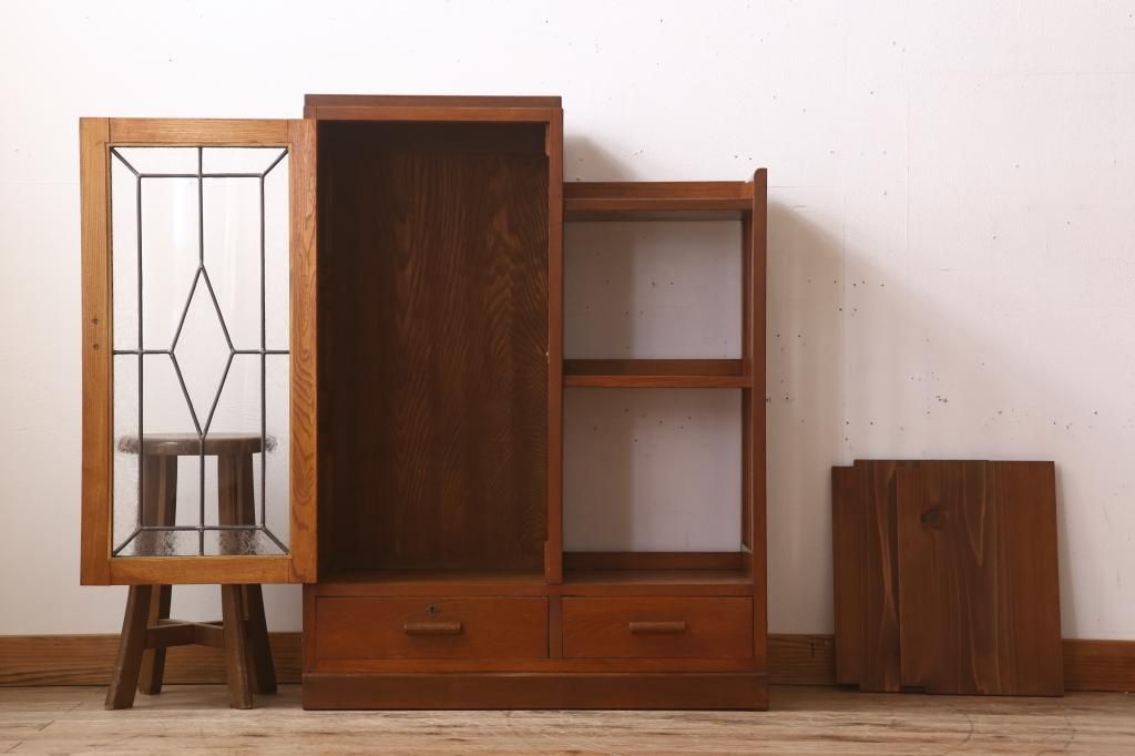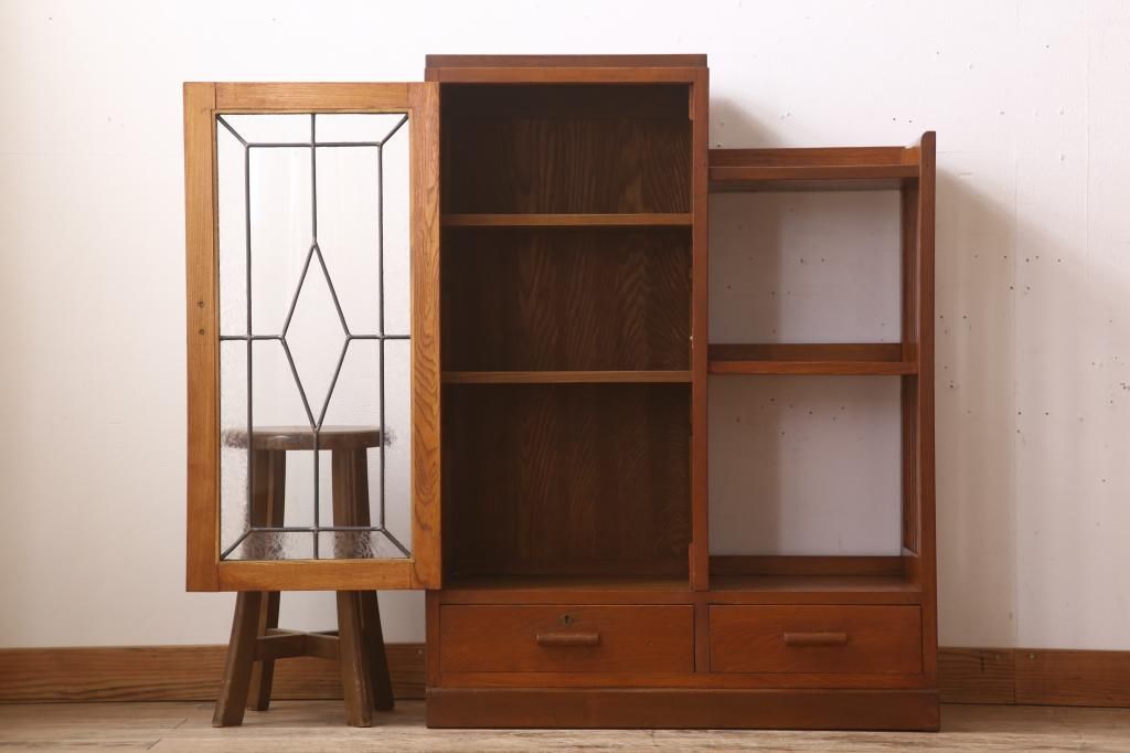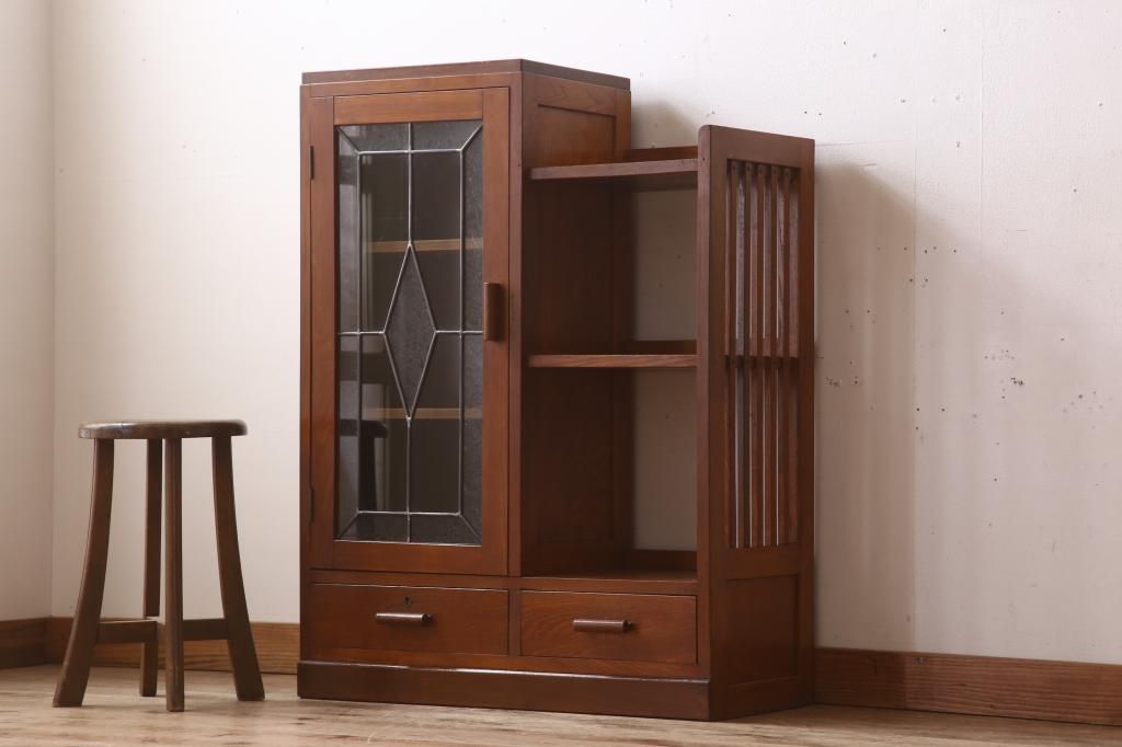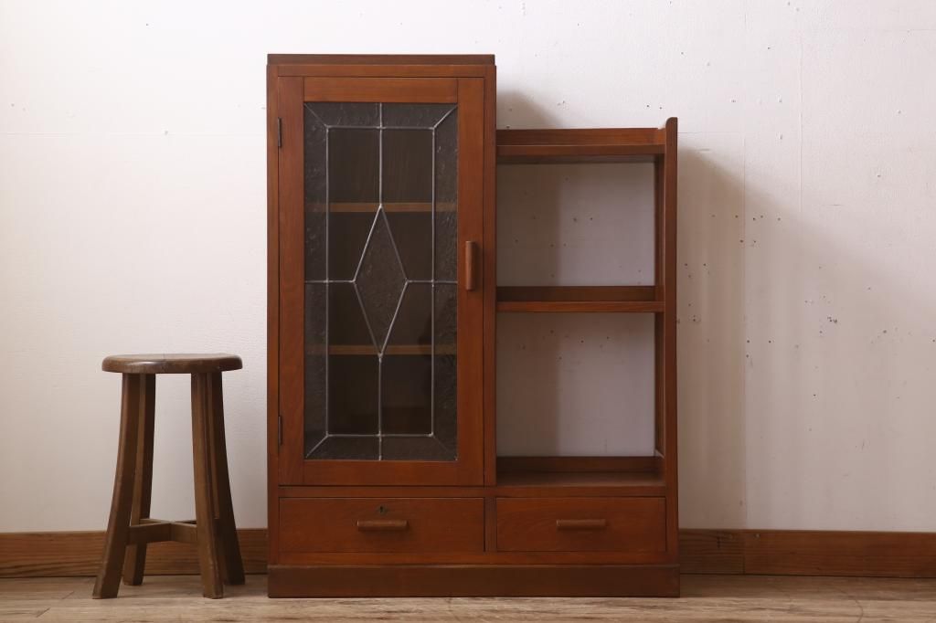 キャビネット・戸棚> 本箱 > 木製本箱をリペア&カスタム!建具にオリジナルのステンドグラスを使用。(収納棚、戸棚、キャビネット、ブックケース)