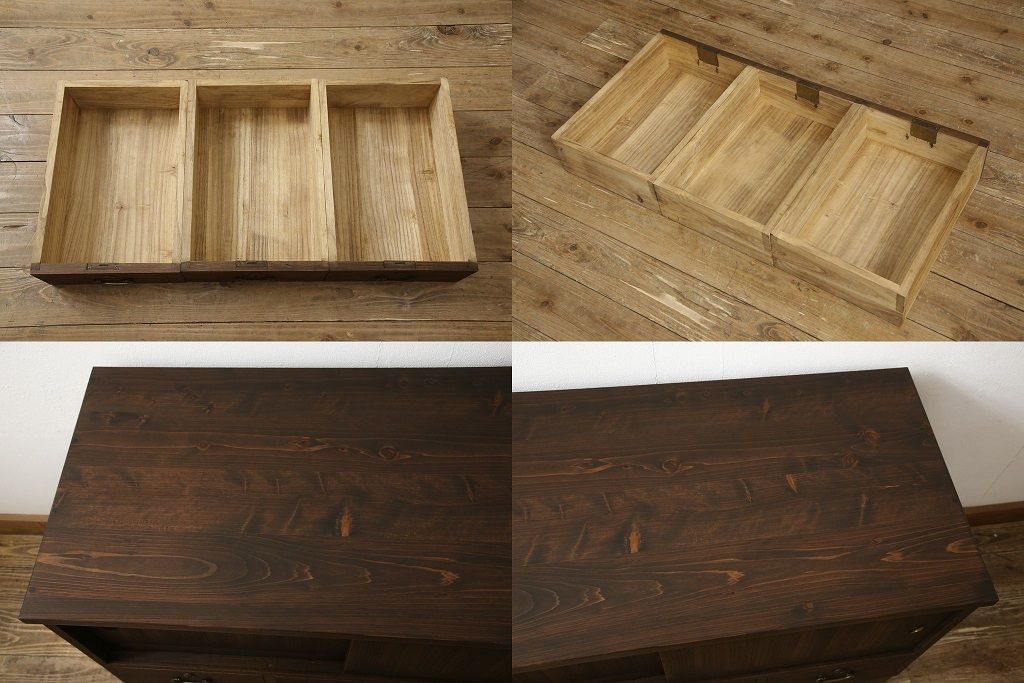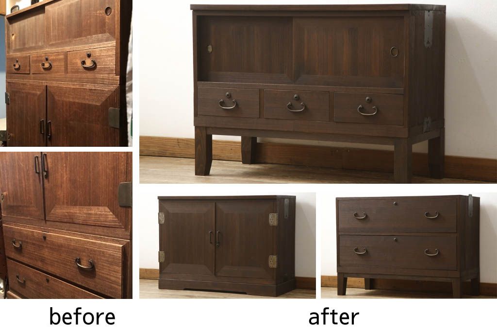 お客様持ち込みの桐箪笥を上中下段に分けてそれぞれリメイク